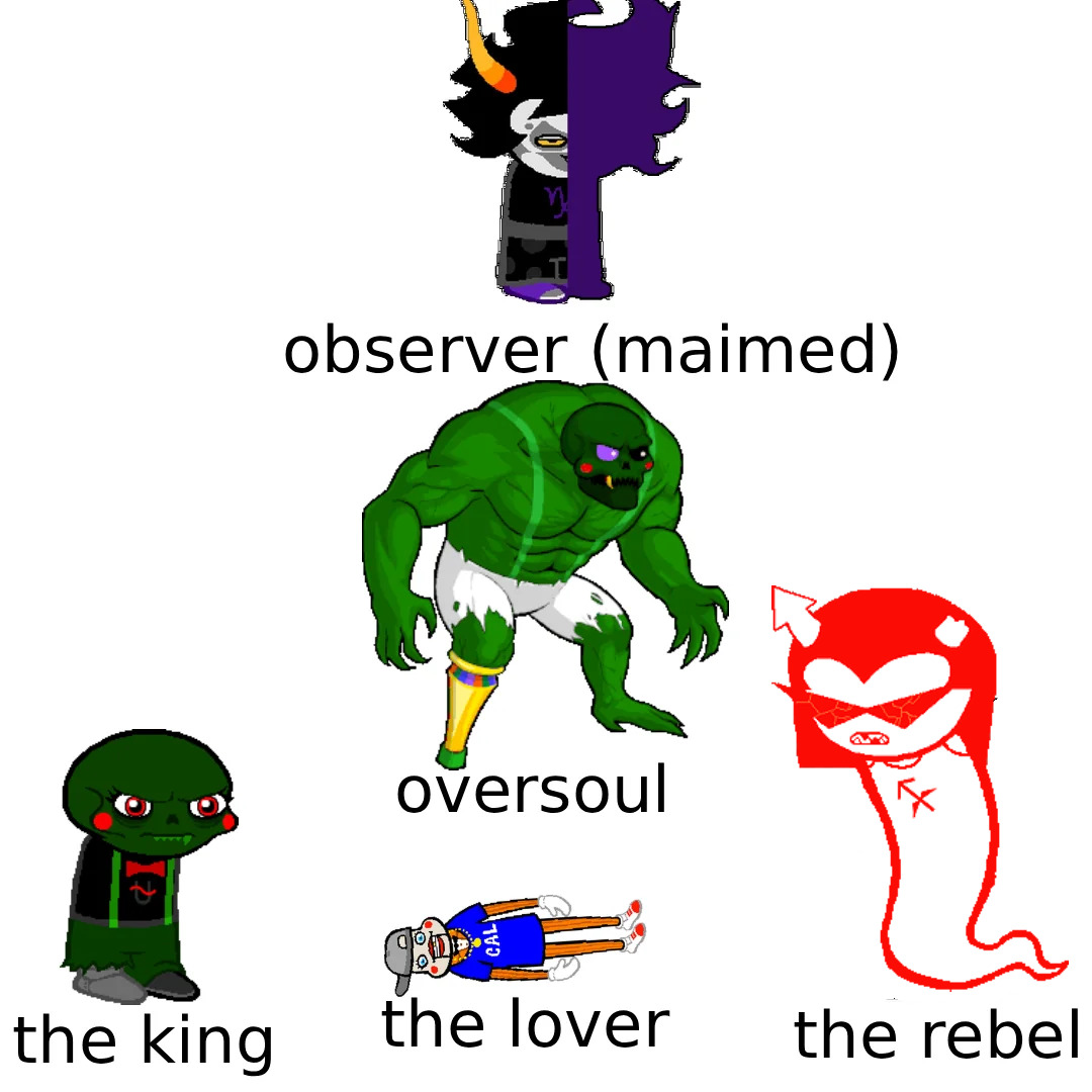 >>152758373>I feel like both of them are not honest enough with themselvesWow, a Homestuck character with a facade? Wow, Hussie? You wrote a Homestuck character that masks their insecurities behind another persona? Wow. You have really never done that before.