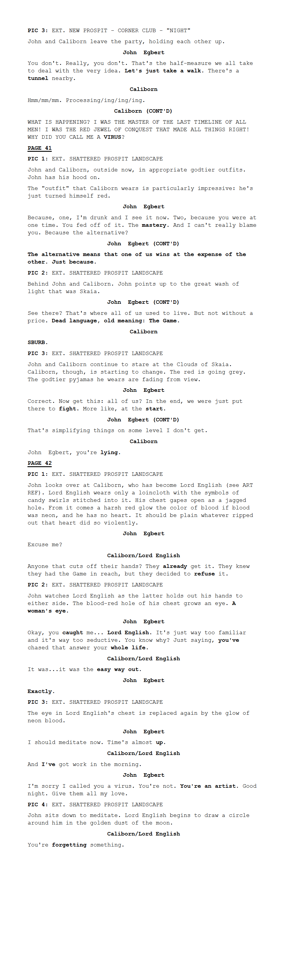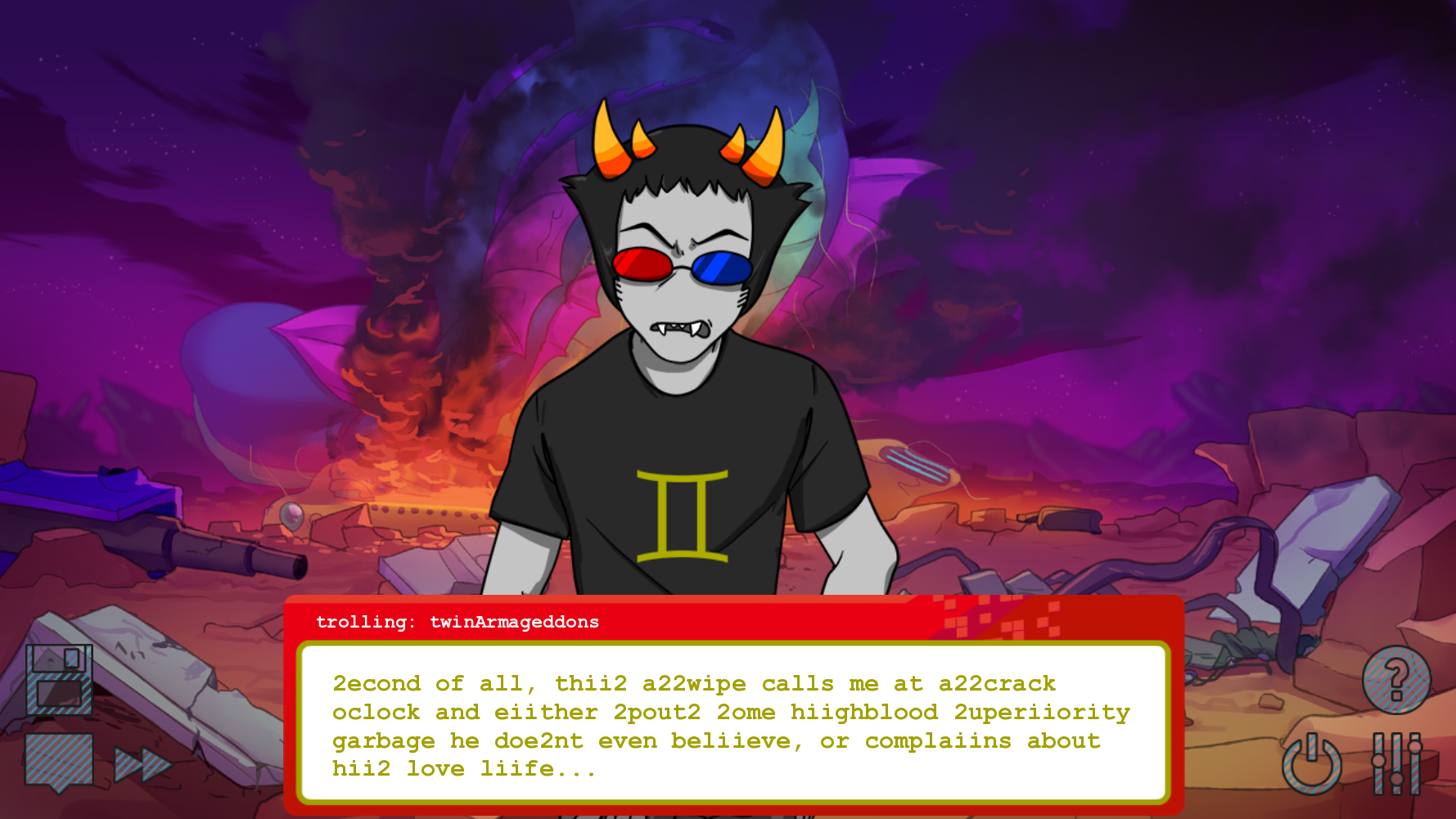 Hussie can write what he wants and retroactively pretend like he planned any of his current problems, but he's an idiot, any drama between these two feels forced or the kind of idiocy made up by essayists on twitter.