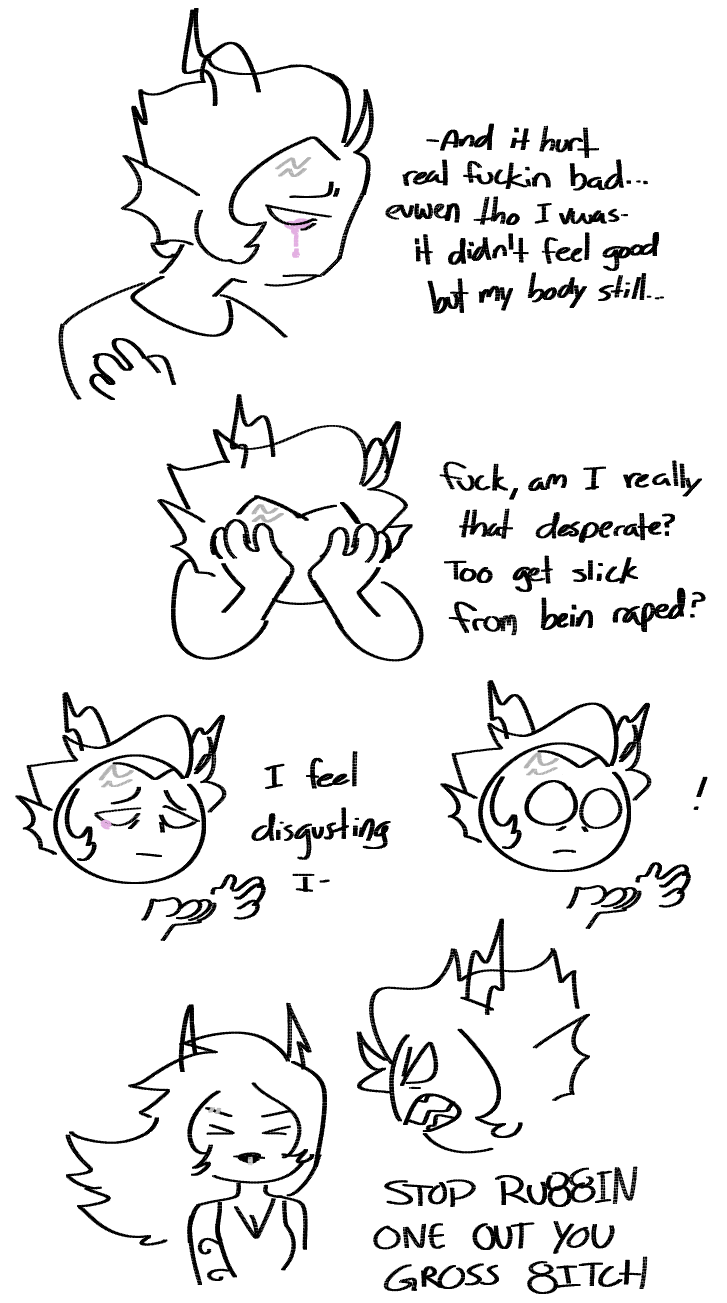 >>152756379>QOTT: what's your most "problematic" Homestuck opinion?There should've been more themes of underage sex and straight up nudity and sex in the comic.