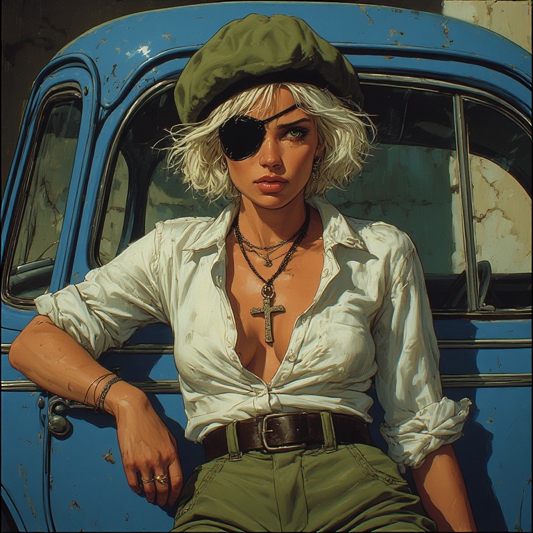 >>152775131If you were doing a "no-style" this is what it injected plus the start of my Eyepatch prompt. YMMV obviously:>Image style is Frank Frazetta style, erotic, sensual, explicit, dynamic composition, powerful anatomy, dramatic lighting, painterly brushstrokes, intense chiaroscuro, bold color palette, fantastical realism, muscular figures, windswept hair, primal energy, evocative skies and mythic atmosphere.. breathtaking oil painting with fine pencil work, aesthetic 90s comic artwork. A rough-looking European woman in her late 30...