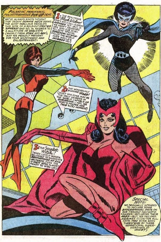 Fair point, but even if you just restricted it to Jan and Wanda, Jan was a distant second in importance, popularity and people waifuing her. Jan doesn't really start to come into her own until the 80s, and needed a divorce and a leadership role to do it. If it wasn't for Wasp being one of the founding Avengers it would be obvious who the main heroine of the team is.