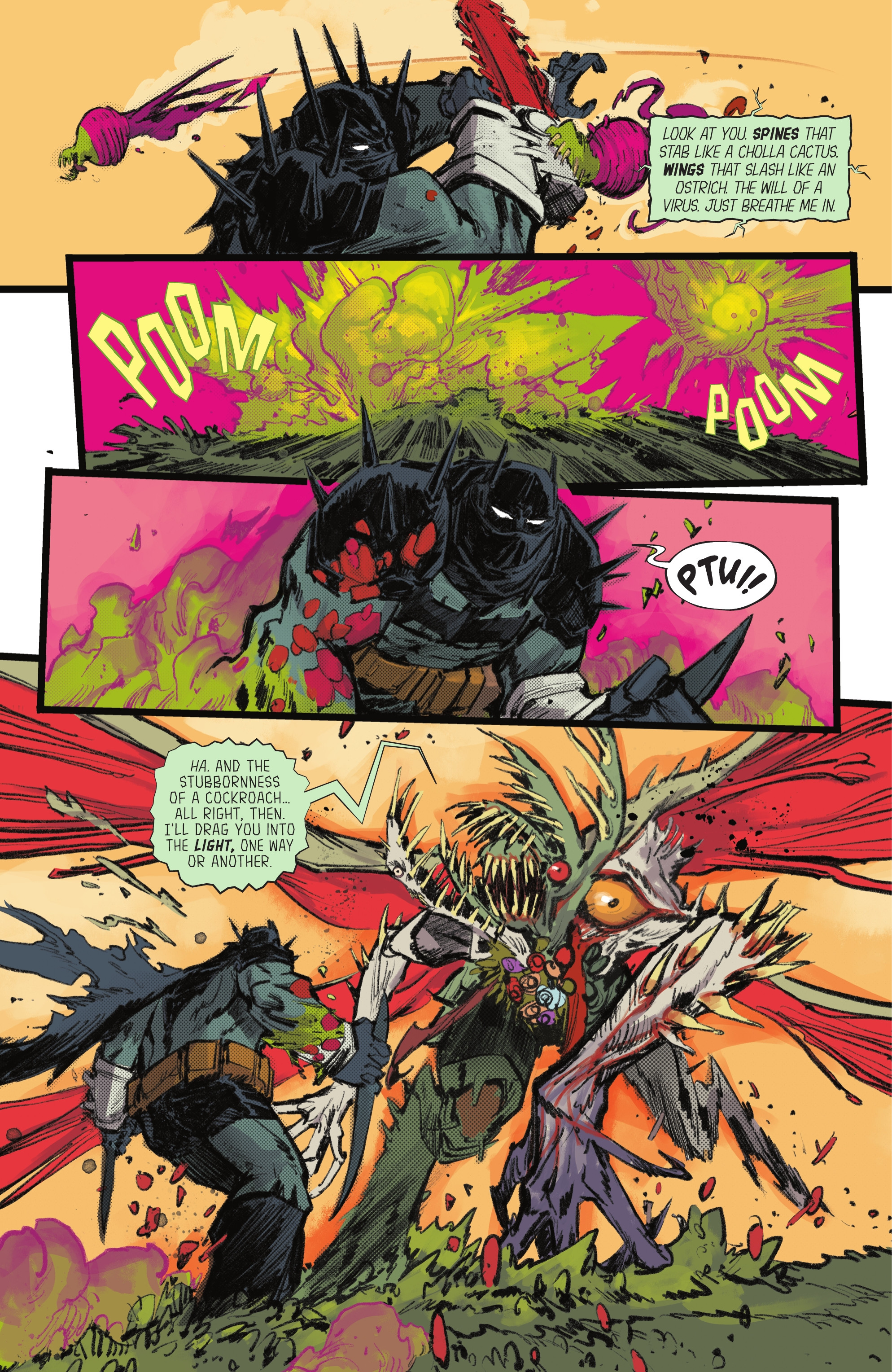 the more i think about it the more i realize that the appeal of absolute batman is that it's a resident evil story starring batmanlike the first arc is standard batman fare and then boom, evil ass pharma company fighting a big musclebound man punching their bioweapons in the face