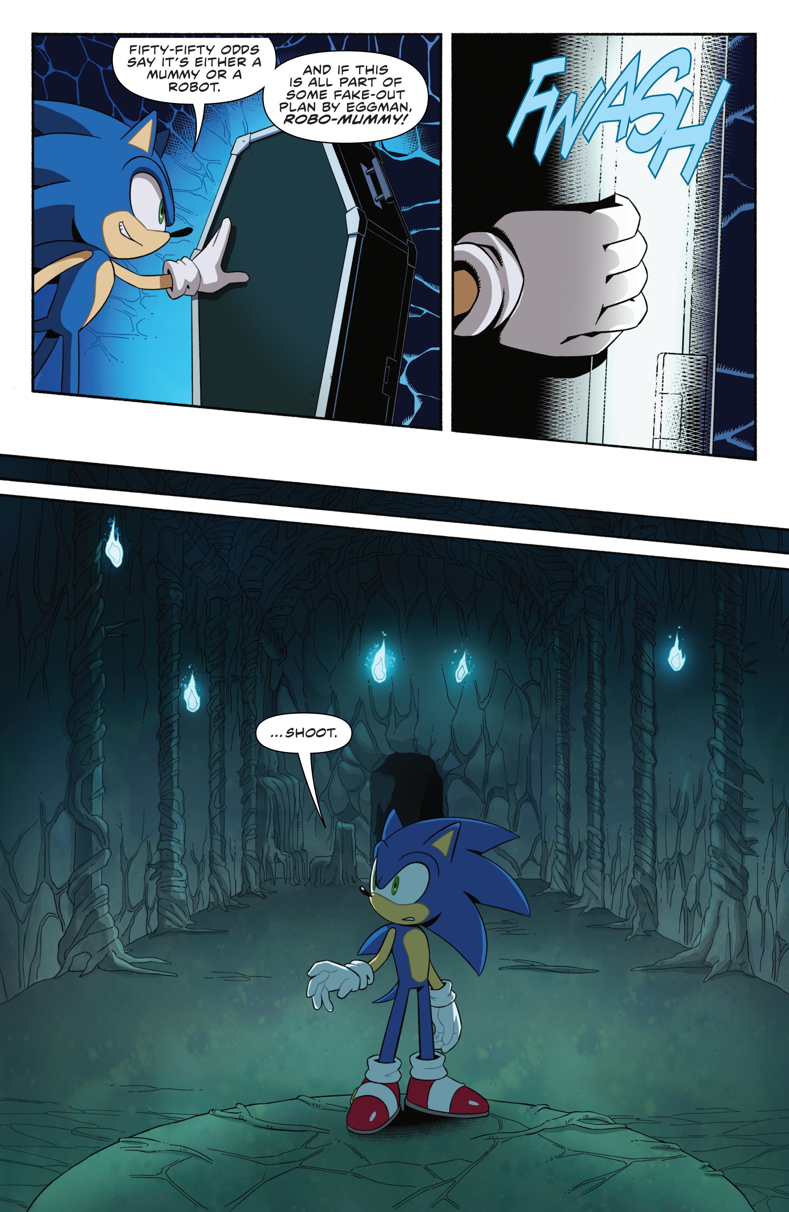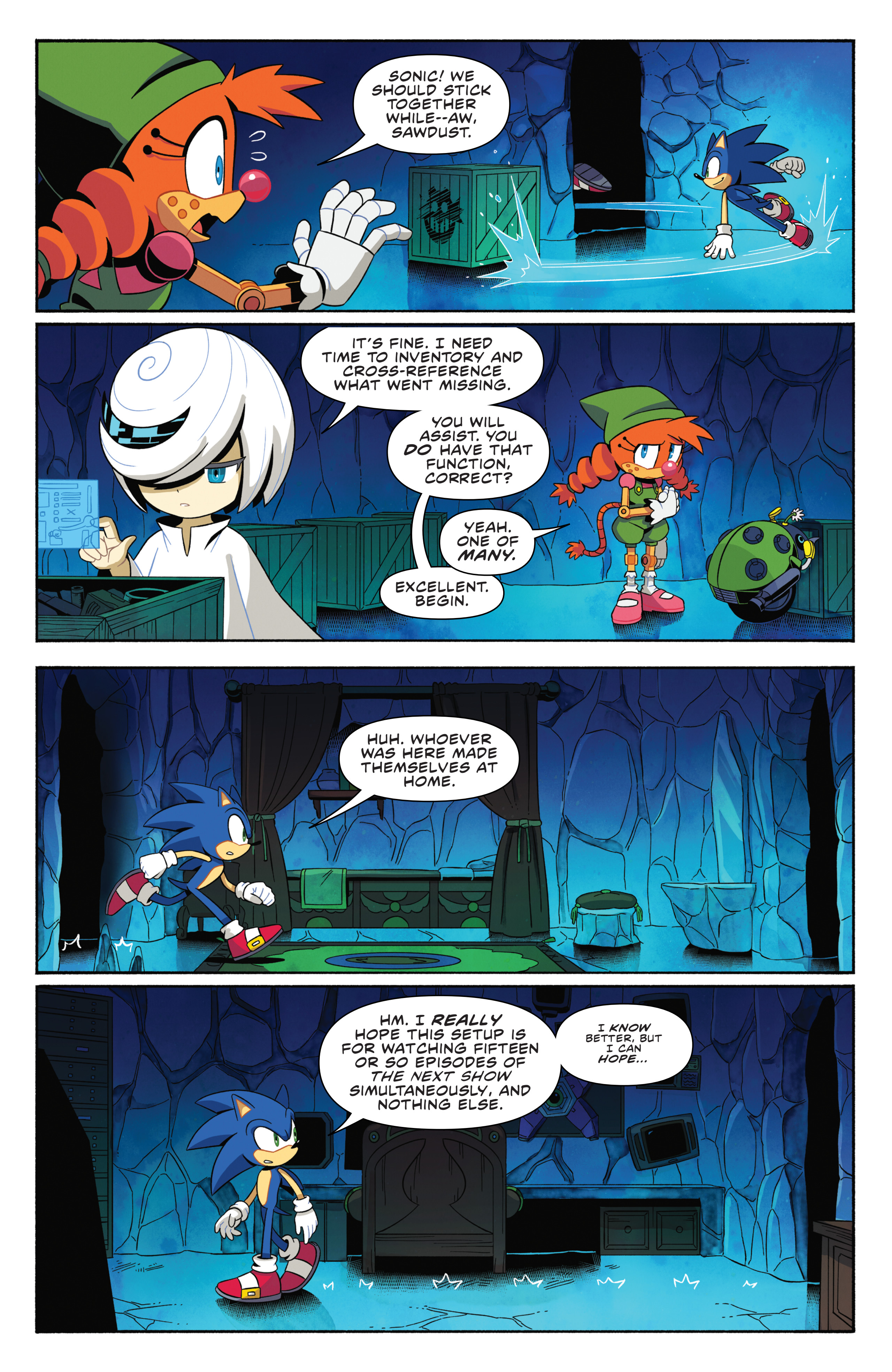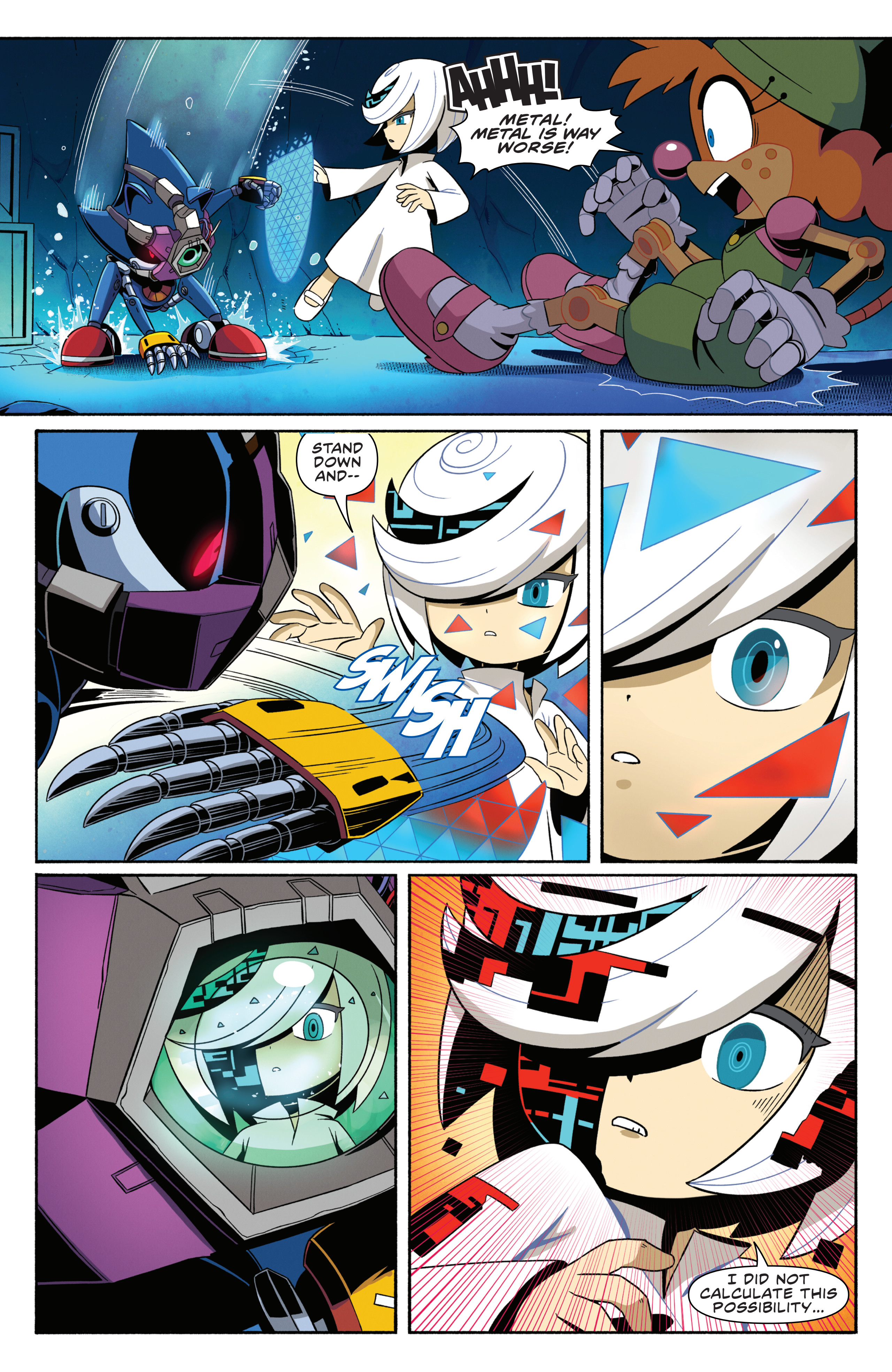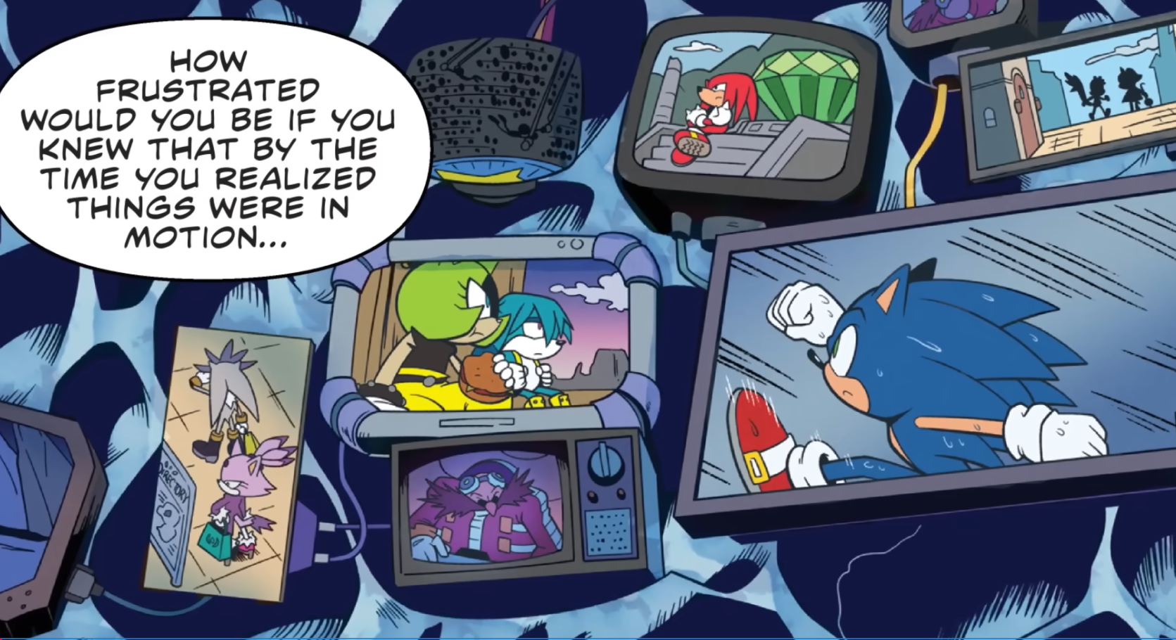 I'm going to give this storyline the benefit of the doubt, but I hope they have a good reason for this mysterious threat to be able to lock out Sage, who was able to figure out ancient tech that made the Chaos Emeralds seem mundane, with little trouble. I don't even think I'd be satisfied even with it being Starline returning at this point. It would have to be some kind of proto Sage Eggman forgot to mention or Eggman Nega at this point.