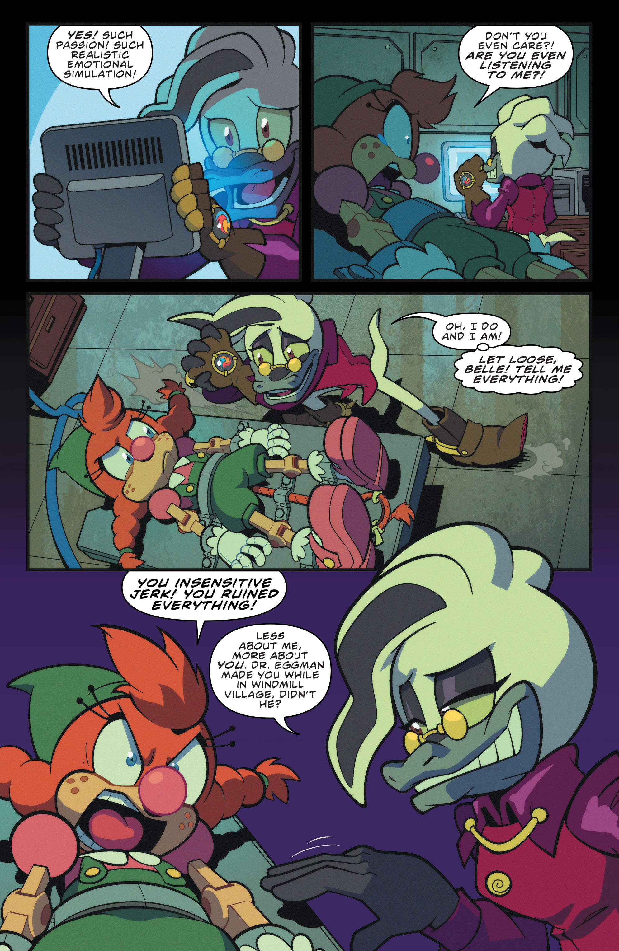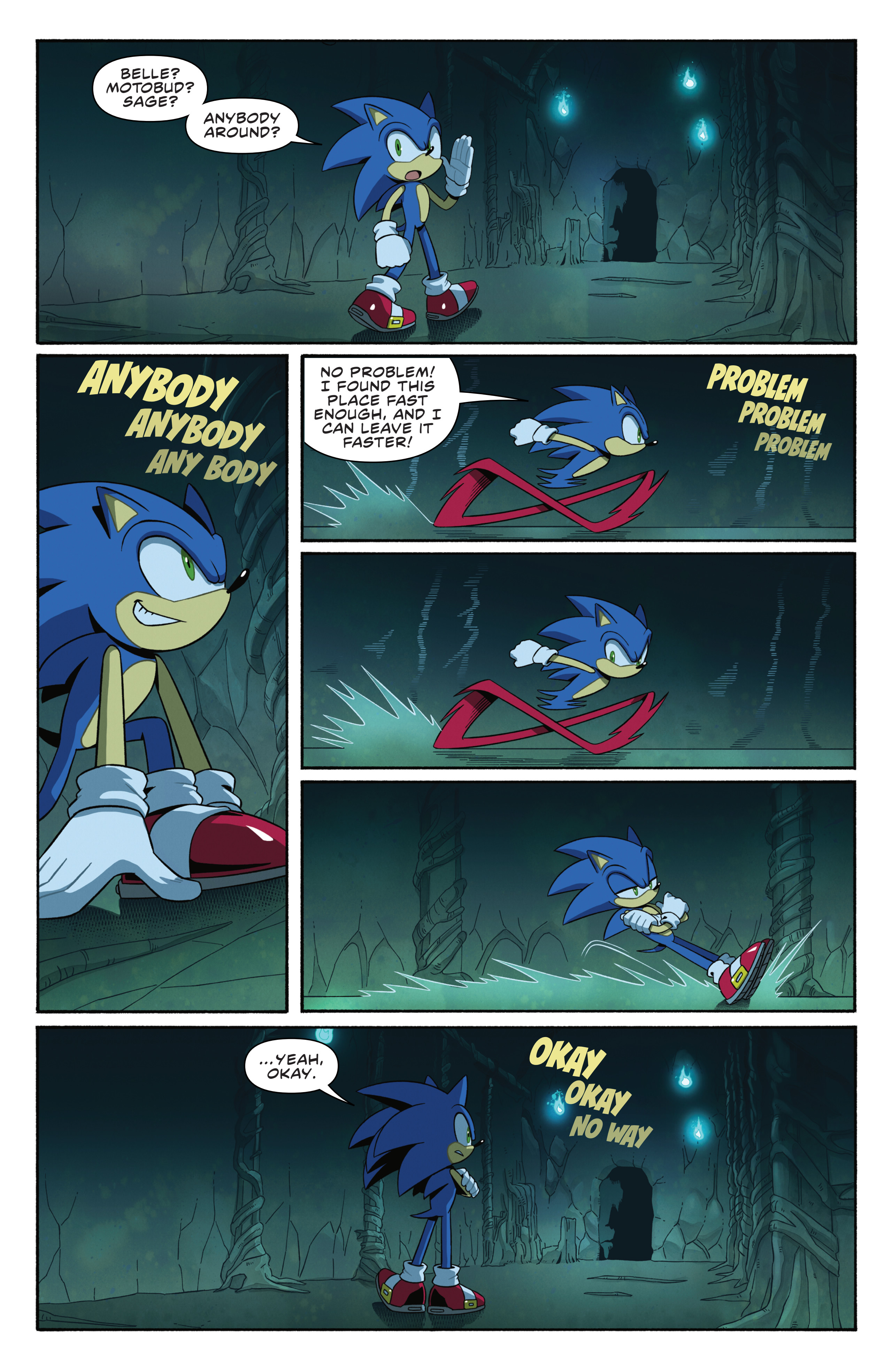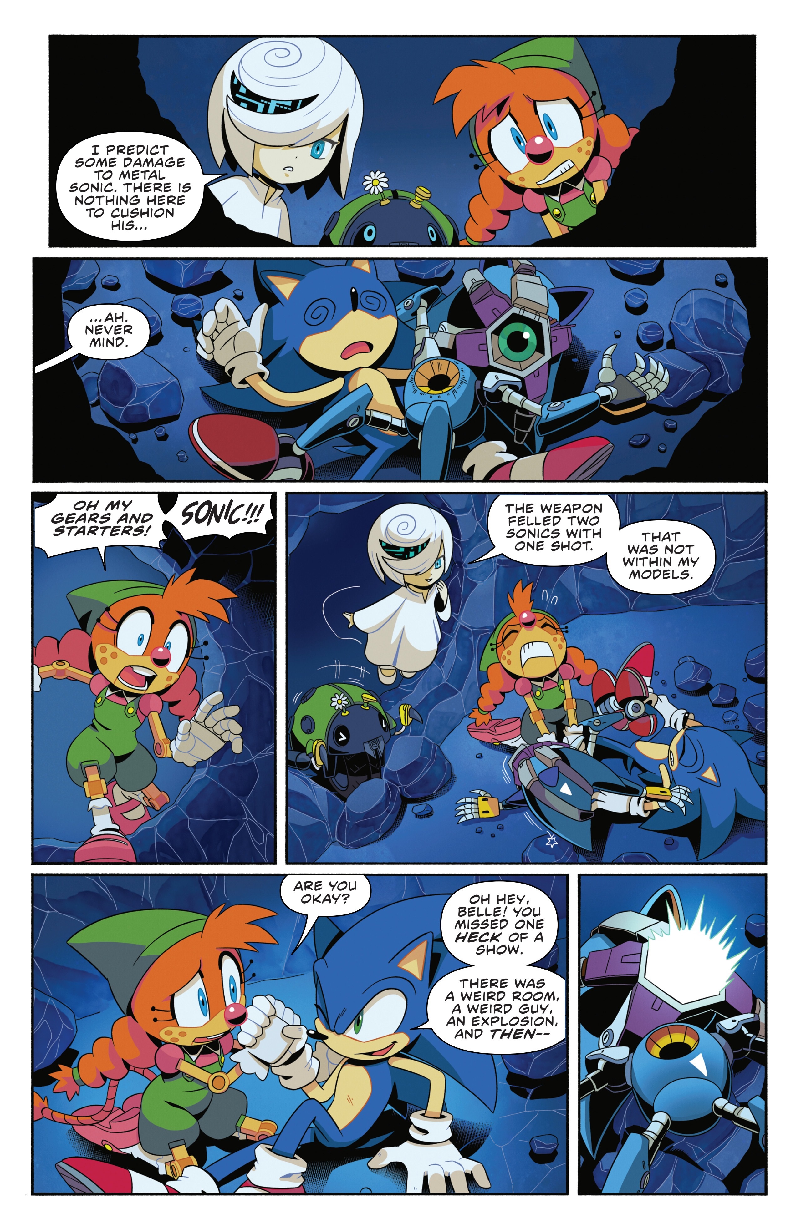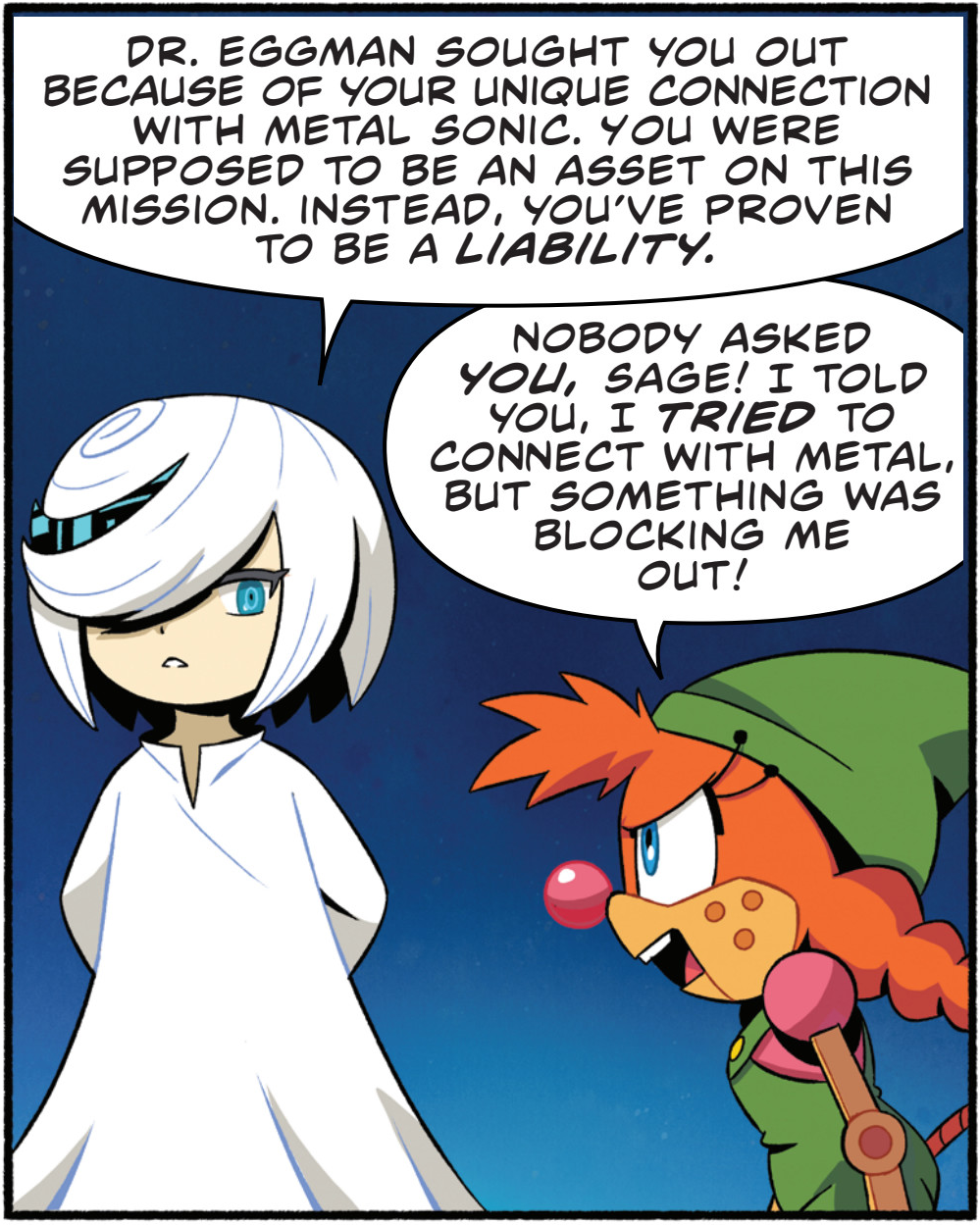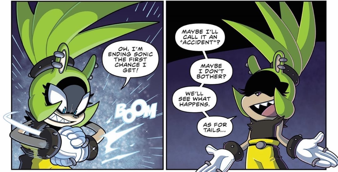 >Sage can't just teleport out of a cave>Sage can't just run simulations to find the best way out>Sage actually scared of metal sonic and screaming>Sage can't just go intangible>Sage can’t just fire a laser herself, from her hands, like she does in FrontiersThey really nerfed Sage to hell just to ensure Belle and her Gay Motobug are relevant in this crappy Steven Universe plot.Part of the bigger problem with Evan’s writing, she should be increasing the stakes and the action, not lowering them for everyone just to force her OCs in. Like people want Tails and Amy to be fighting in giant Extreme Gear races against the Rogues, not to be slowly walking around hallways chit-chatting with Belle and Jewel and the Gay Cock fighting noone.