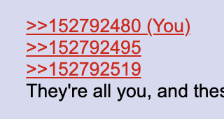 >>152792722https://desuarchive.org/co/thread/152559196/#152584489You can stop pretending you don't samefag, it's okay.