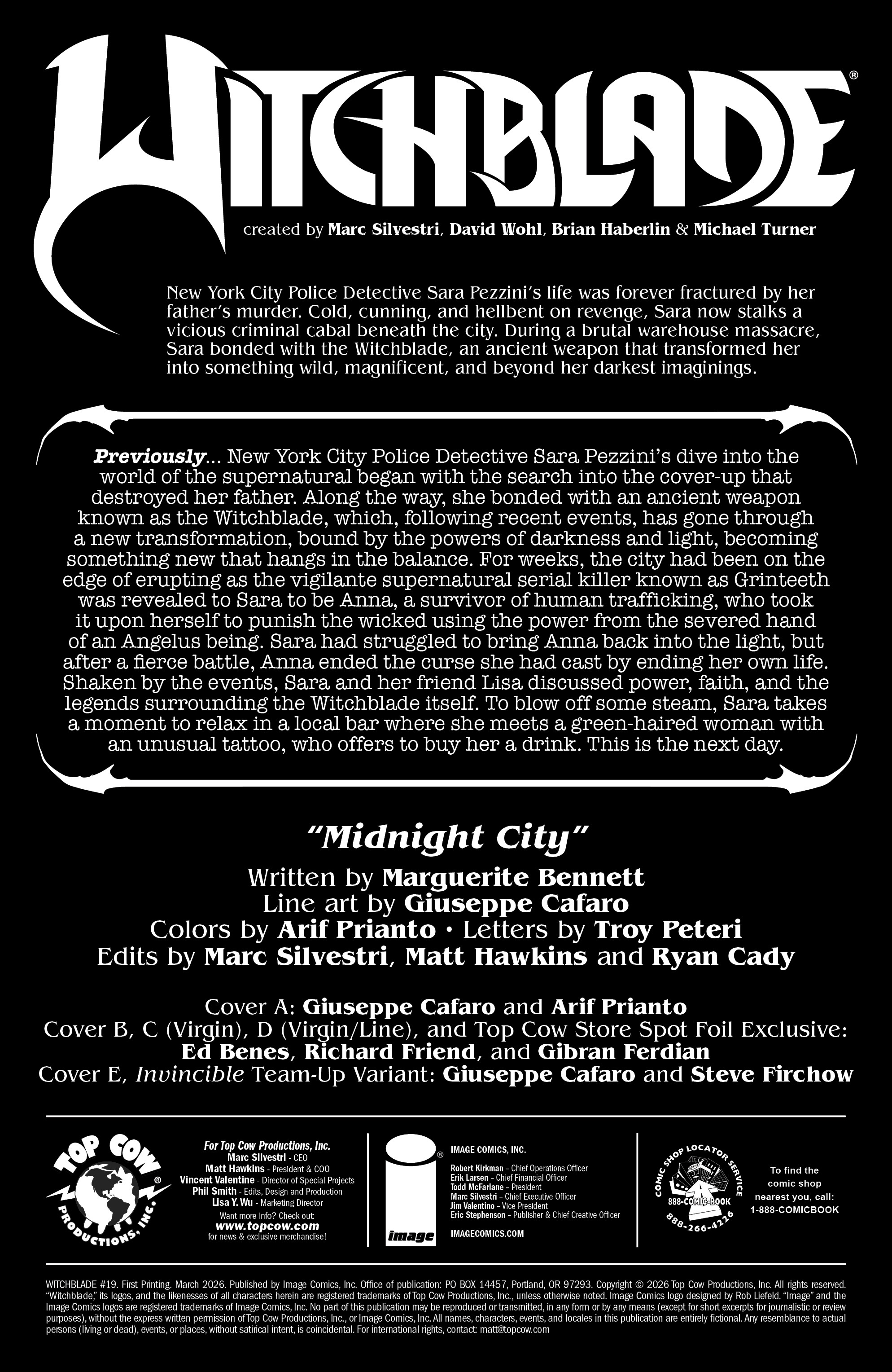The ongoing Witchblade series is one of the comic book series of all time. This is its nineteenth issue.