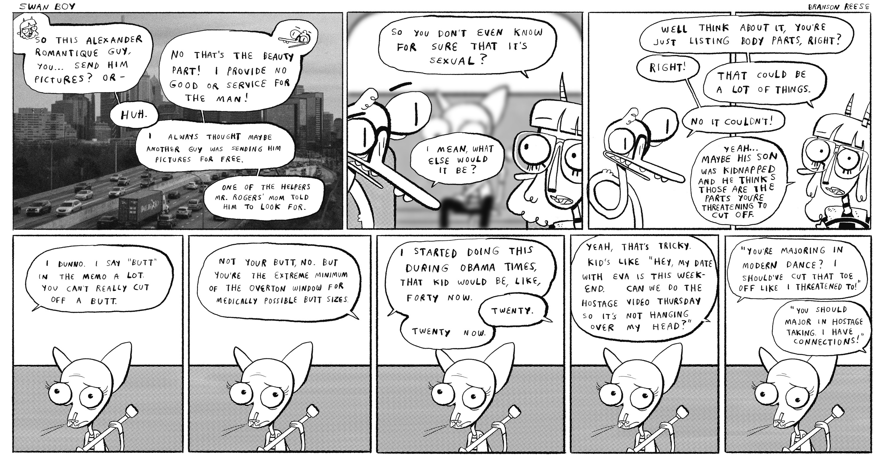 >>152797475Branson Reese, Branson Reese..... Oh my smoking balls, the Swan Boy guy? That's awesomemazing. That comic somehow just keeps getting funnier. Have you read the most recent arc?