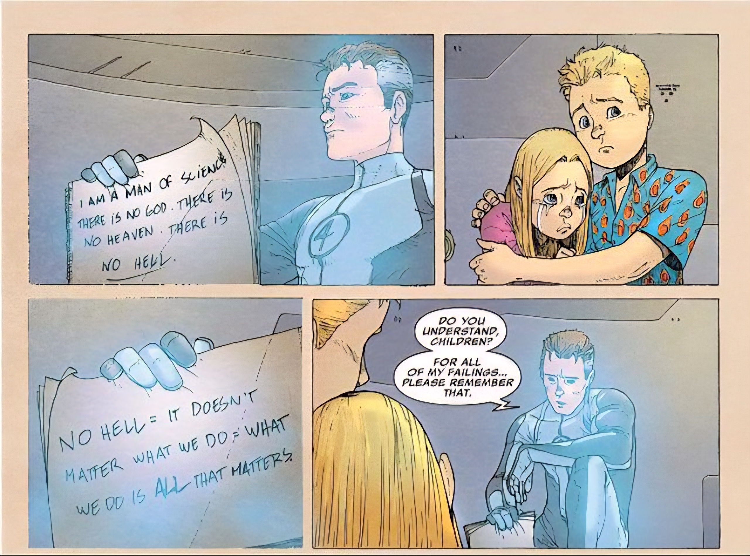 >>152797728The writer is retarded to not have Reed believe in God because REED MET GOD! He busted Dr Doom out of hell because he was scared Doom would be running the joint. I hate when writers are like this. A lot of famous scientists were more religious than you'd expect.
