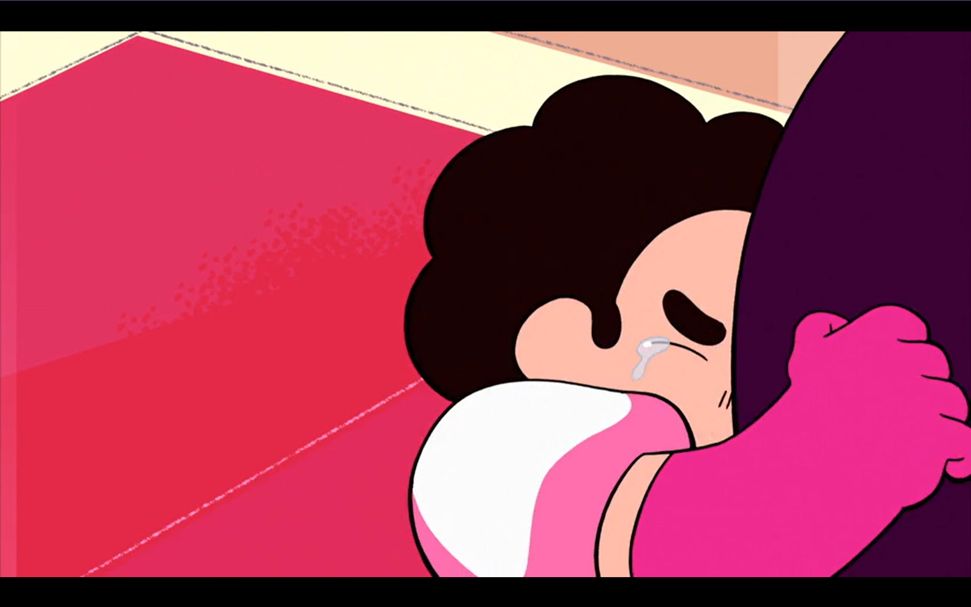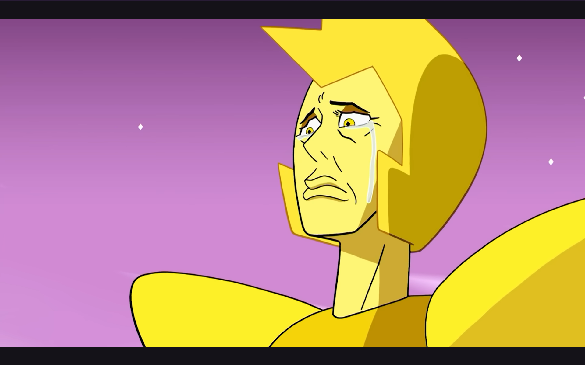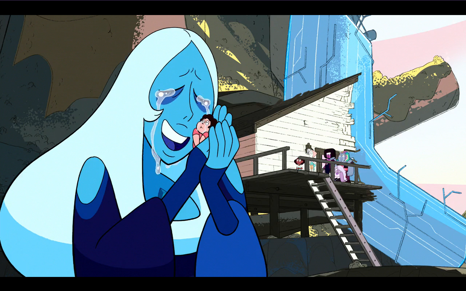 >What's Your Problem?Sapphire cries after Ruby runs away. Pearl cries at the thought of Garnet being gone forever. Steven cries after helicopter Amethyst crashes into a water tower due to the speed of their descent. Frankly it was a tough choice between this and Pearl and Sapphire crying while hugging for the screencap.