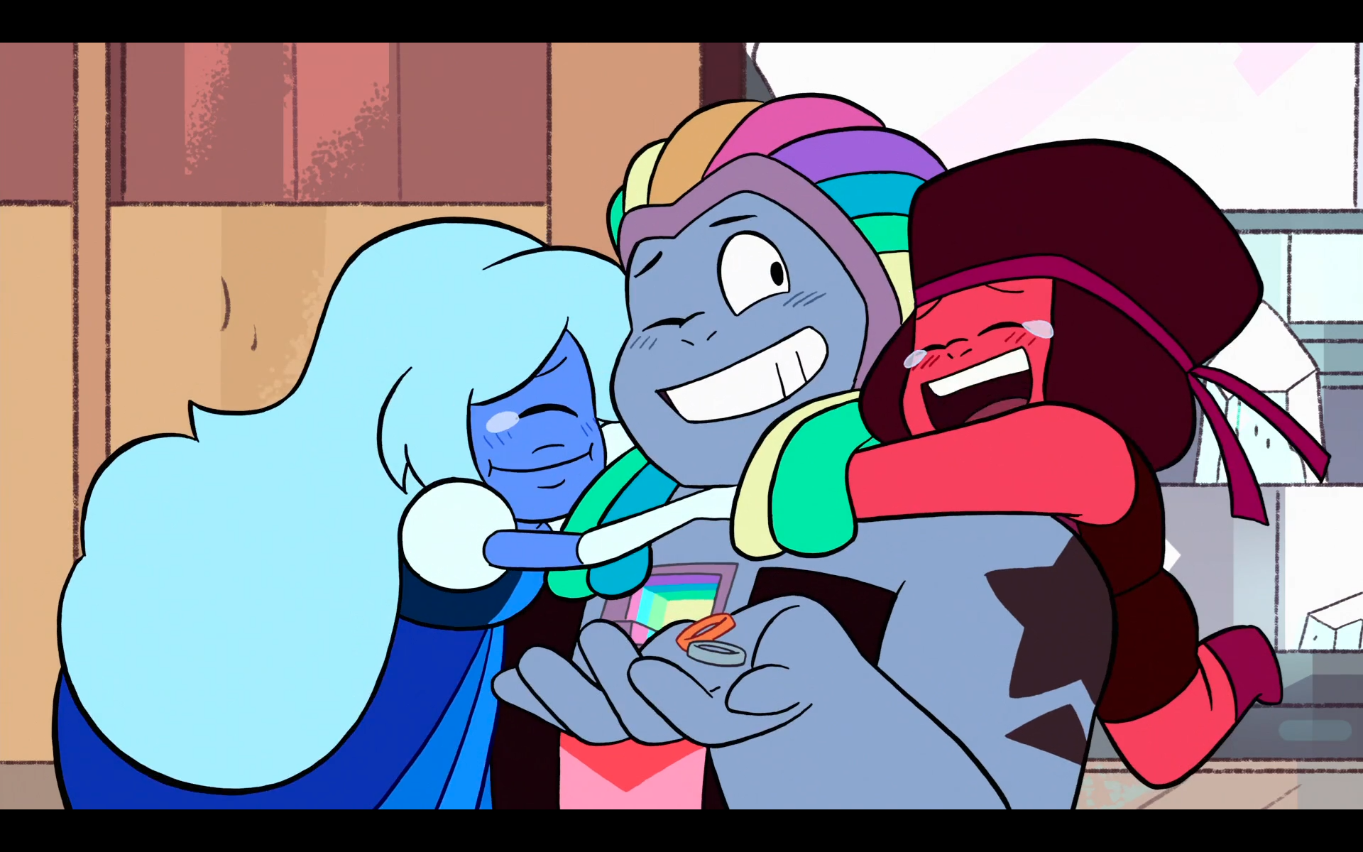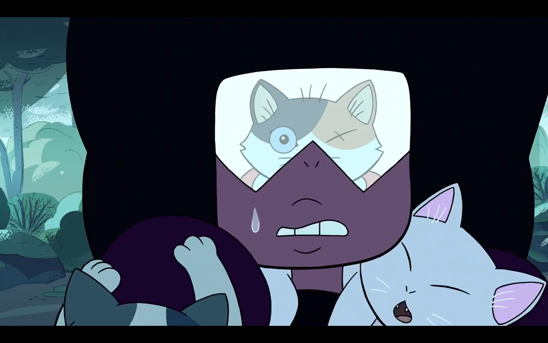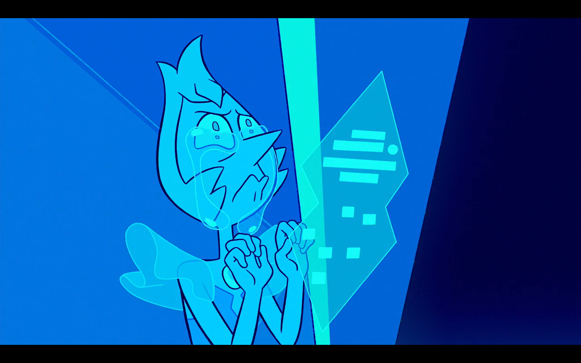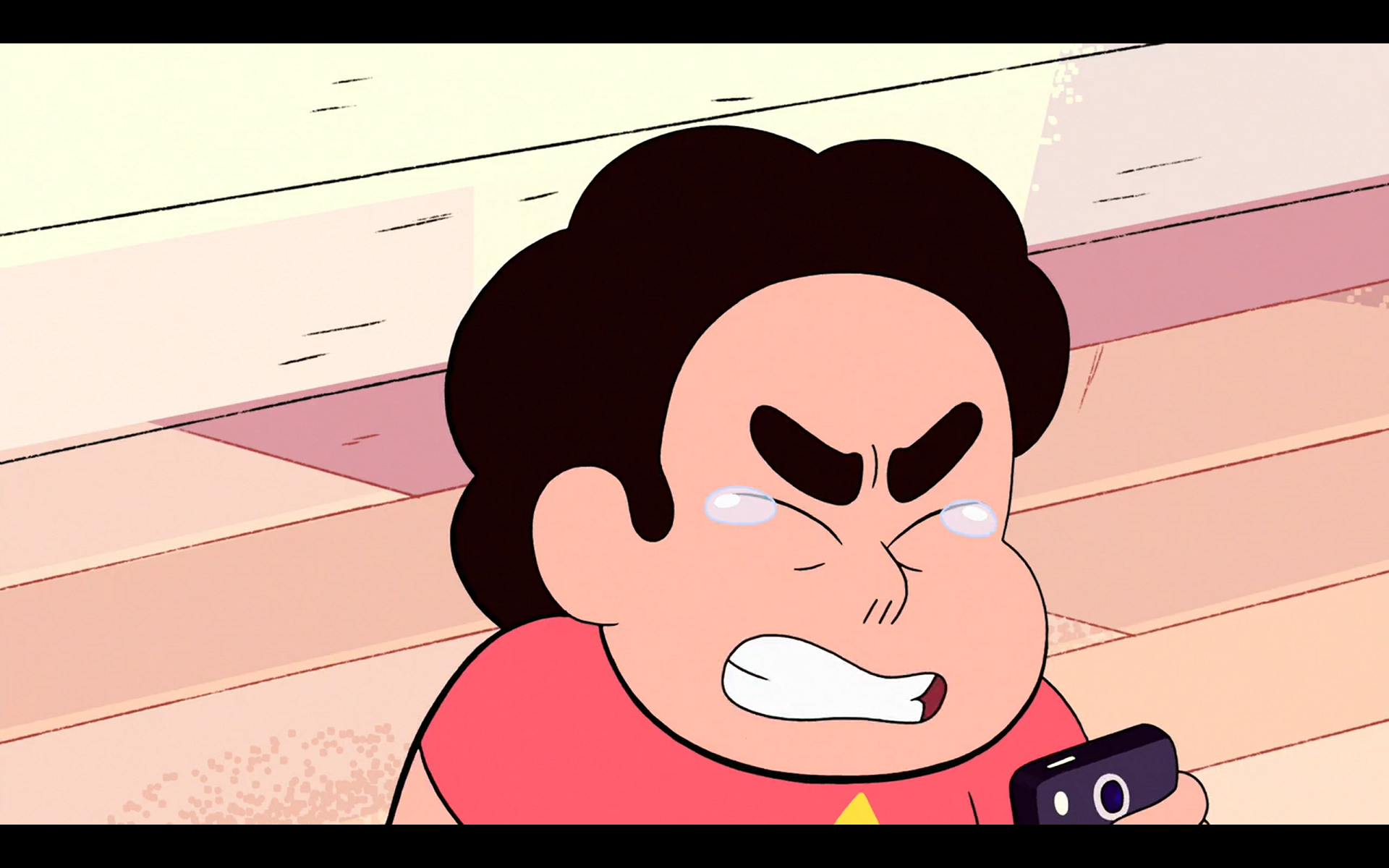 >What's Your Problem?Sapphire cries after Ruby runs away. Pearl cries at the thought of Garnet being gone forever. Steven cries after helicopter Amethyst crashes into a water tower due to the speed of their descent. Frankly it was a tough choice between this and Pearl and Sapphire crying while hugging for the screencap.