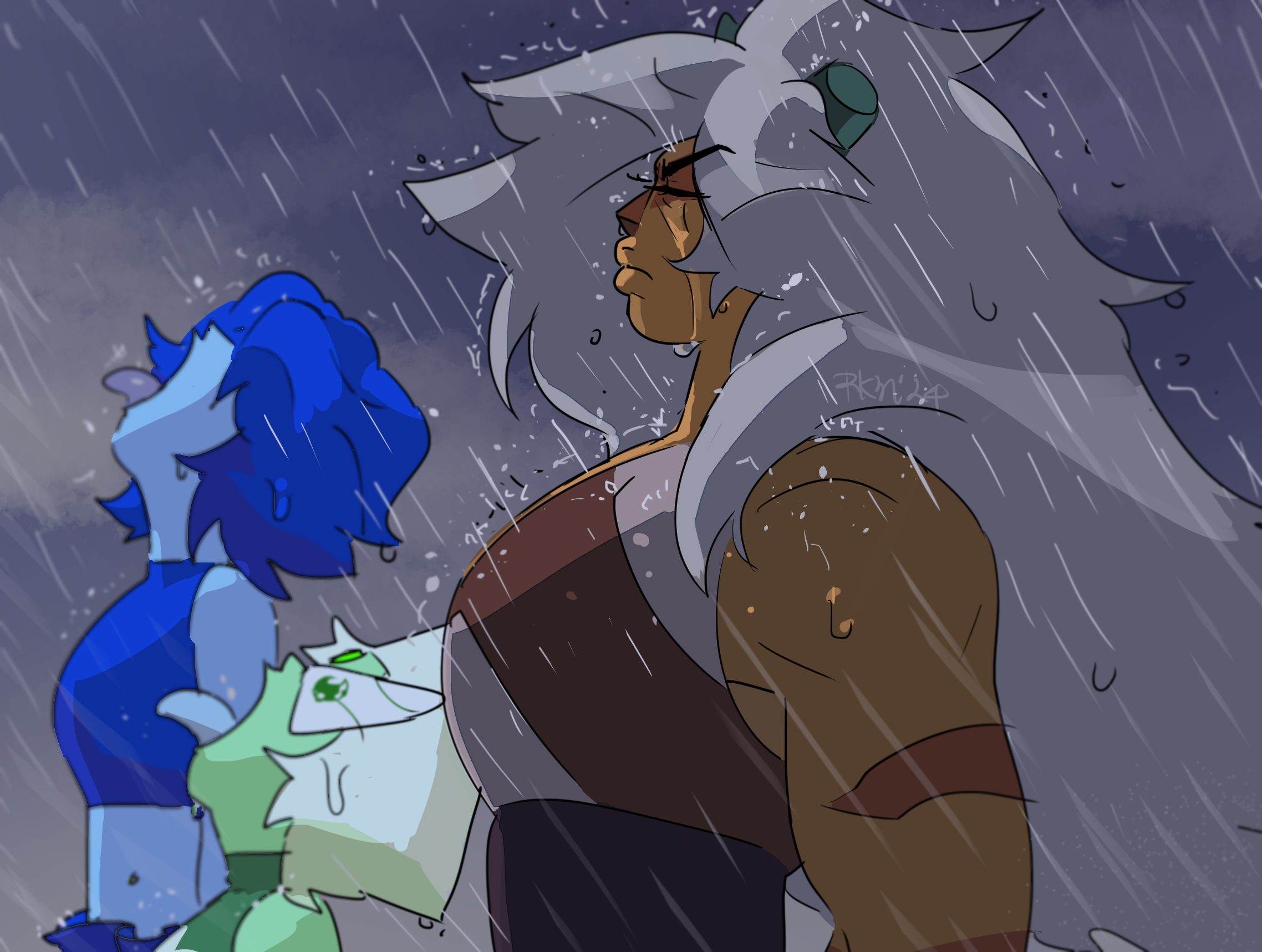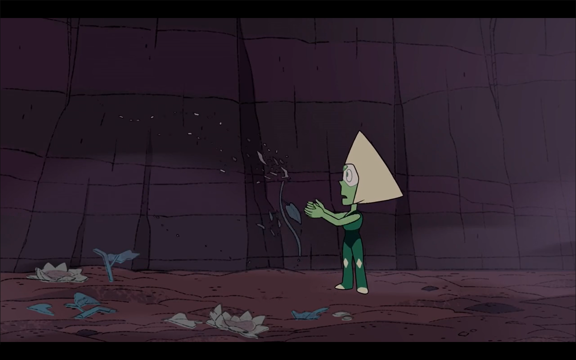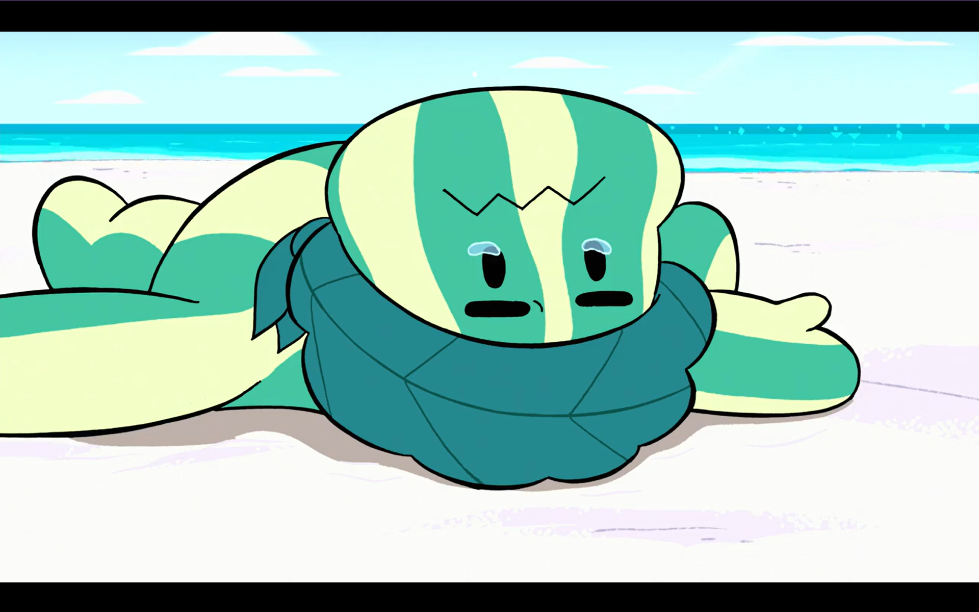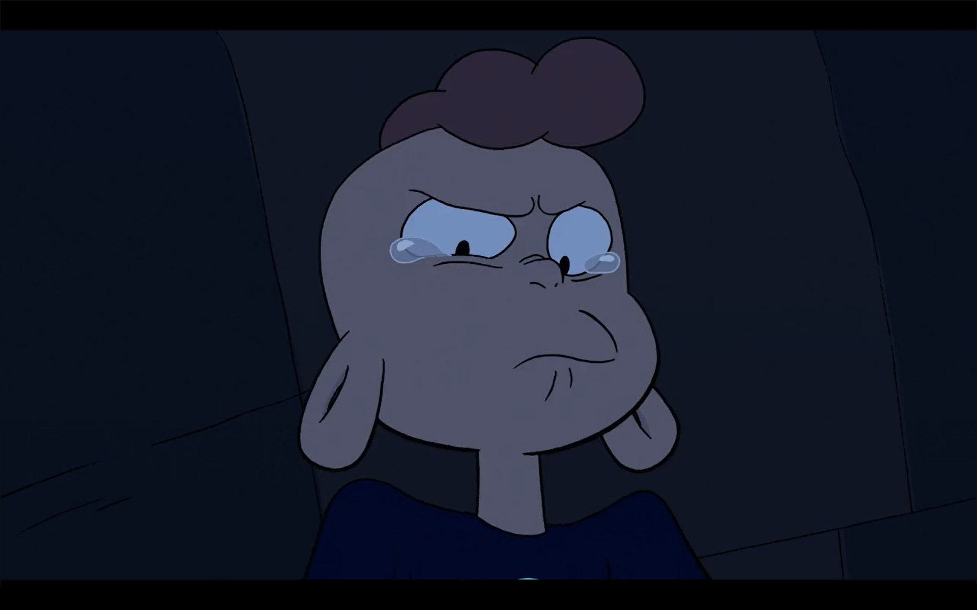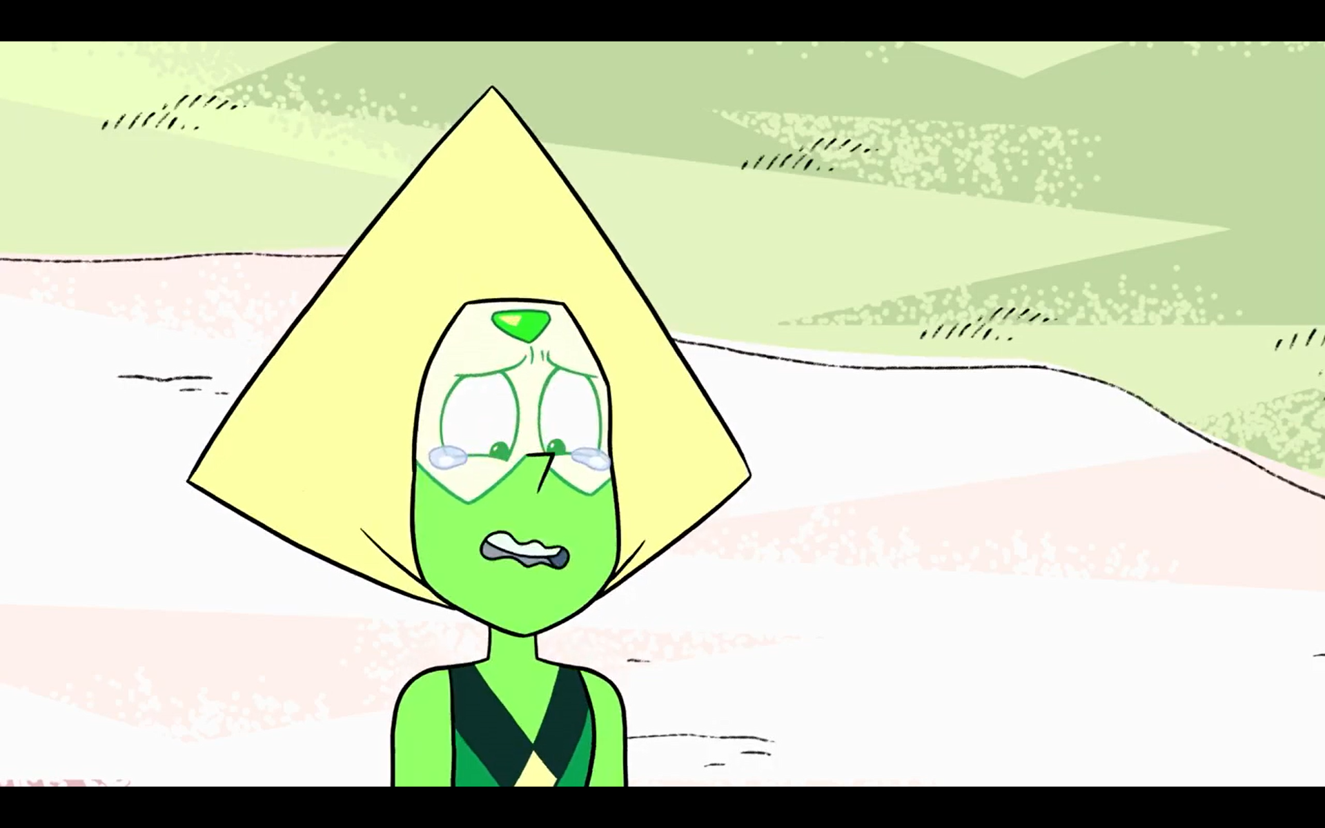 >Together AloneSteven cries after Garnet refuses to go to his party. Blue causes this random green gem to cry with her presence which is an honorable mention. This also confirms that Blue doesn't need to cry in order to make others cry.