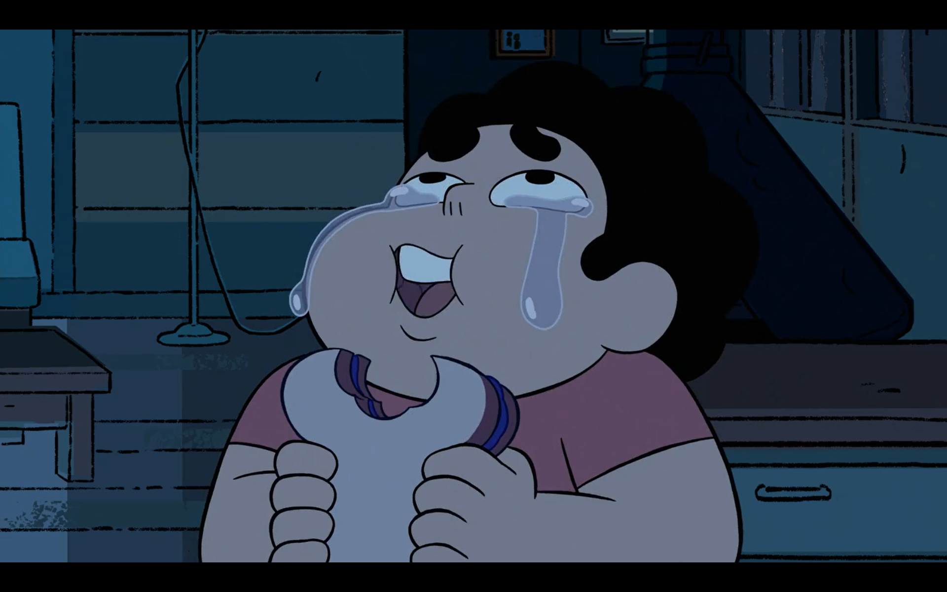 >Lars' HeadOddly this is the first time an episode has begun mid-cry from the previous episode. I guess I'll still count it as a unique cry for this episode too. Steven cries a little more afterward (seemingly from stress rather than Lars' death). Steven also cries after fixing himself a PB&J. Pearl and Greg cry when Steven returns.>>152803664I might've bought that if they didn't do a close up on the tear falling on Lars. Real pokemon shit.