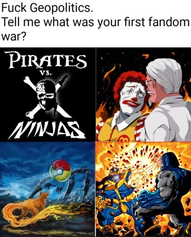 >>152808336From where ninja vs pirate came from? I remember it from the forum era of internet.