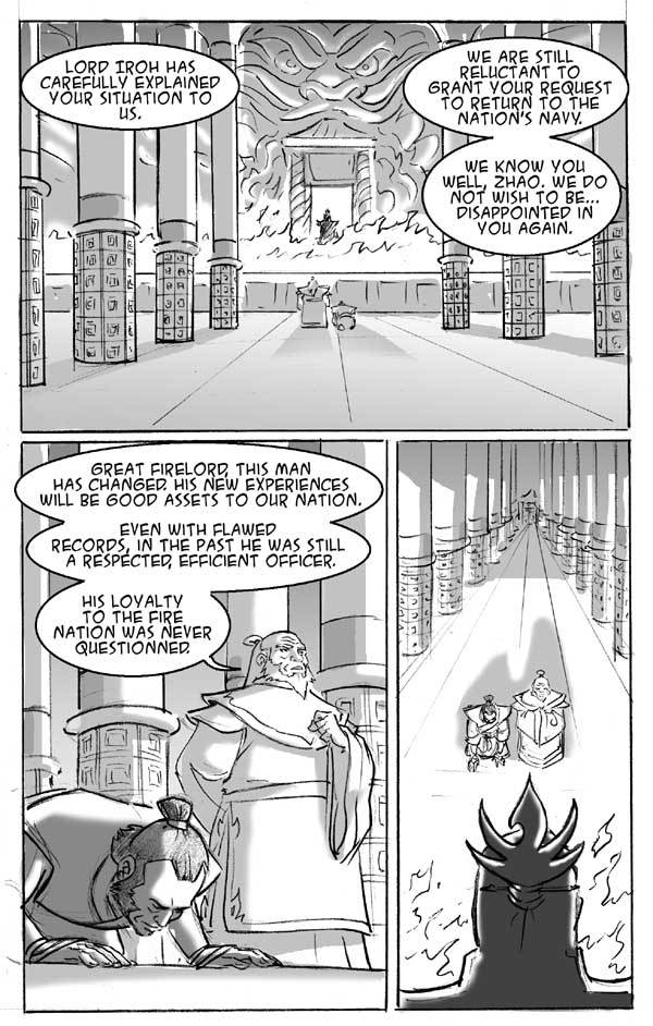 >>152814775It kind of feels like a must read for anyone into Avatar, frankly. It covers a lot of stuff, even beyond Zhao, and is a fun look at the kind of thing the official comics were trying, and often failing, to pull off with their post script stories. That it's centered around a very fujo idea of "redeemed Zhao" is sort of something you'll have to get over. Except it's also one of those rare fanfics that has an obvious "Fetish" but also the creator is competent and has enough restraint to portray it in a generally interesting manner.As an example, I love this page where it has a guard "dog" that's revealed to be a Goosedog. Or Doggoose or Goosehound or something. Just a really solid, subtle joke using the Avatar gag of having all the animals be mash ups.