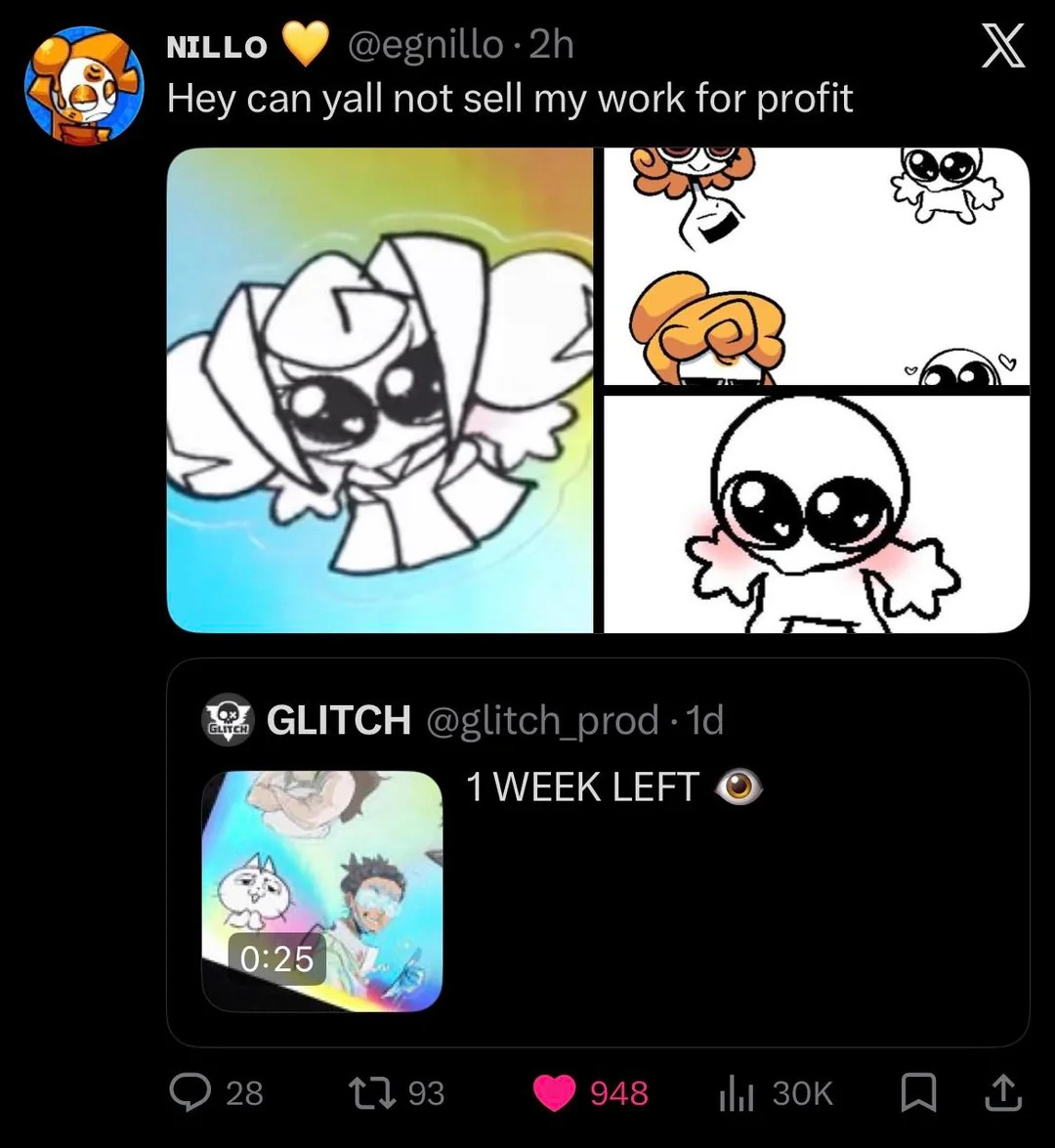>>152831552There was some controversy about Glitch Productions selling some edits of someone's work, idk. It was stupid, but there's a reason I bring it up.Stuff like this can build up, and if they continue to fuck up, it will eventually bit them in the ass.