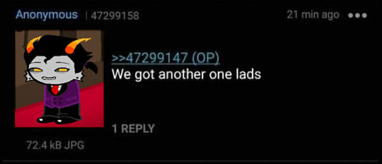 >>152850041/hsg/ is not homestuck in general (its homestuck's general on 4chan)