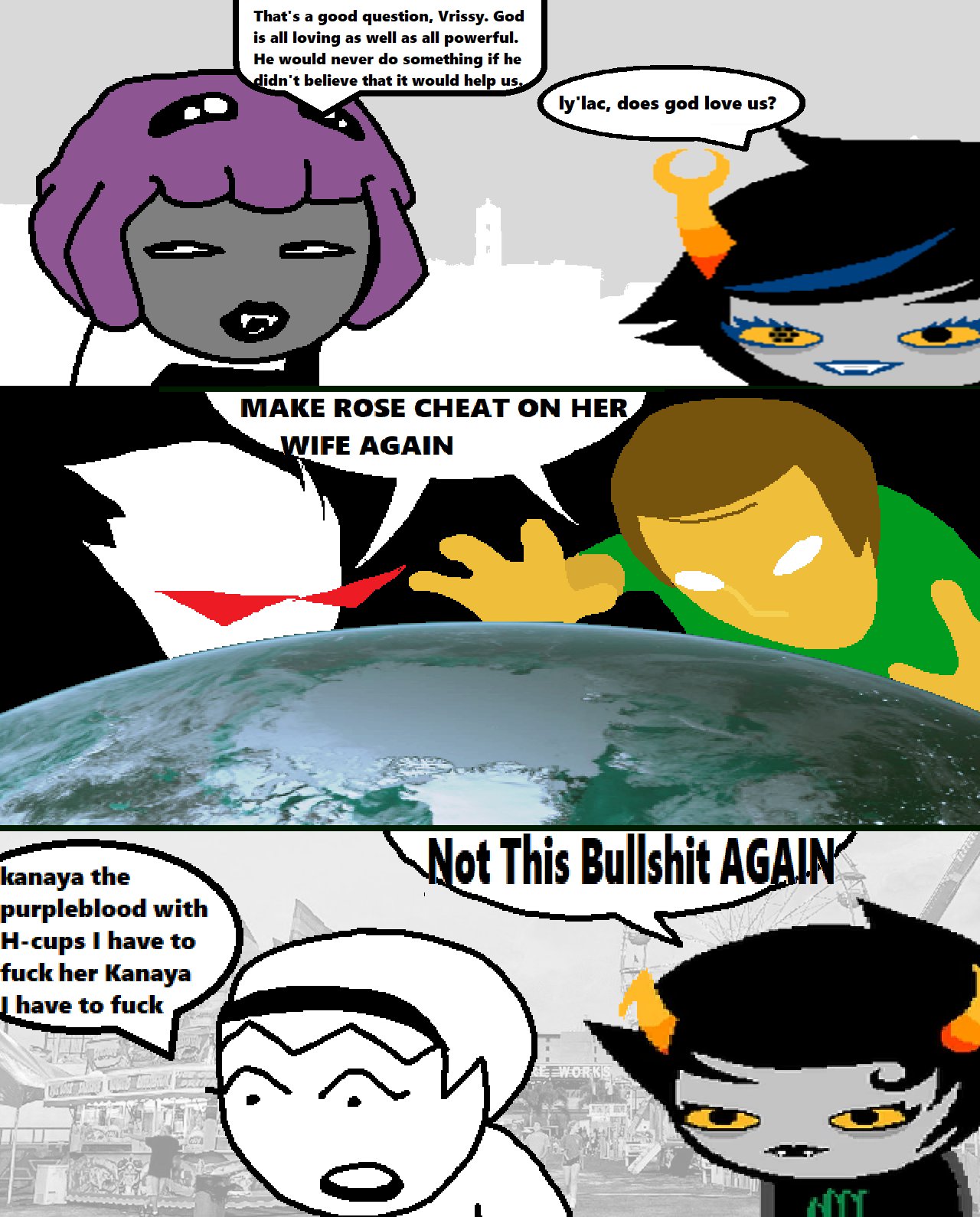 >Feferi and Meenah arguing about how to use Karkat as a tool of propaganda >And also sex