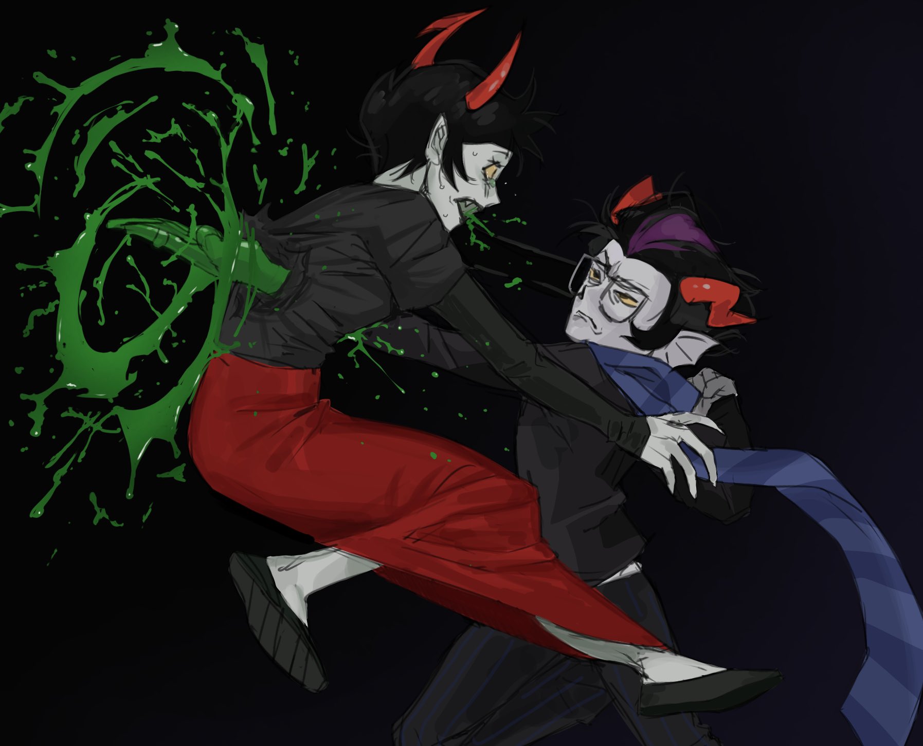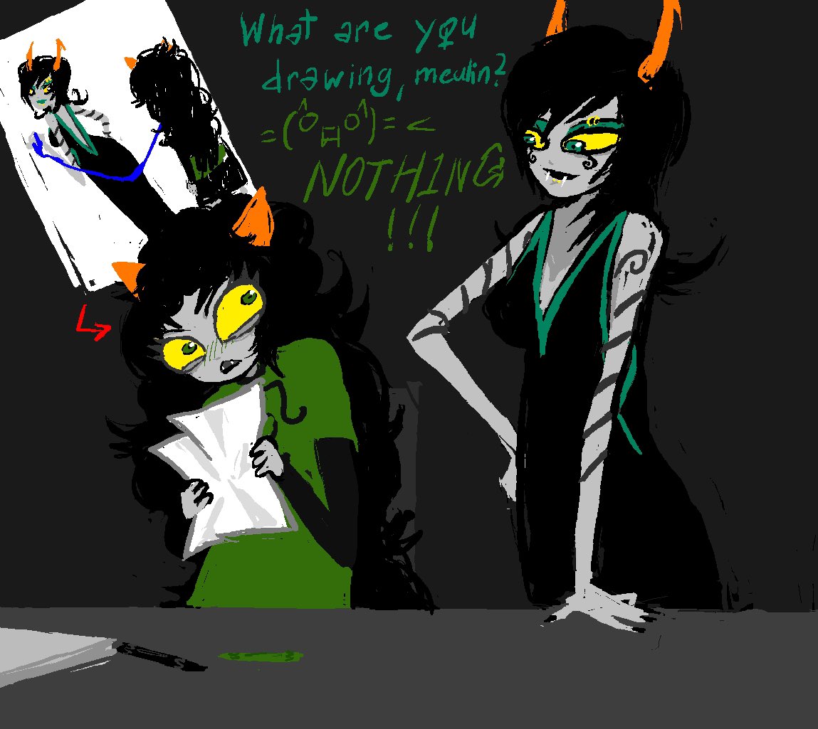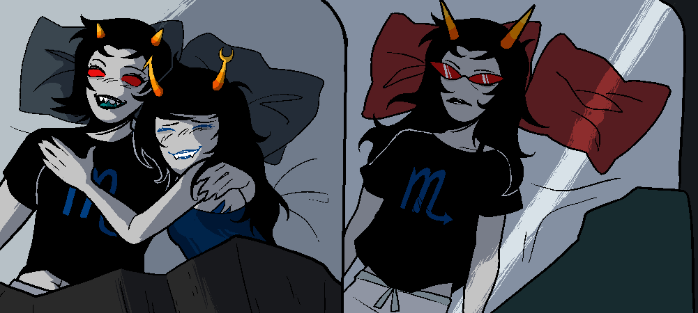 >>152837994>>152838008>Human Karkat and Terezi venting about their day to each other