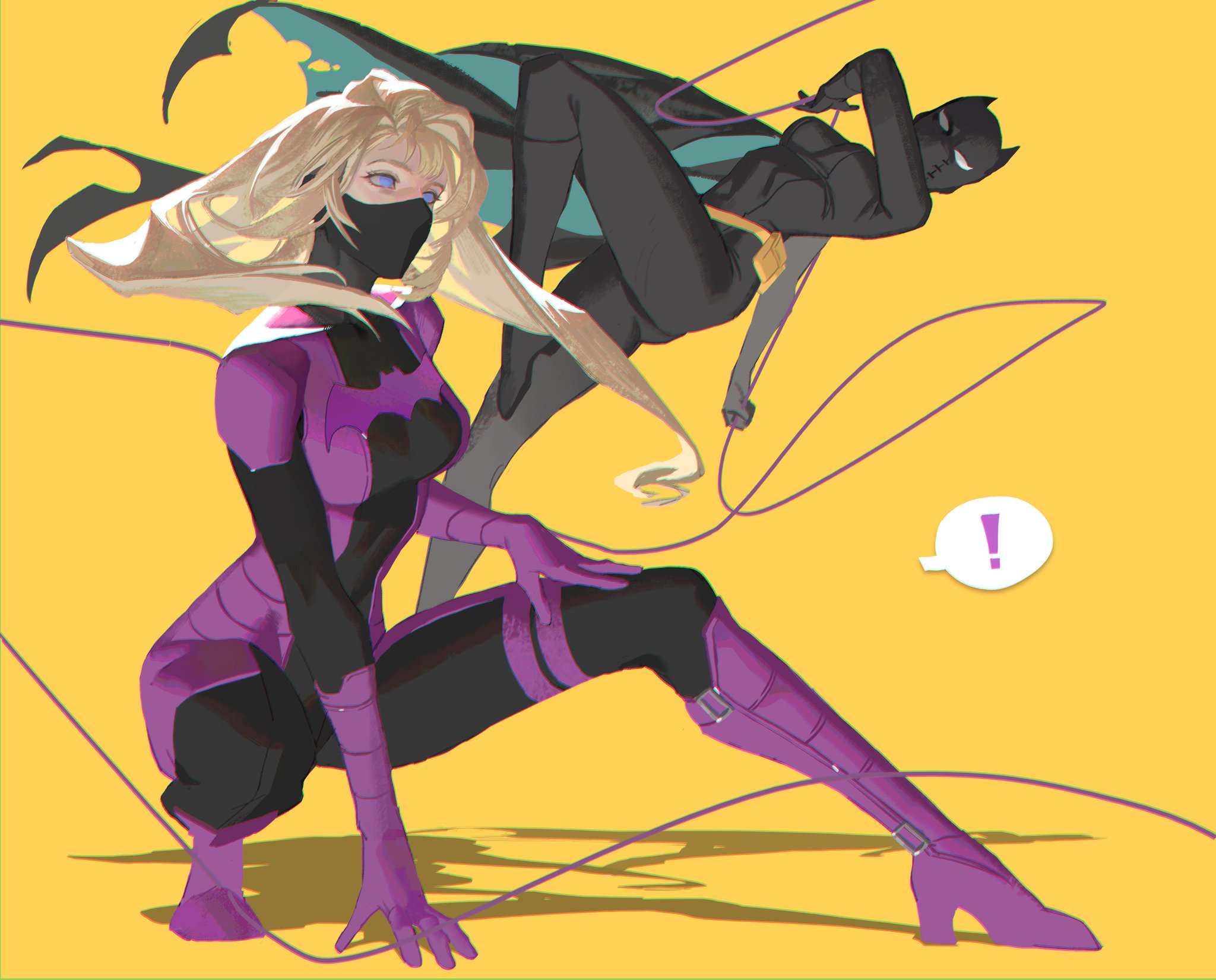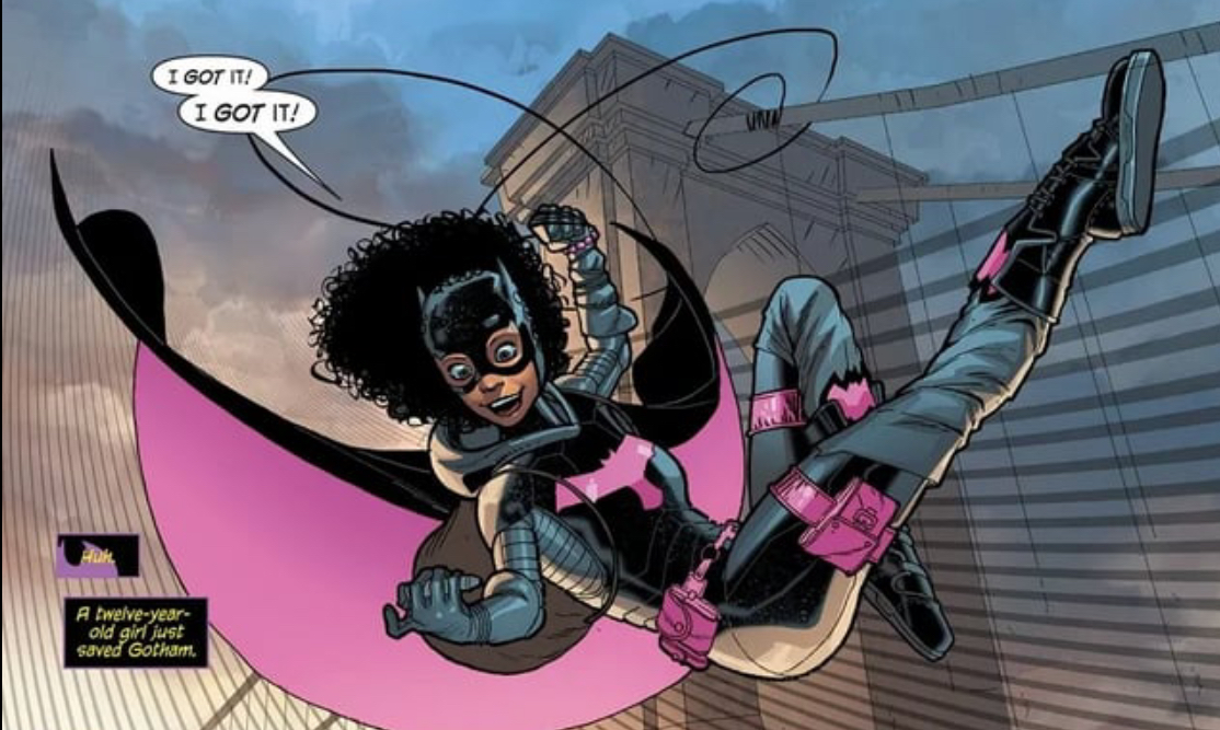 >>152870661Isn't that Helena with the mask off, and the pink bat one is Tiffany fox, Lucius daughter from futures end the other one is nell little from Steph's black mercy dream where she was Nightwing and banging Damian