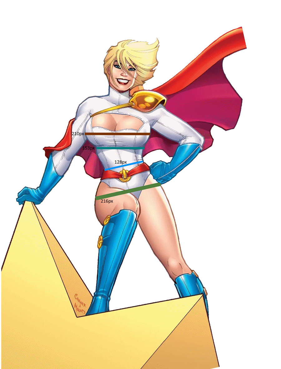 >>152881992Power Girl's measurements are roughly30 IBust 39.5Underbust 30Waist 26Hips 40.5