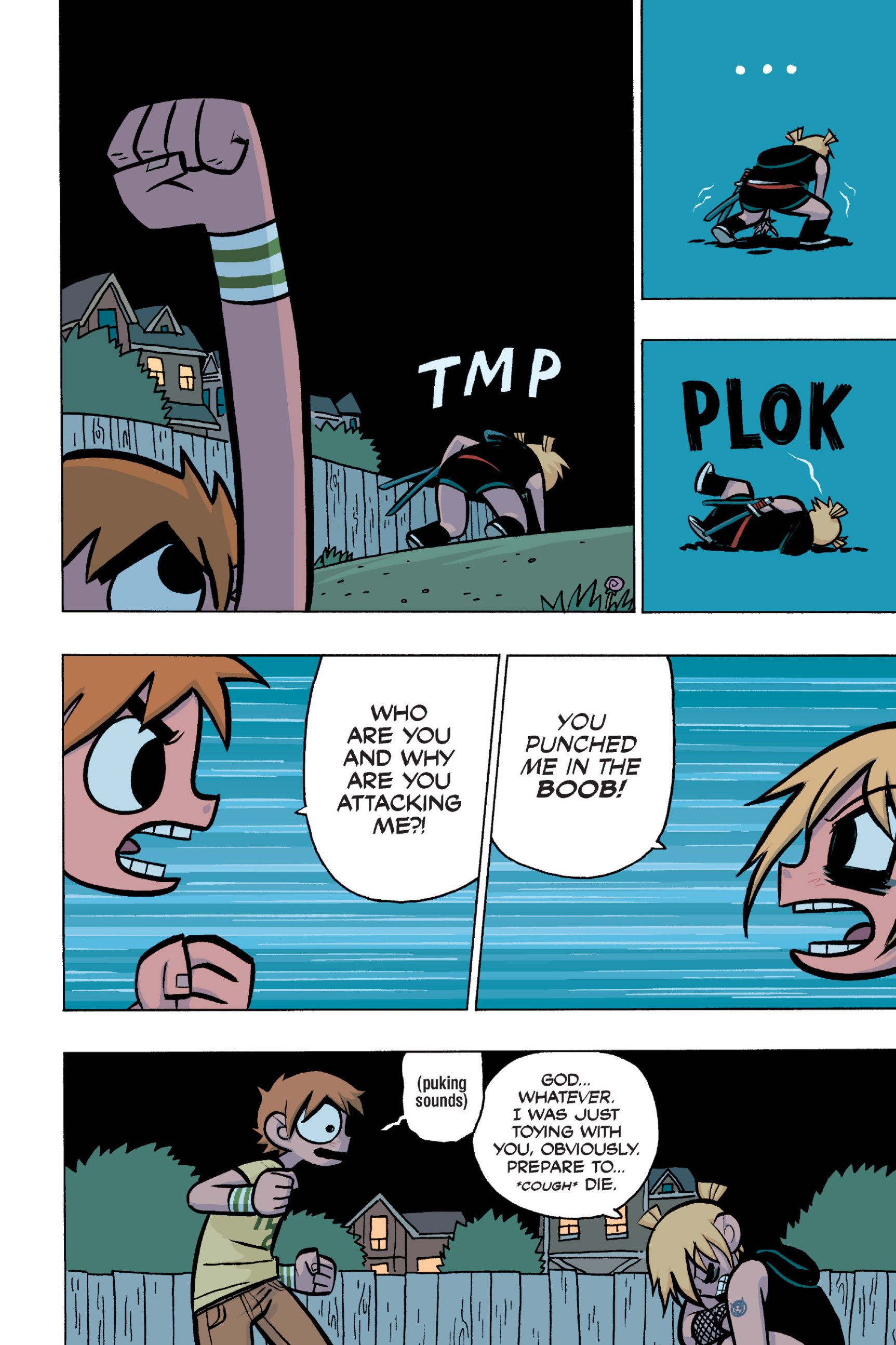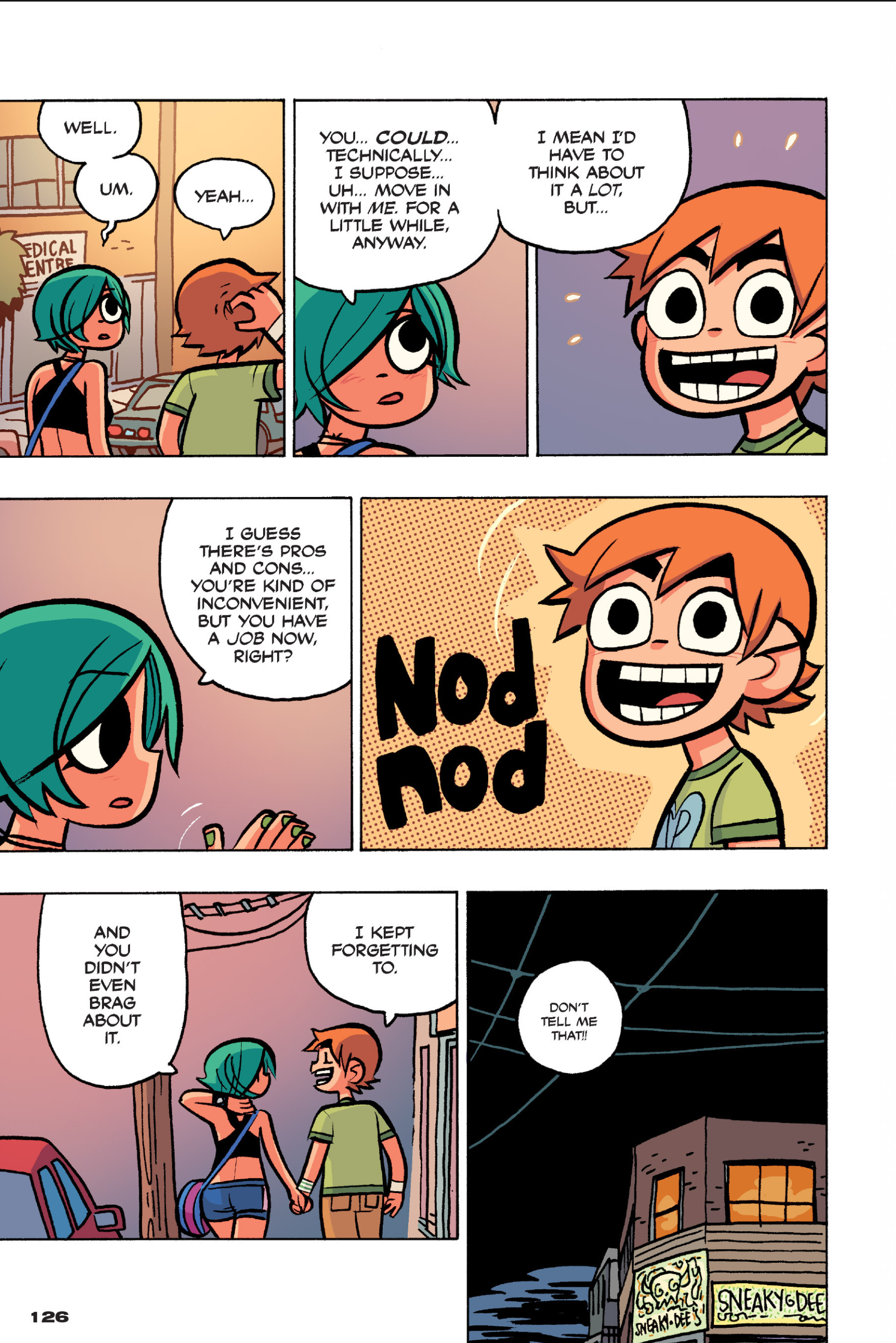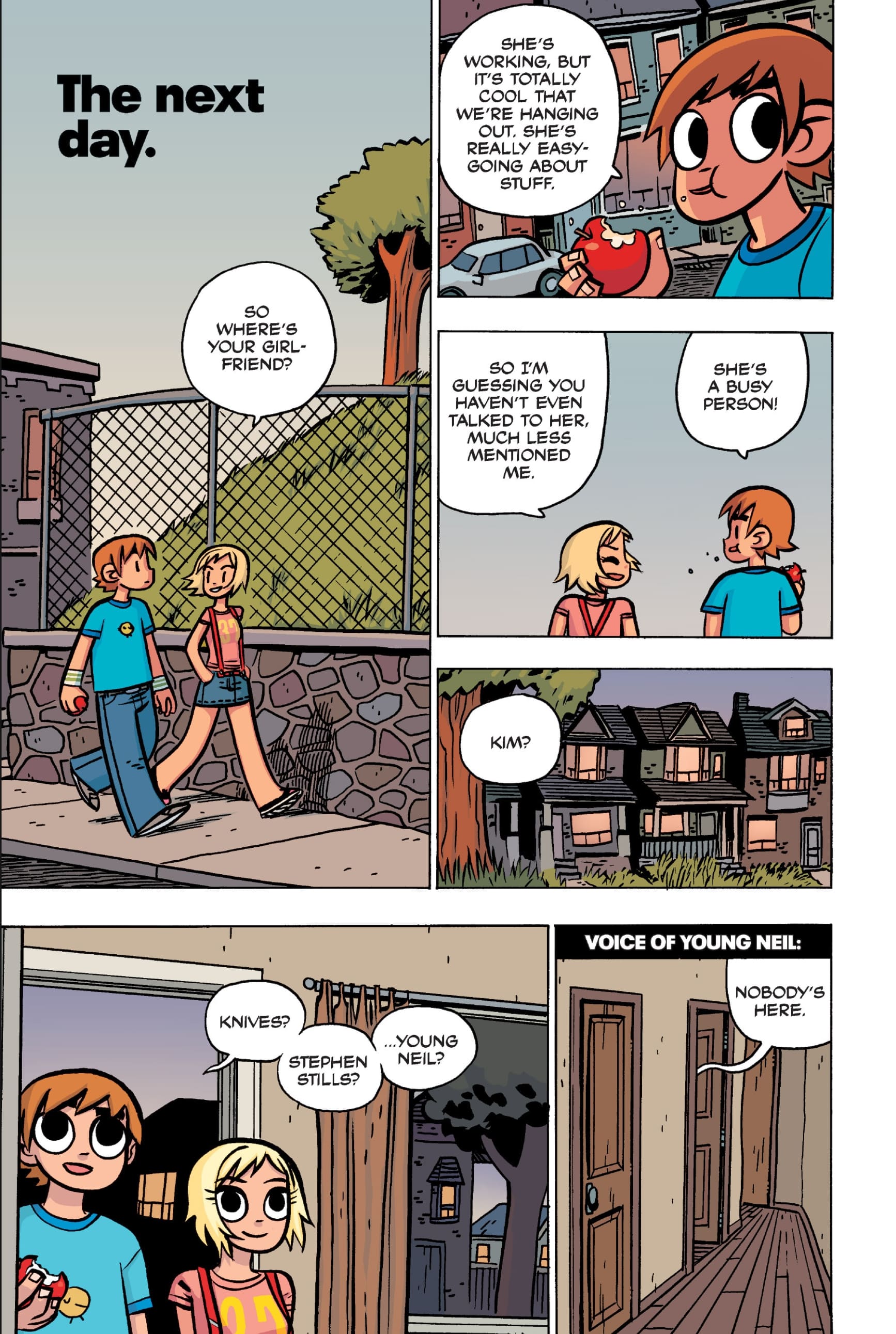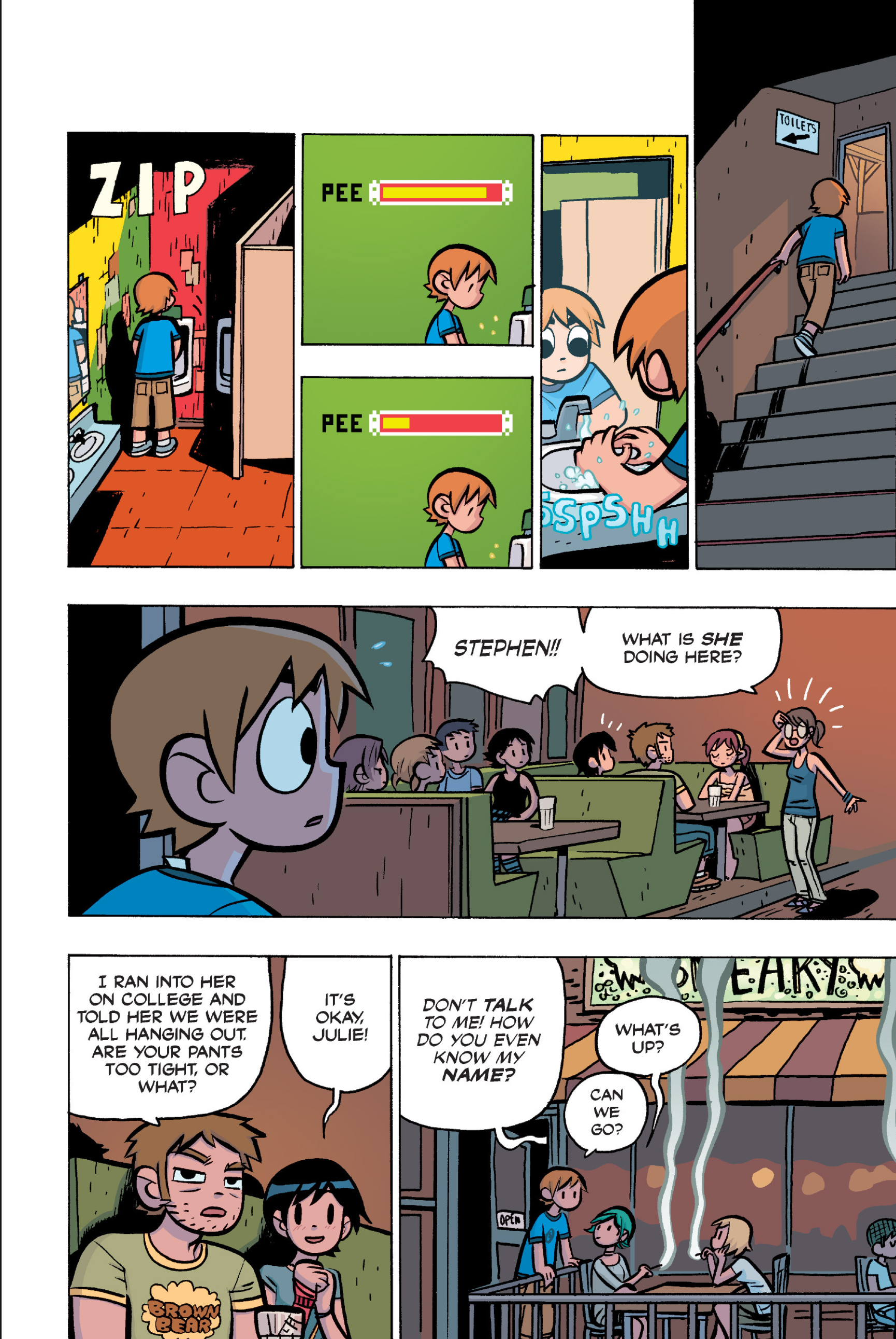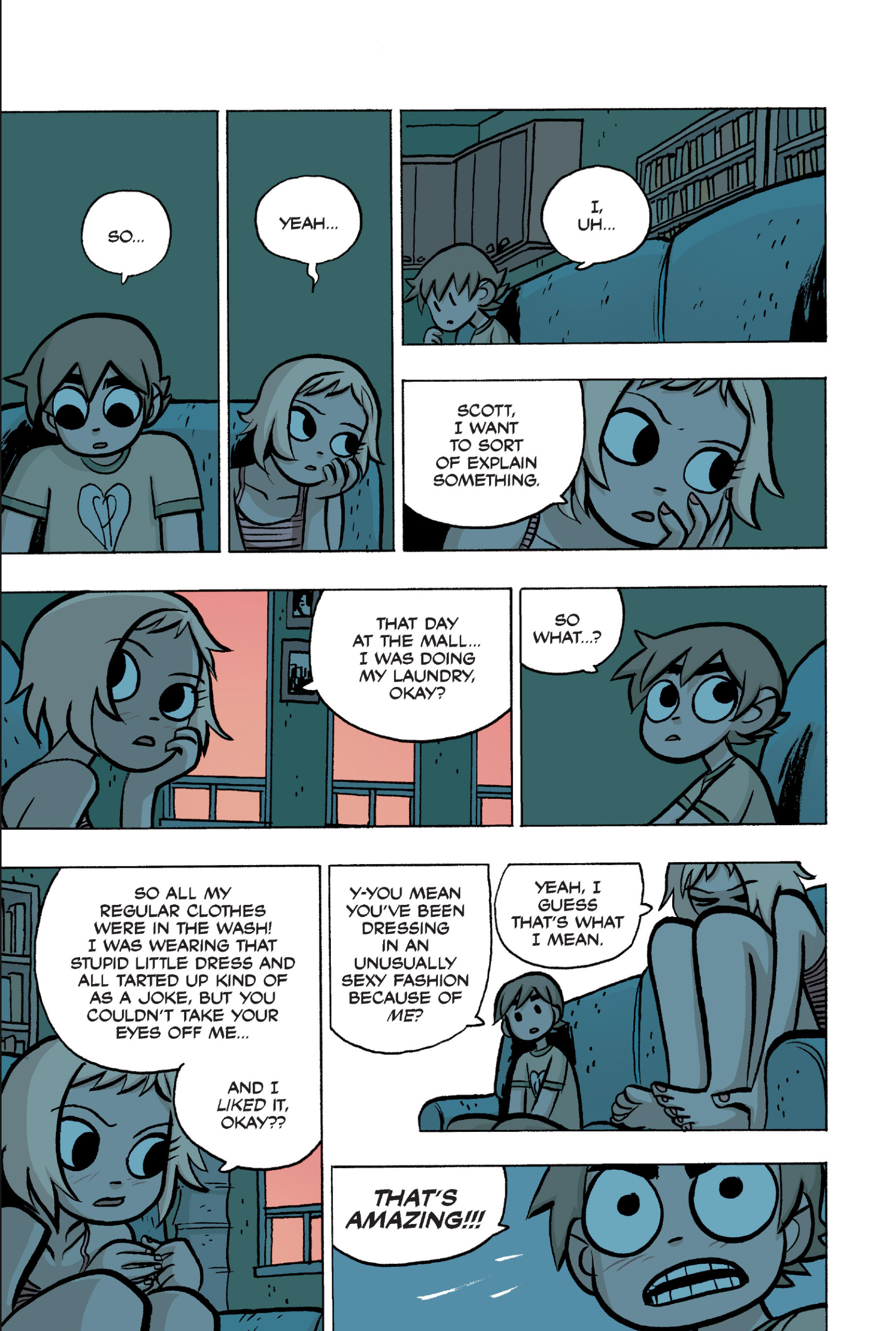 >>152870963I feel like this conversation is just sort of a sample of the entire comic: shallow small talk filled with simple, small lies that are immediately called out upon, as proof that the participants are posers and/or assholes. Why would Ramona even feel the need to lie about this?
