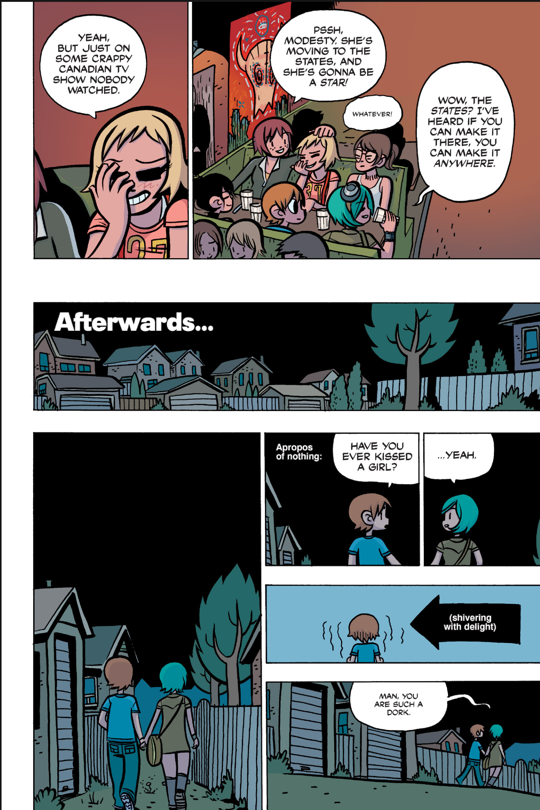 >>152871041In Knives' drunk mind, she's making out with a proxy for Scott here. Wouldn't be surprised if that's what Kim's thinking of too, since she's still harboring something for Scott, deep down.