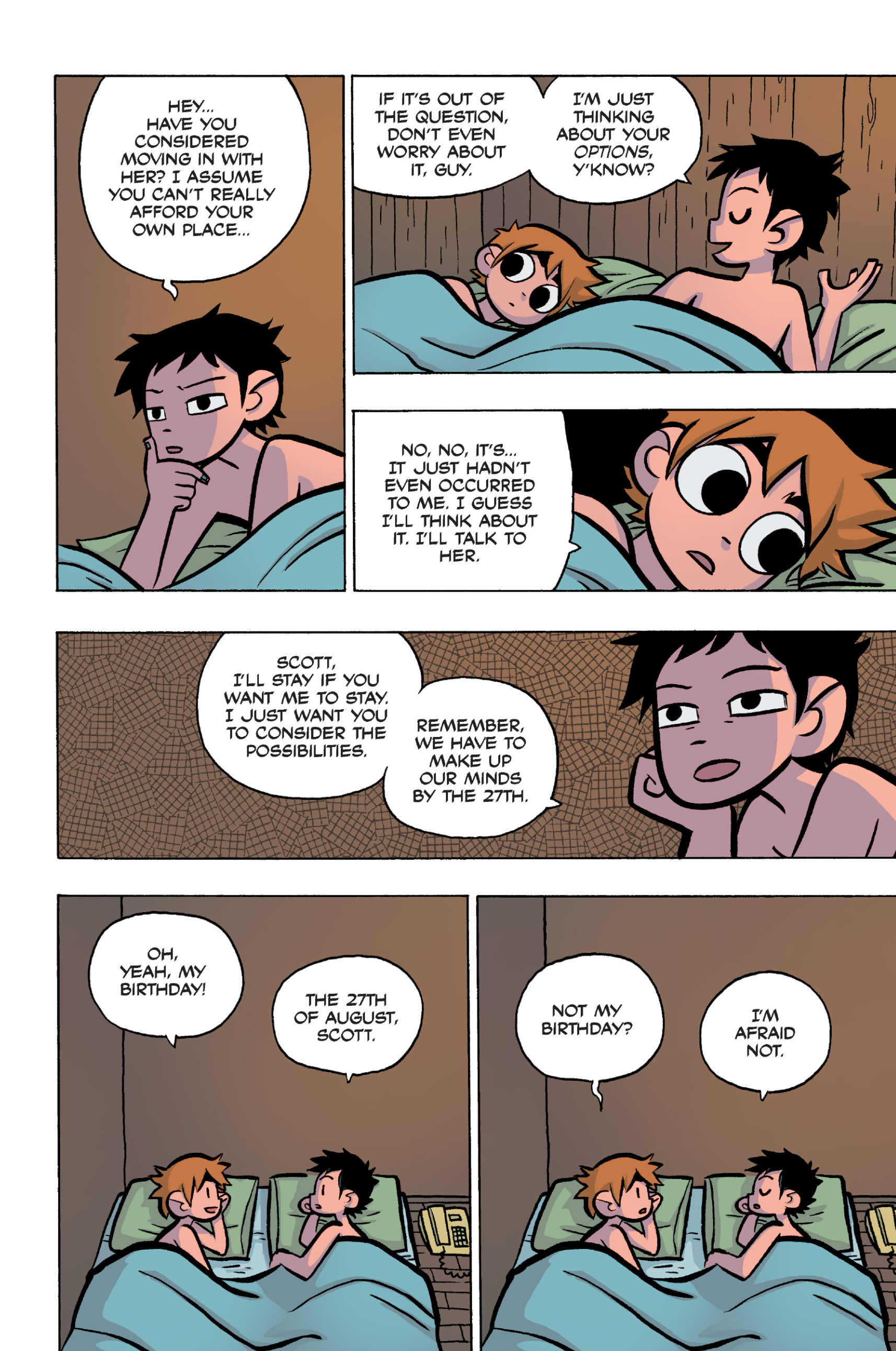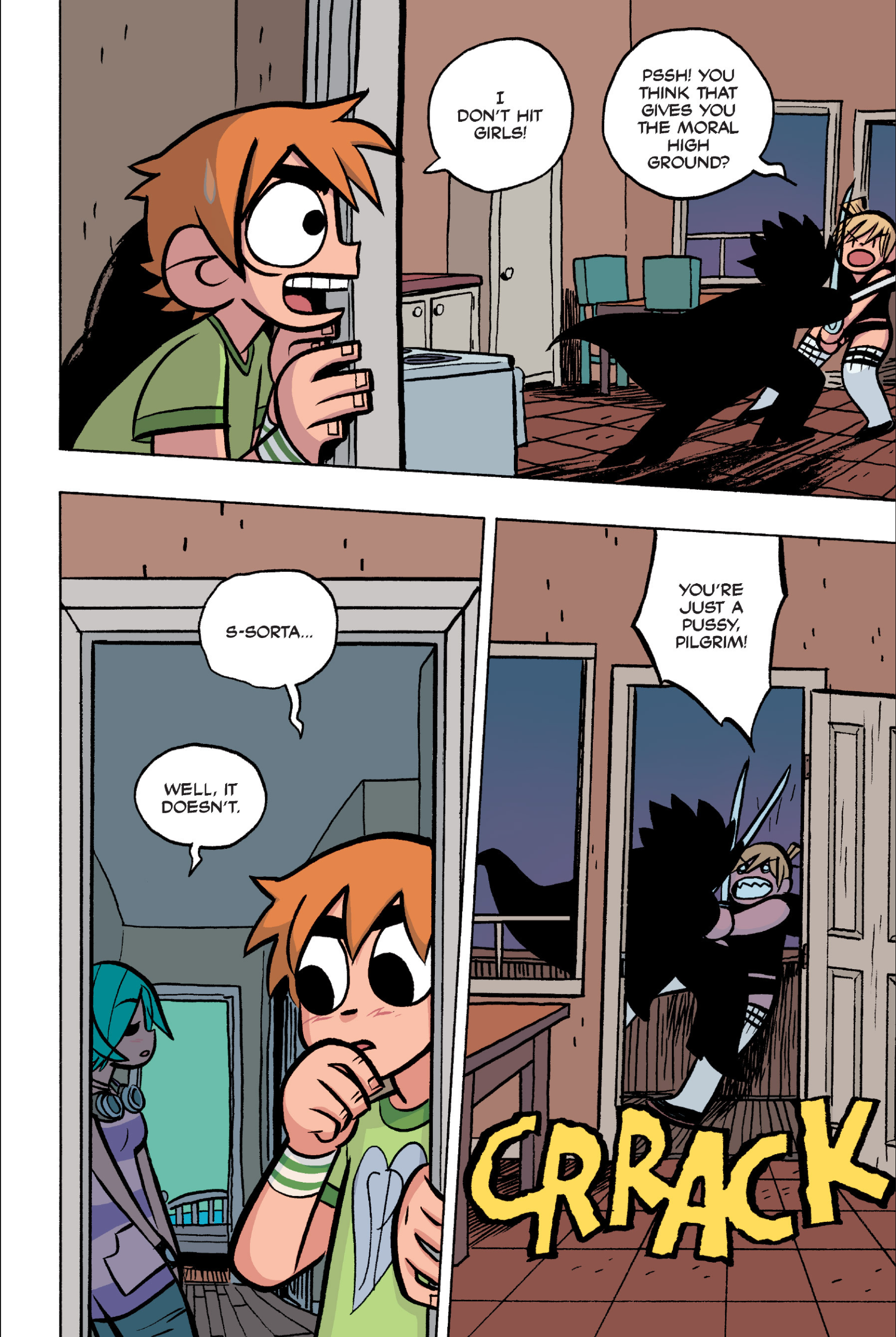 >>152887586>rips up Scott's nude girls poster when he says Kim might need itI think it's a bit of a face-saving move. She can't let anyone, let alone Scott, know she might have some attraction to women. Also, a sexy girl wall poster is more of a horny guy thing, which is definitely not Kim.I think O'Malley has always put Kim and Ramona as a possibility, and shown a general fondness and even attraction between them, that is more noticable in book 5.