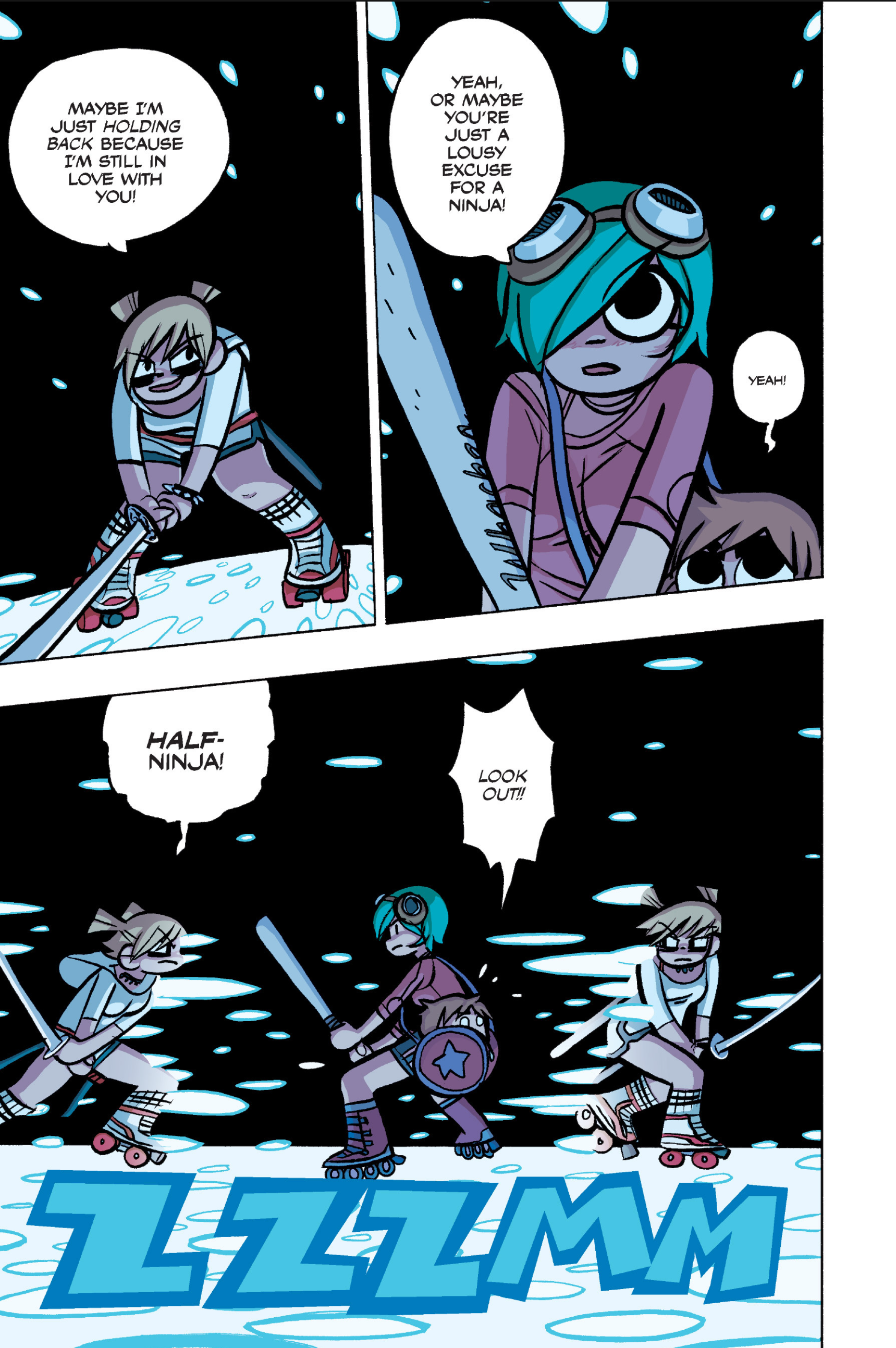 >>152873202>>152873216Well, Roxanne is a half-ninja with a sword, Knives's Dad is chinese swordmaster also with a sword, and even Ramona has a bag of holding with who knows how many weapons.Scott is correct in saying he's at a disadvantage here.