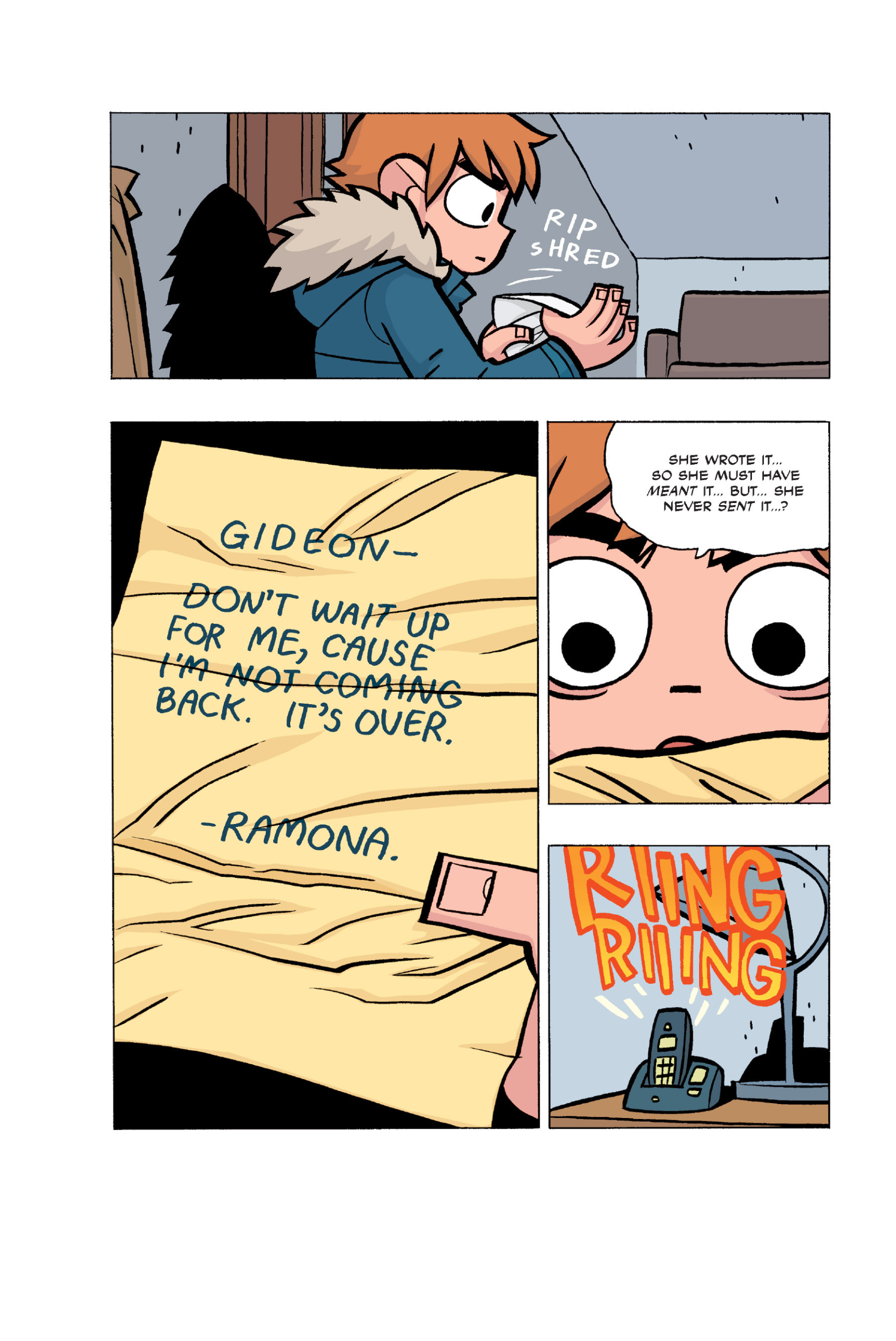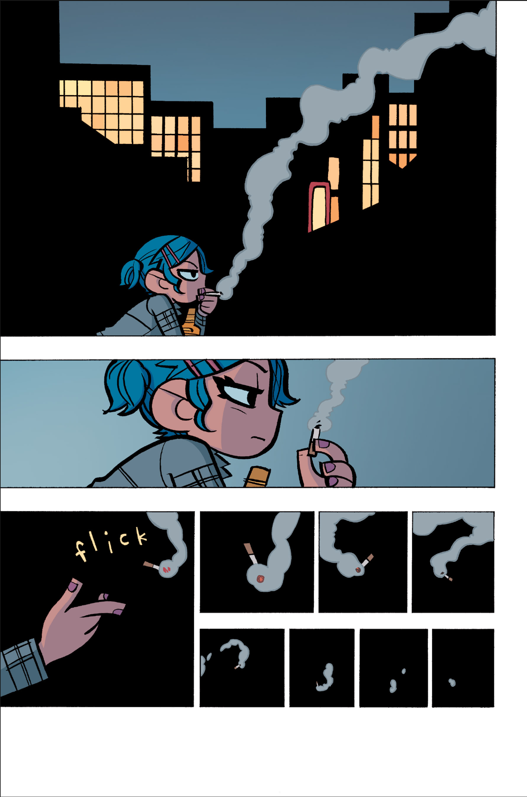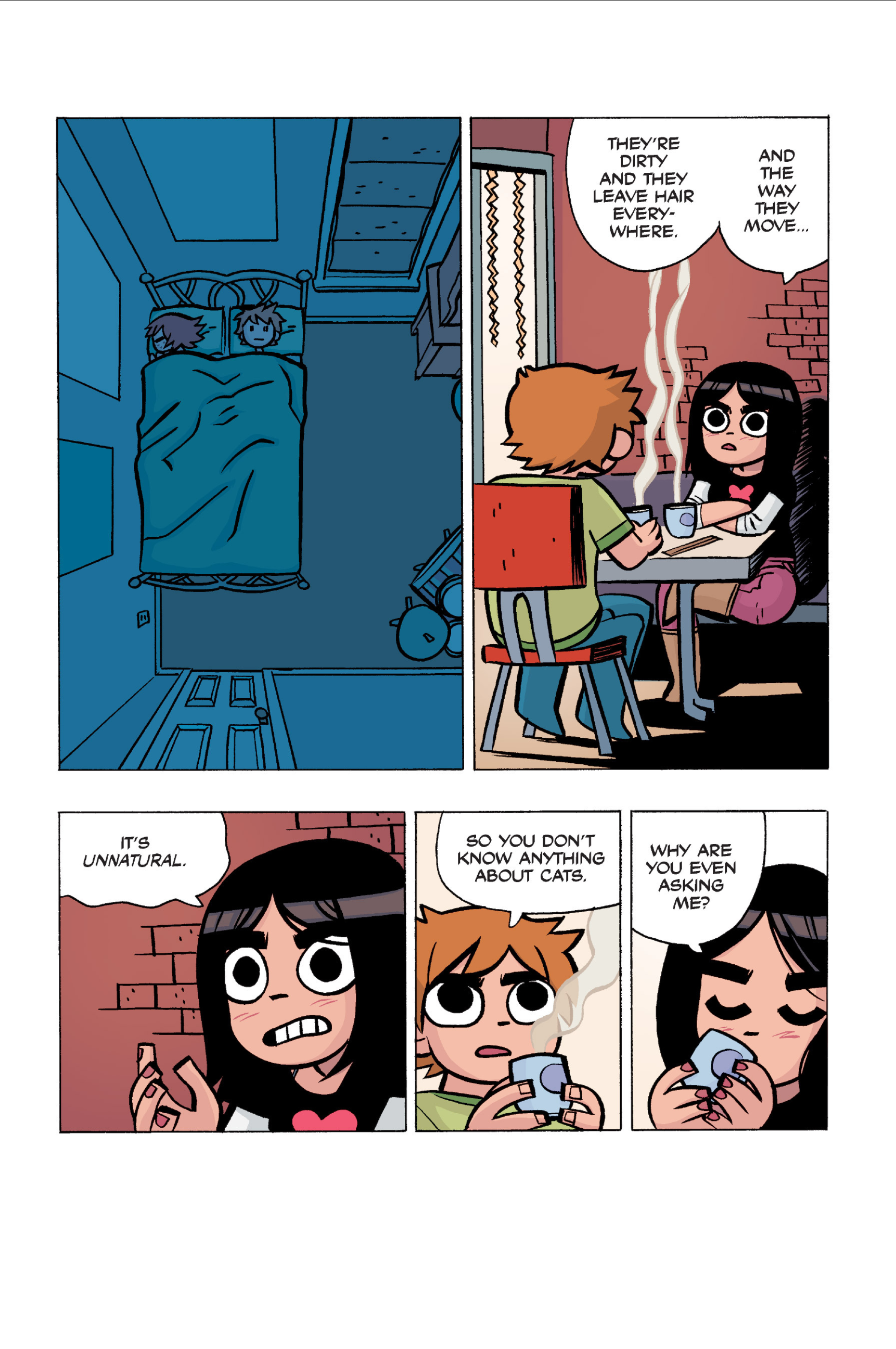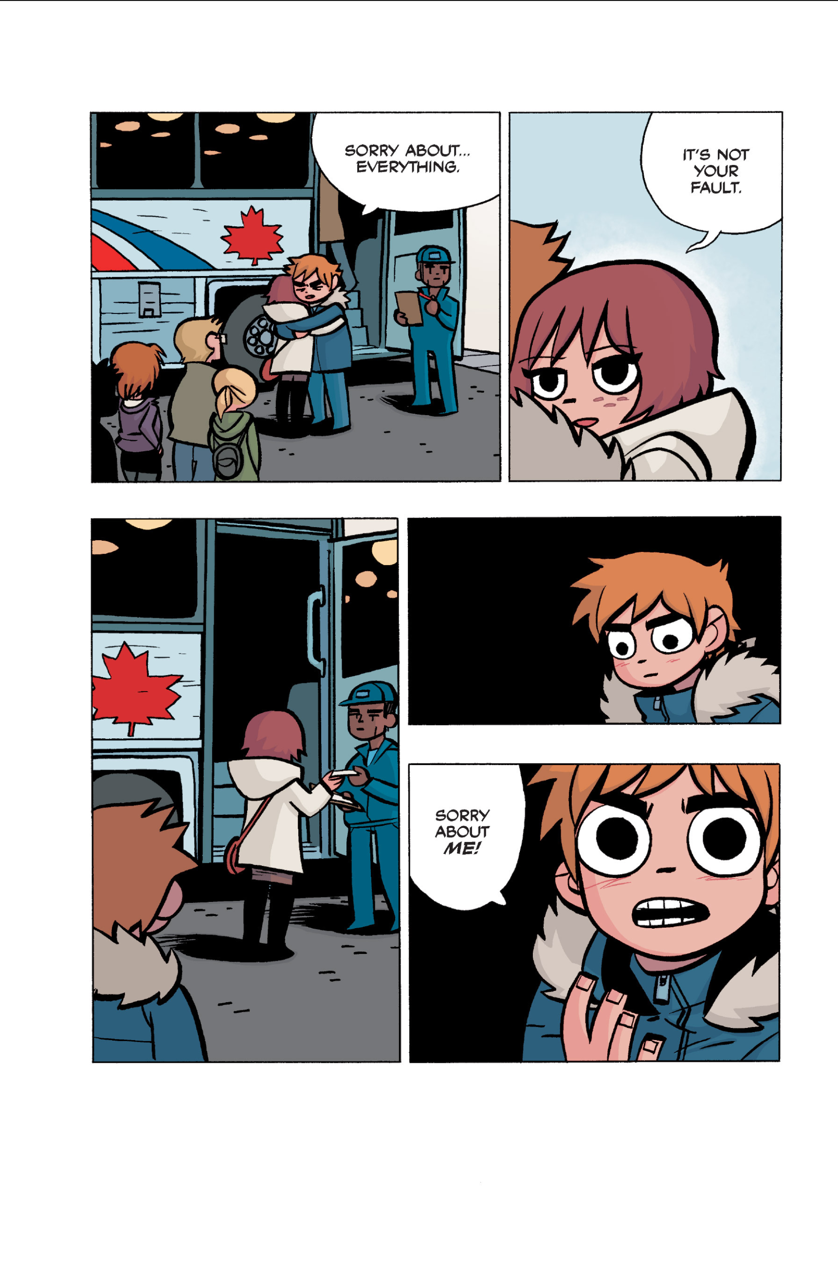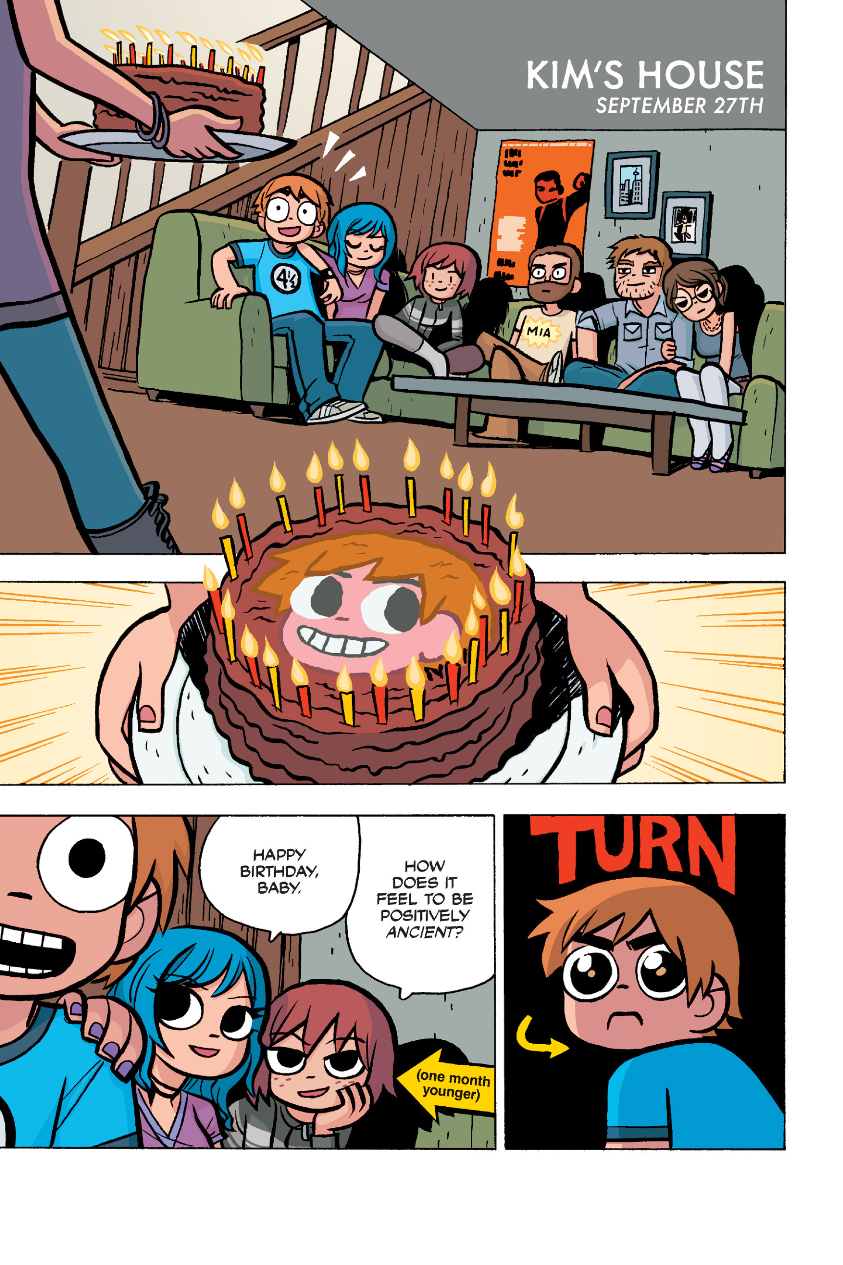The comic never points this out but this is a particularly rough issue for Kim>No one givevs a shit about the band anymore due to their own issues, band left in limbo>Band performance cancelled because Scott is a disaster>Constant fights with her friends/roommates>Gets cheated on and has to live with the girl responsible>Kidnapped by two psycho's, when her ex shows up, has to lie to get him motivated because she's not enough on her own>Said ex then shows up on her doorstep, have to awkwardly share a bed with someone you clearly still have some level of buried affection for underneath all the pain he inflicted on youI don't blame her for moving