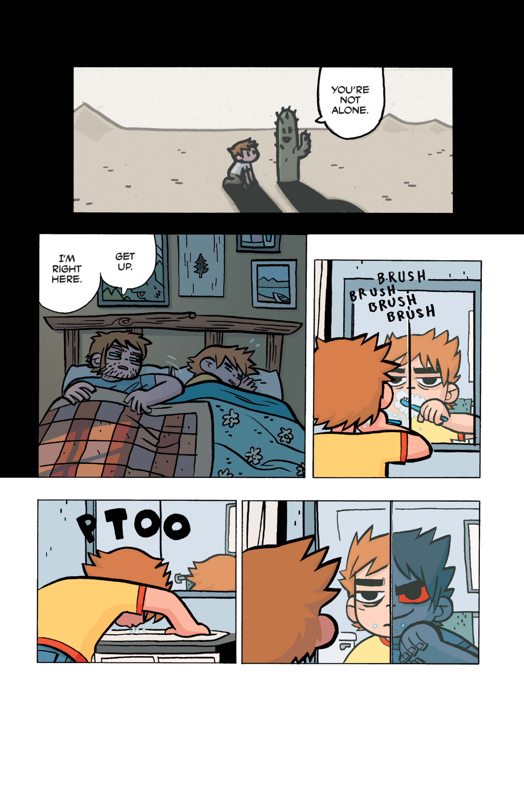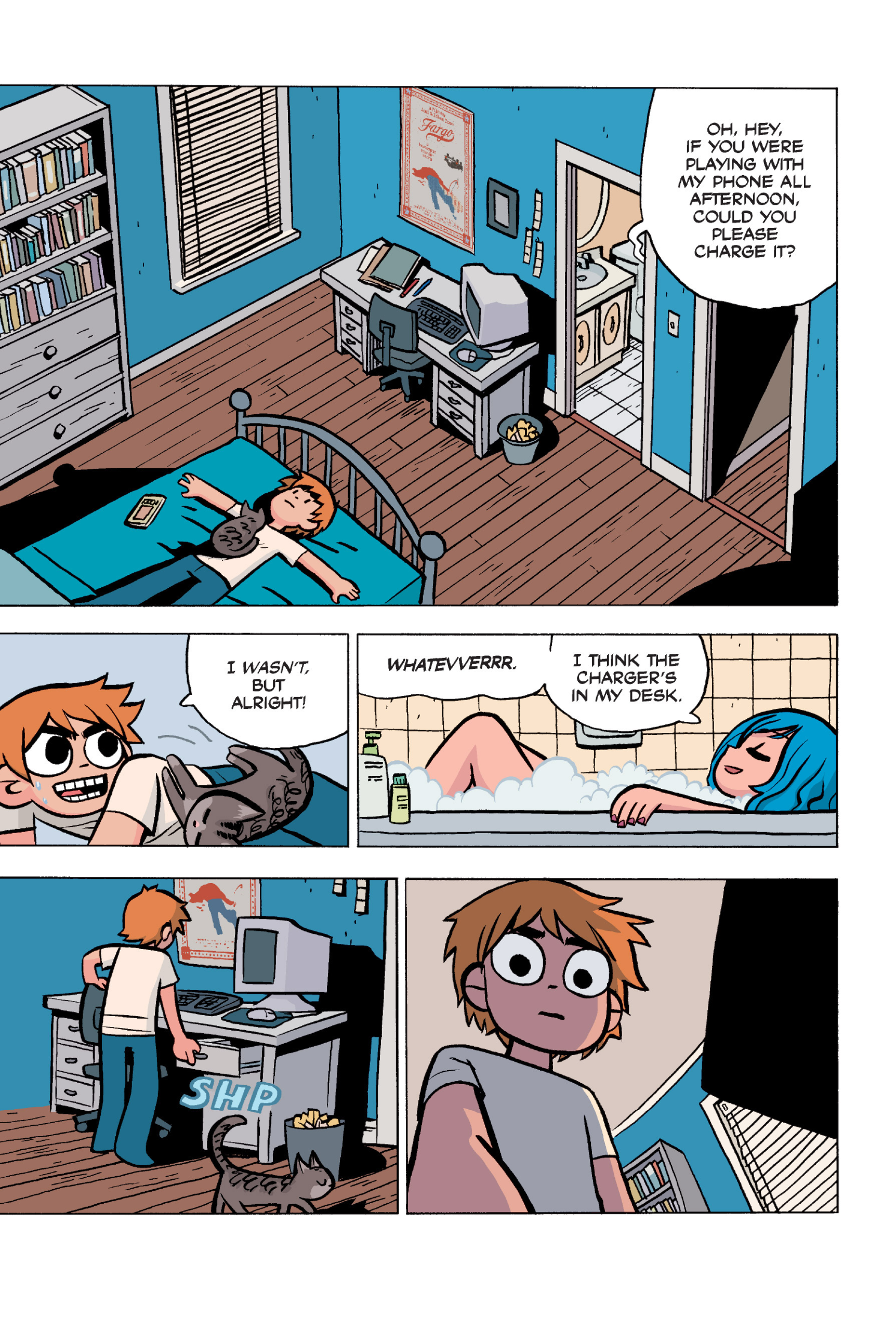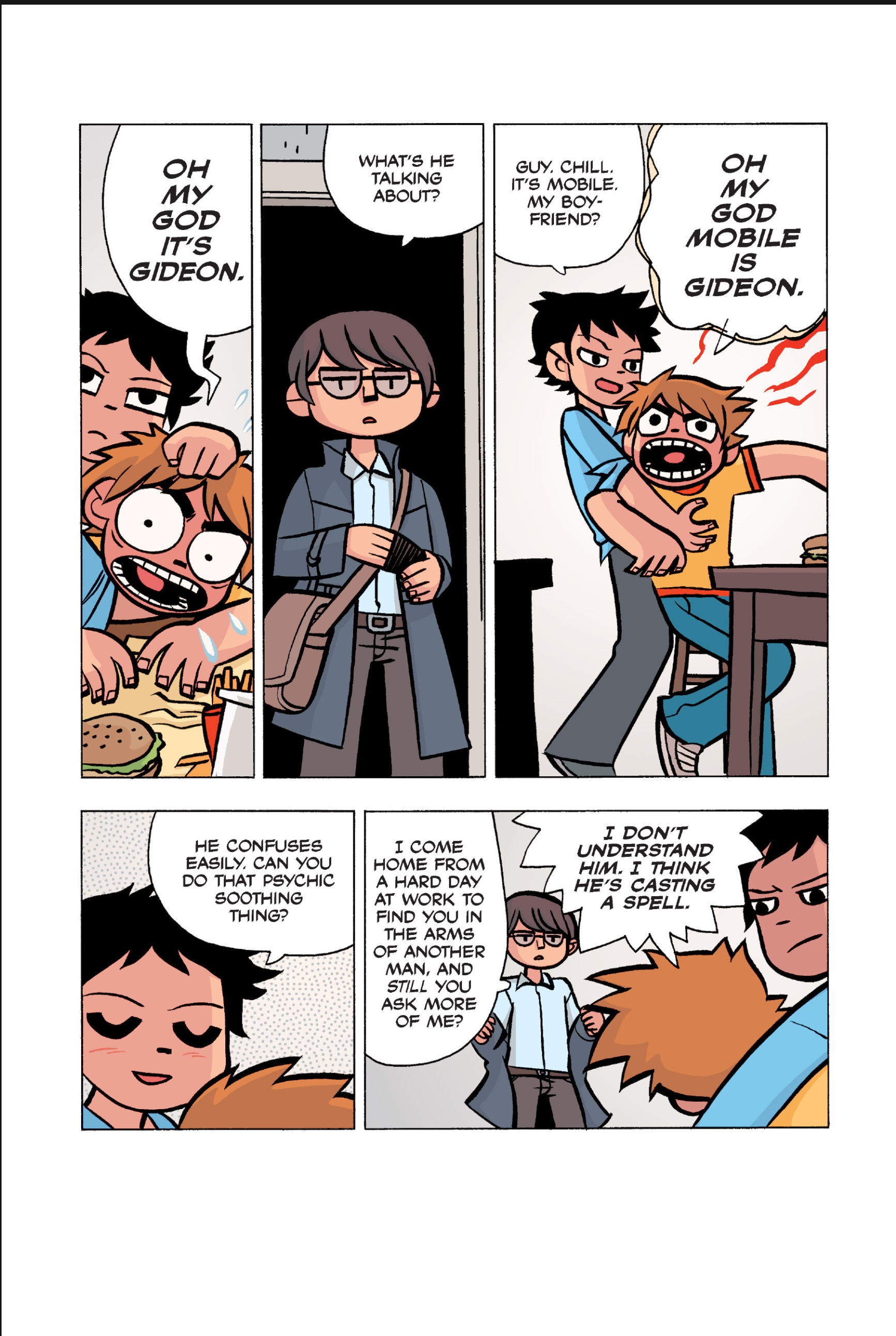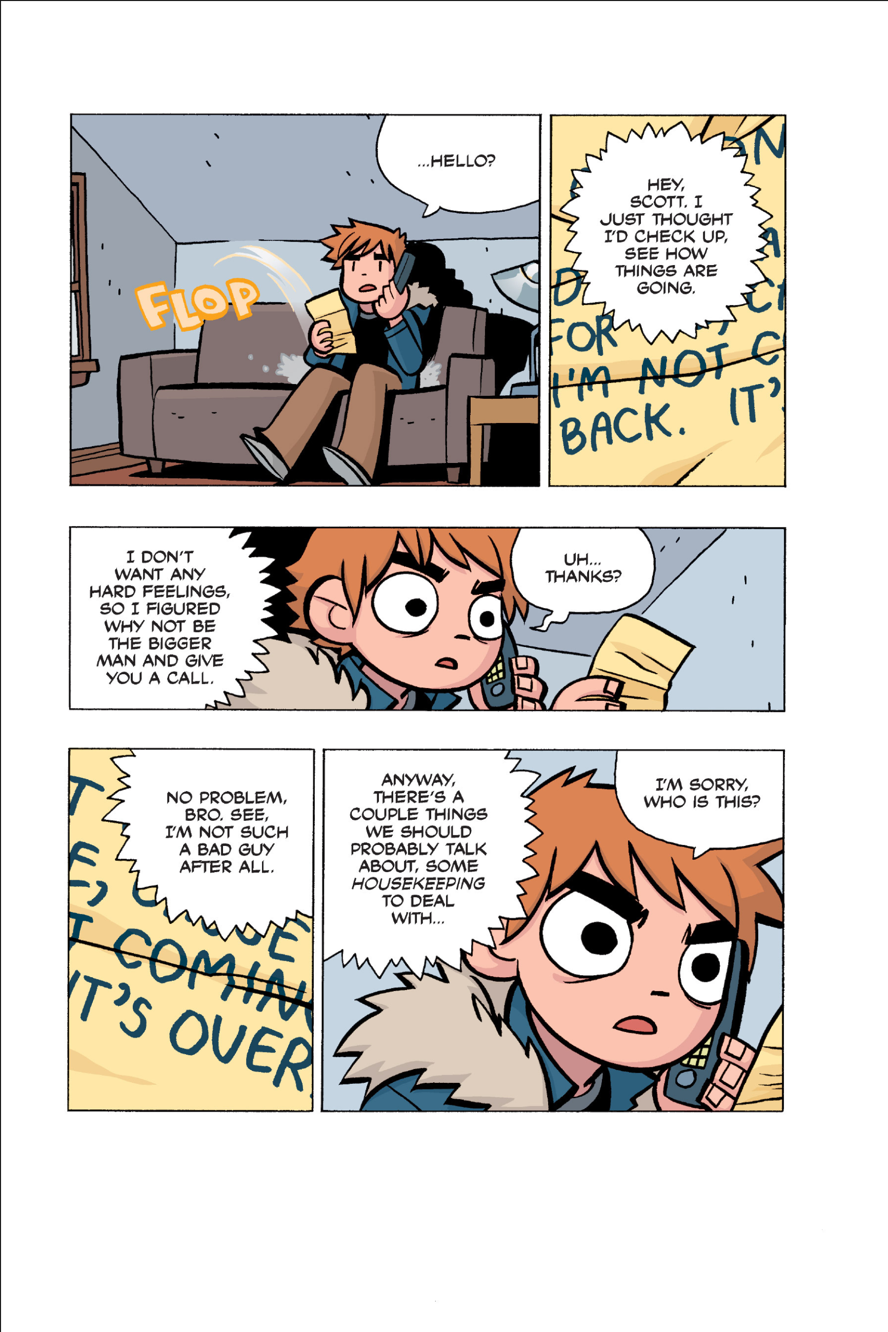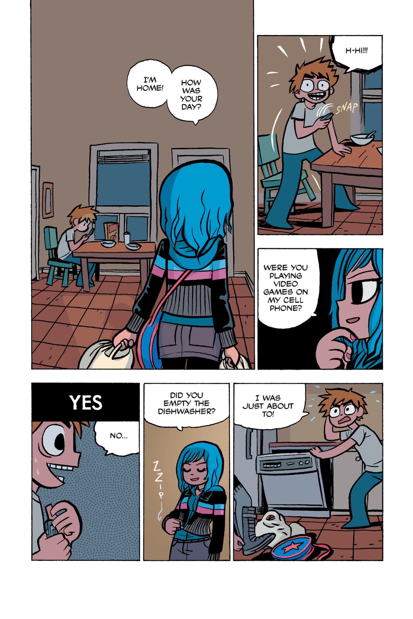 The comic never points this out but this is a particularly rough issue for Kim>No one givevs a shit about the band anymore due to their own issues, band left in limbo>Band performance cancelled because Scott is a disaster>Constant fights with her friends/roommates>Gets cheated on and has to live with the girl responsible>Kidnapped by two psycho's, when her ex shows up, has to lie to get him motivated because she's not enough on her own>Said ex then shows up on her doorstep, have to awkwardly share a bed with someone you clearly still have some level of buried affection for underneath all the pain he inflicted on youI don't blame her for moving