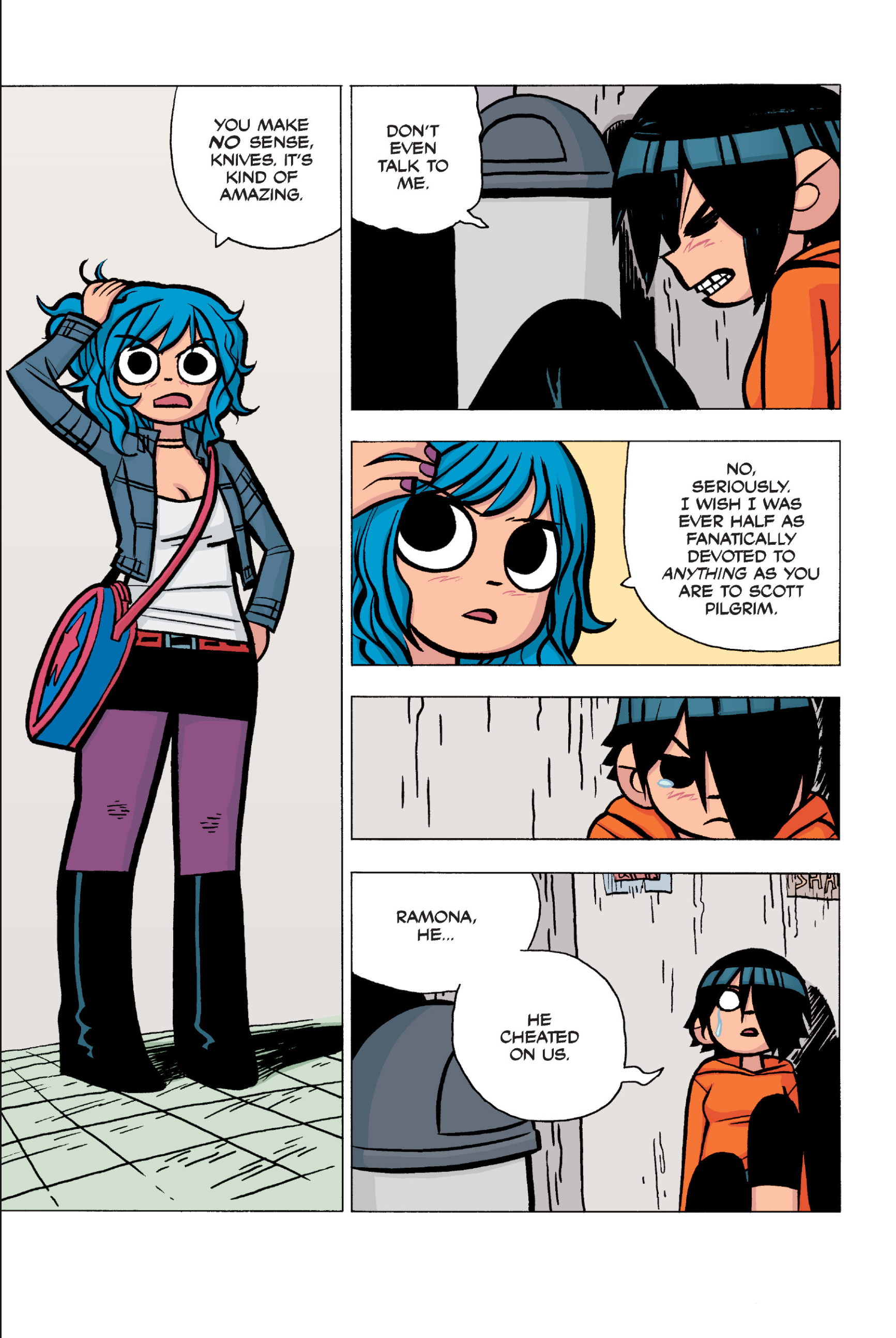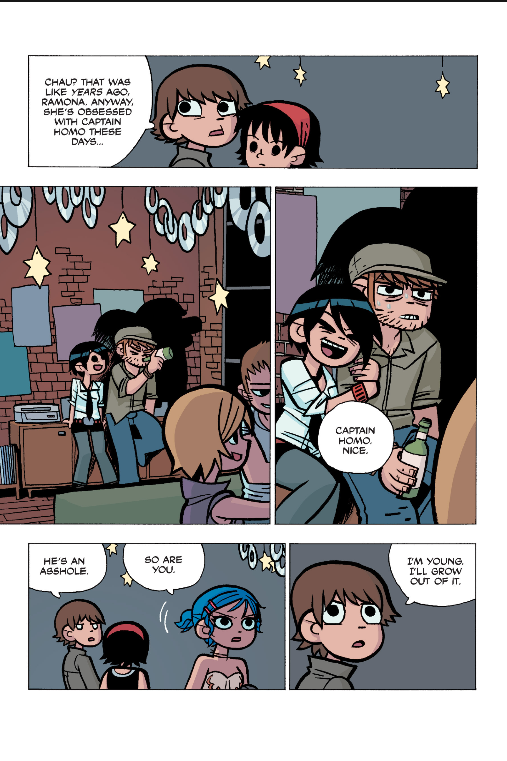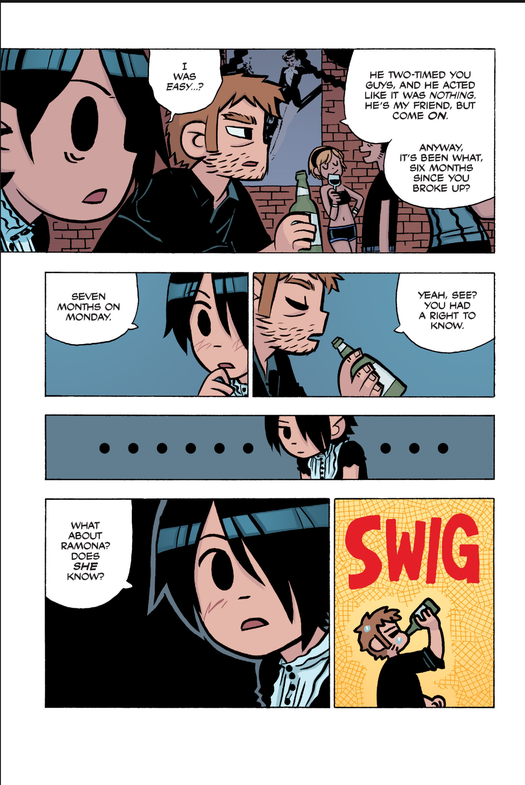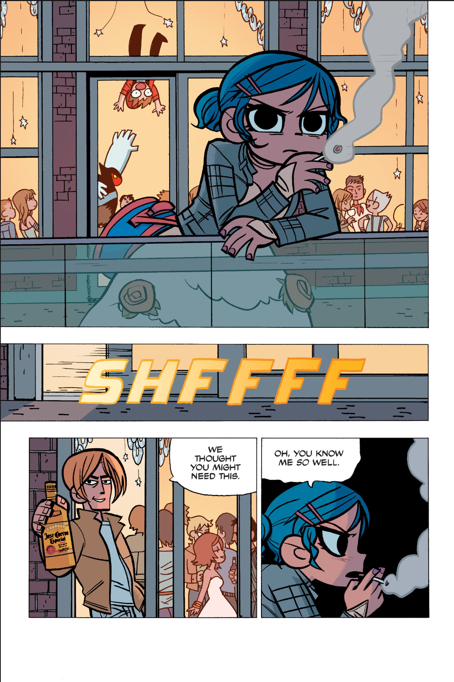 >>152907640I somewhat agree, I think the point I was trying to make was more about a pattern of repeating douche-ish behaviour from Scott over the whole comic. I don't think Scott is a bad friend, he's probably doing what he believes is his best and like you I don't think he is to blame for Kim being miserable.I do however think he should have made more of an effort at that precise moment to make sure Kim was OK, maybe walk her home or to a friend's at least, if he had brought her to Ramona's she would have understood since this is all kinda her fault in the first place. But yeah, even IRL we all sometimes get caught up in our own bullshit to notice that people we love are going through a bad time. Imo it's a bit difficult to judge Scott because the story always teeters between wacky comic logic and real-life 20s angst situations.