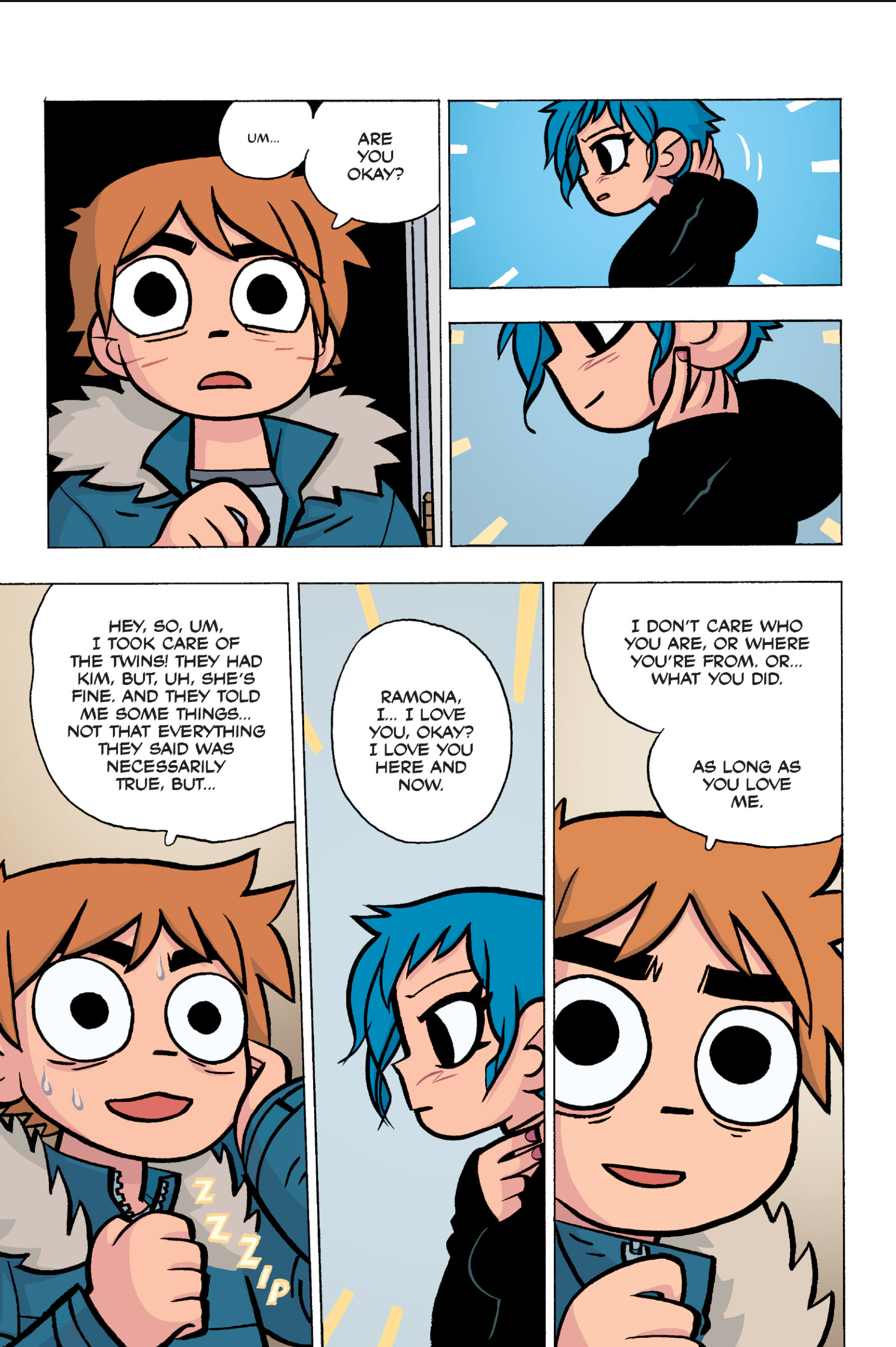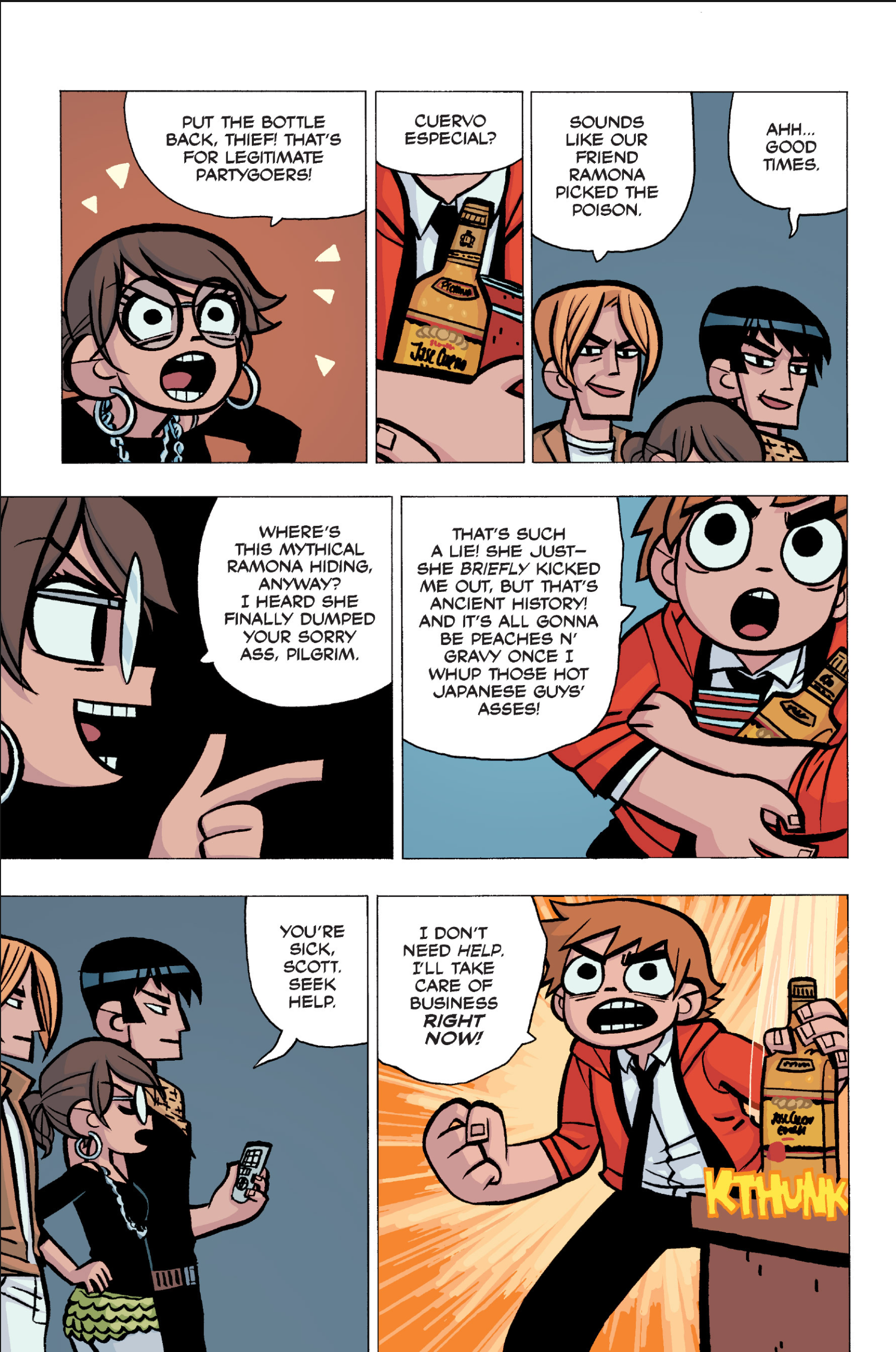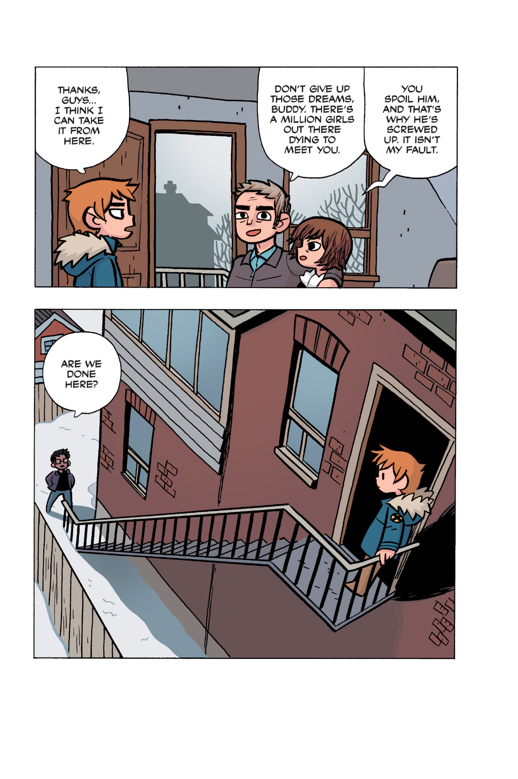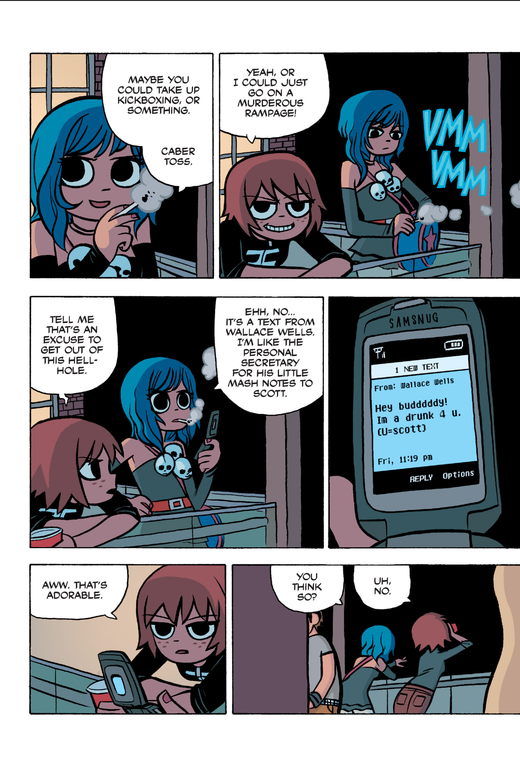 >>152907640I somewhat agree, I think the point I was trying to make was more about a pattern of repeating douche-ish behaviour from Scott over the whole comic. I don't think Scott is a bad friend, he's probably doing what he believes is his best and like you I don't think he is to blame for Kim being miserable.I do however think he should have made more of an effort at that precise moment to make sure Kim was OK, maybe walk her home or to a friend's at least, if he had brought her to Ramona's she would have understood since this is all kinda her fault in the first place. But yeah, even IRL we all sometimes get caught up in our own bullshit to notice that people we love are going through a bad time. Imo it's a bit difficult to judge Scott because the story always teeters between wacky comic logic and real-life 20s angst situations.