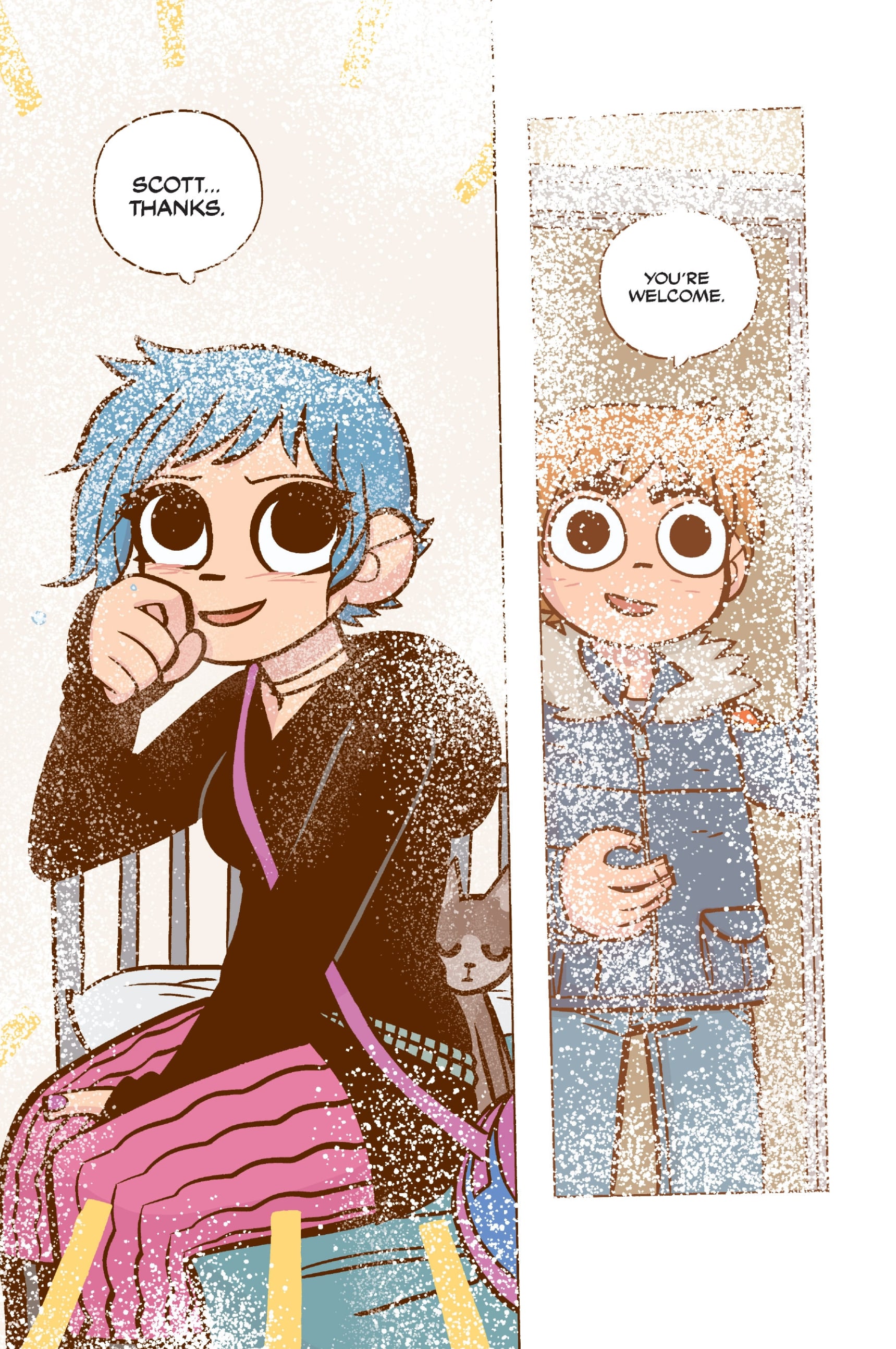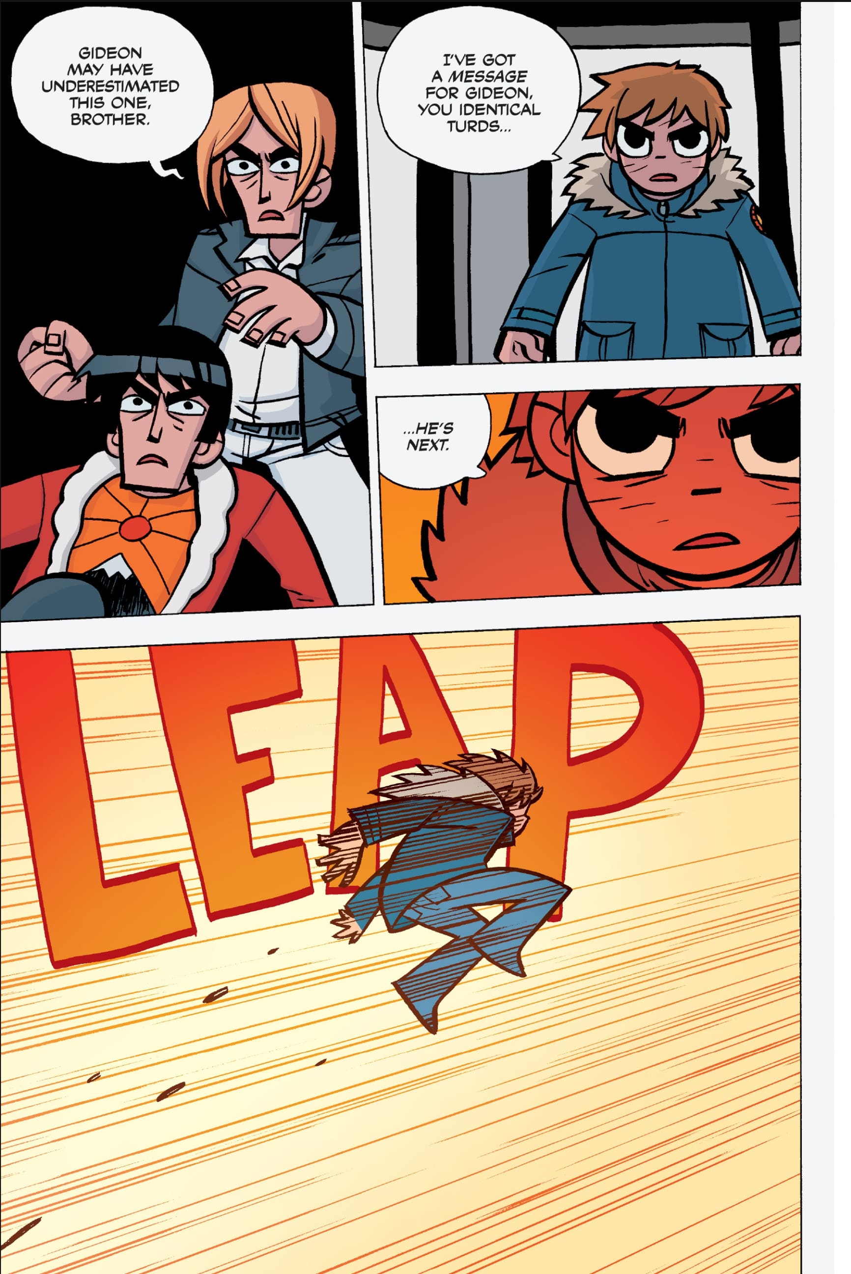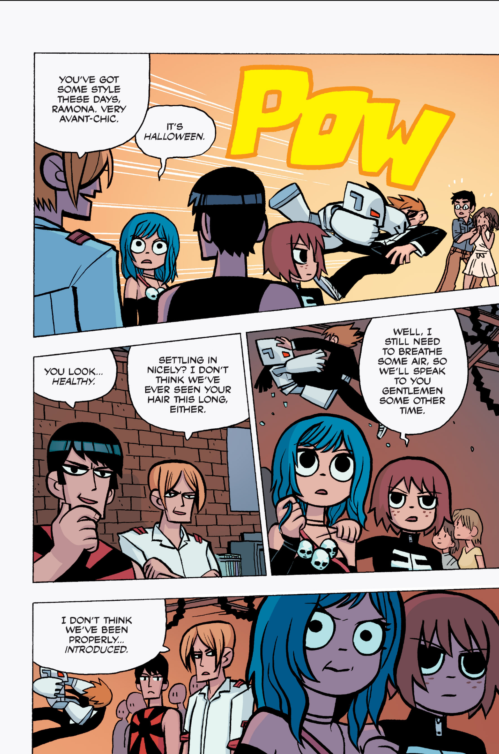 The Scott Pilgrim storytime is almost finished now with volume 5, Scott Pilgrim vs the Universe.Scott Pilgrim v1: Scott Pilgrim's Precious Little Life >>152769477Scott Pilgrim v2: Scott Pilgrim vs the World >>152823720Scott Pilgrim v3: Scott Pilgrim and the Infinite Sadness >>152836247Scott Pilgrim v4: Scott Pilgrim Gets it Together >>152870853