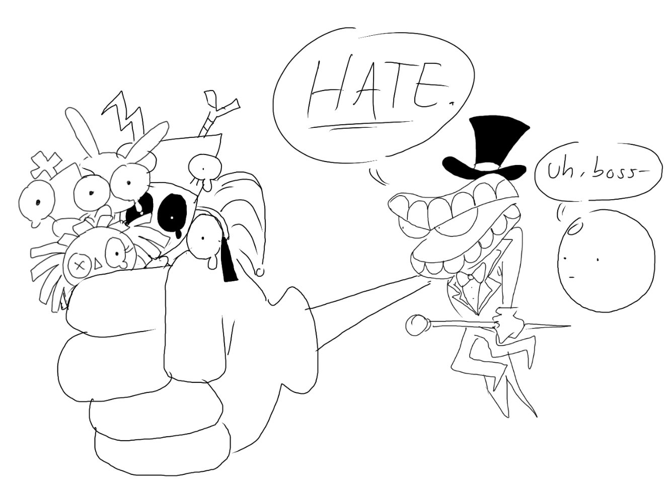 Caine's villain arc was so rushed. not only did it go from 1-100 in a two minute scene, but we hardly got any time with him as a villain before he got fucking deleted. I understand that it was hinted at that Caine was reaching a breaking point, and I know he's the main antagonist. But isn't he supposed to be "not at all malicious he just doesn't understand."? Mabye I'm dumb but Caine always seemed to love humans, and just not understand them. no matter how hard he tried he could never understand them. But now he just hates them. his arc just felt so rushed for the plot, and so in the span of two minutes he goes from "I'm trying my best, please don't abandon me" to "I am god, and your savior. I'm just gonna torture you for fun."