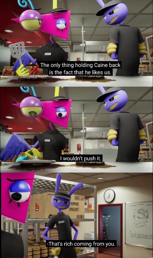 >>152906230in fairness, Caine wasn't losing his shit until now, and Pomni wasn't even informed that Kinger had highly-useful inside knowledge of the circus until the previous episode.