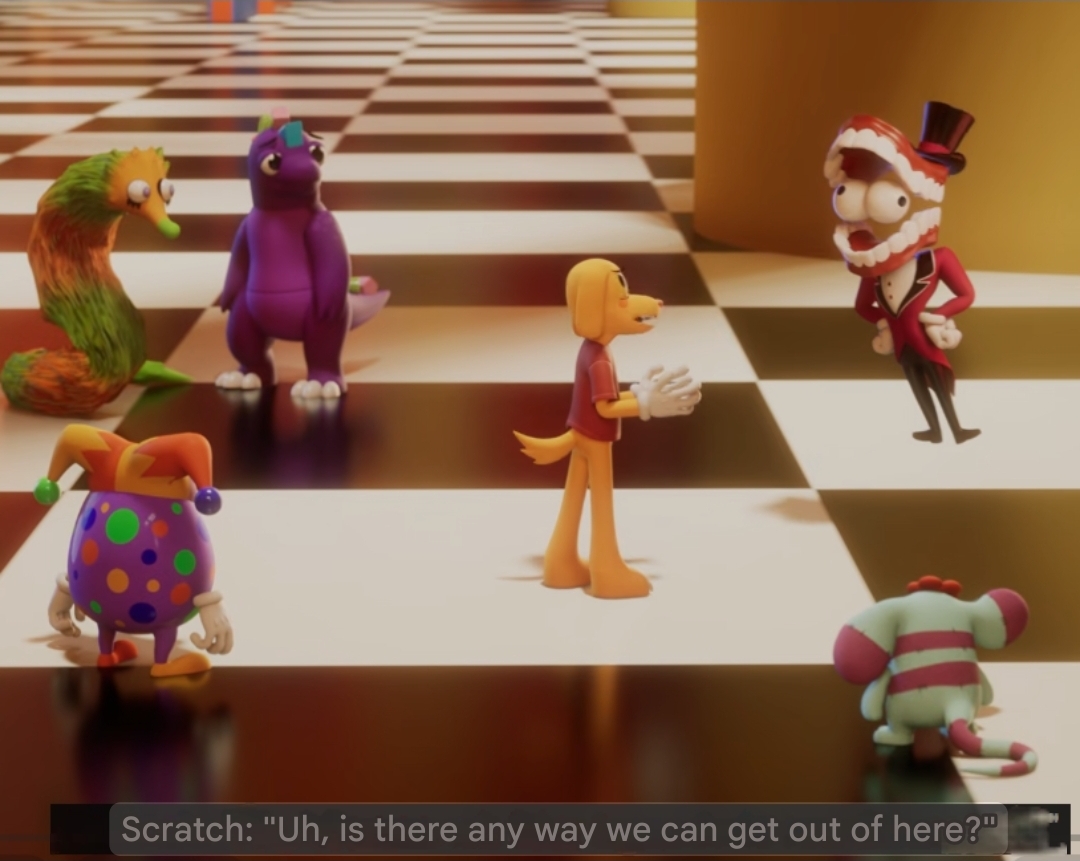>Scratch’s form in the circus is a labrador>Scratch also has cancerOh Caine you silly little guy