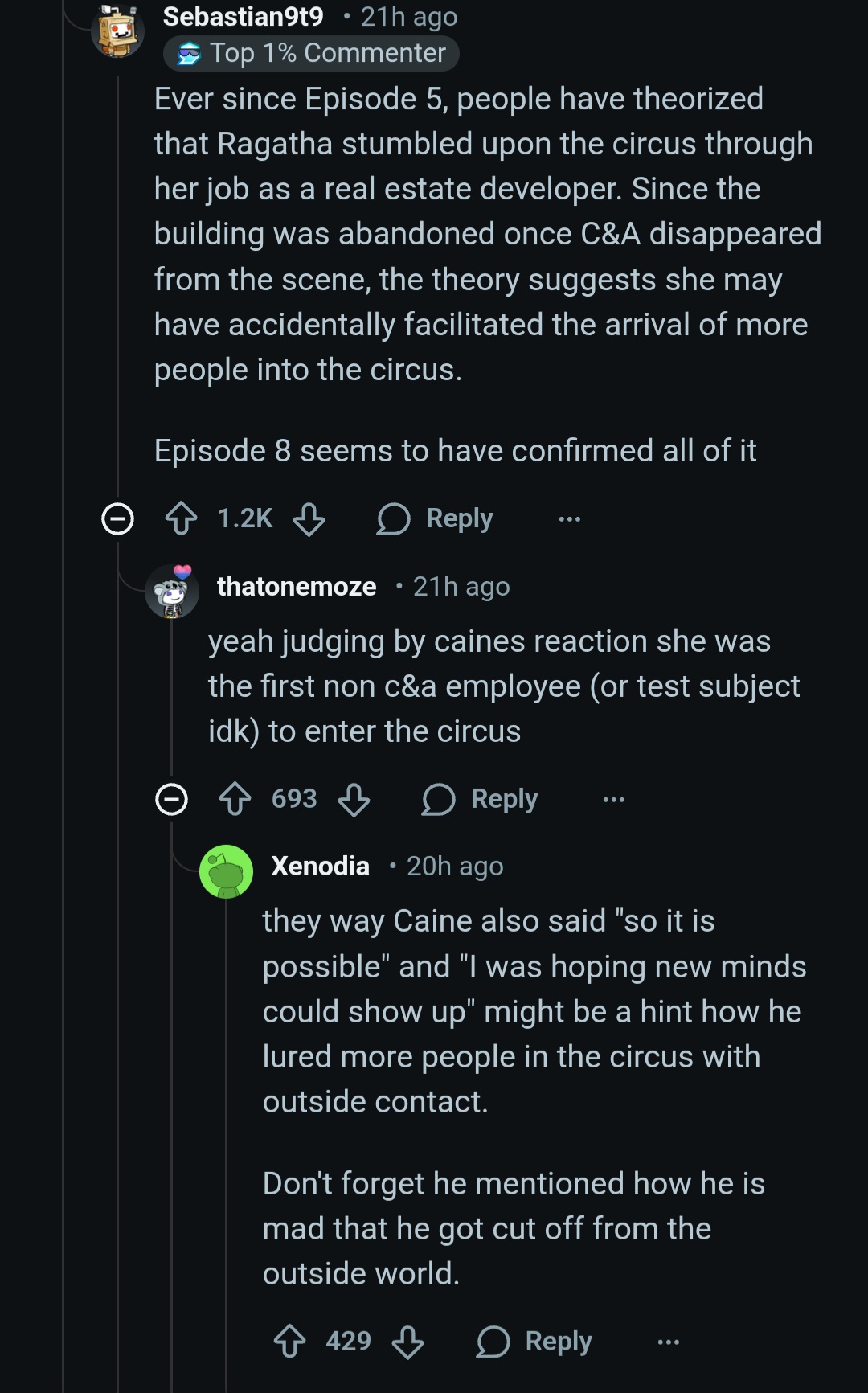 So since SOMA theory is basically confirmed, who do you think would take finding out they're an AI homunculus clone the worst? For that matter, if Pomni being a remnant of Abel or a third C&A AI pans out, how do you see her taking finding out her memories of the real world are completely fake and not even copied from a human?