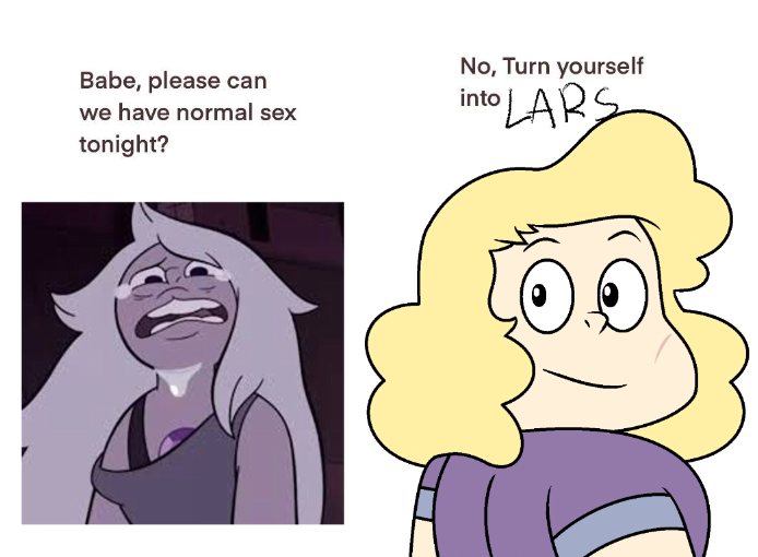 i like how it’s common fannon knowledge that amethyst will suck the meat off a cock and turn balls into raisins.