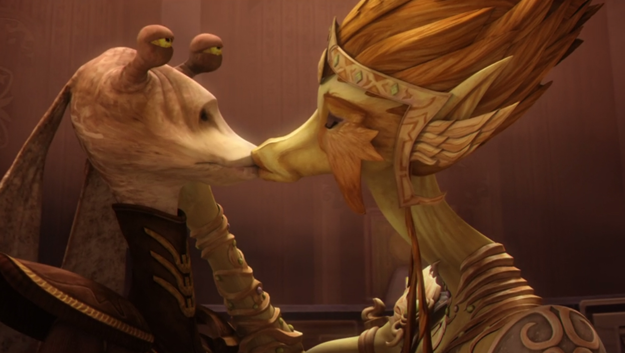>>152916156>Sure, TCW had some hot designs for sure, but the actual topic of sex or any kind of intimacy is avoided like the plague.What are you talking about? TCW had A LOT of relationships and a lot of sexual implications. Anakin and Padme, Obi-Wan and Satine, Ahsoka and Lux, Ahsoka/Lux/Steela love triangle, Padme and Clovis, Ventress sexually flirting with Obi-Wan, Ventress and Vos, Aurra Sing french kissing Hondo after implying that they used to fuck, Ziro and Sy Snootles, even Jar-Jar got a girlfriend. In the original plans for Season 7, Ahsoka was also supposed to get a new boyfriend on Coruscant, who was replaced with the retarded mexican drug mule sisters in the Disney release. There's probably more that I am forgetting. Compare it to Rebels that only had Kanan and Hera, a relationship that was a complete non-factor and entirely hidden throughout the show until it was time for Kanan to an hero himself and they reveled that he had that green haired abomination of a son with her out of nowhere. That's basically it. Bad Batch had nothing, some pathetic, tame attempt at Wanda Sykes trying to talk to Mr. Autismo Tech. Maul will have nothing. "Ahsoka" had nothing - in fact, they doubled down on Ezra and Sabine being "like brother and sister". It's pathetic. It's all found family gay shit from Rebels and beyond. Modern Star Wars wishes its characters had as much going on in their lives as the characters in Clone Wars did.On another note, Star Wars discourse has become completely and utterly unbearable. No one knows what they are talking about anymore. This franchise is dead and the fanbase is slowly decomposing and wallowing in its own rotten remains.