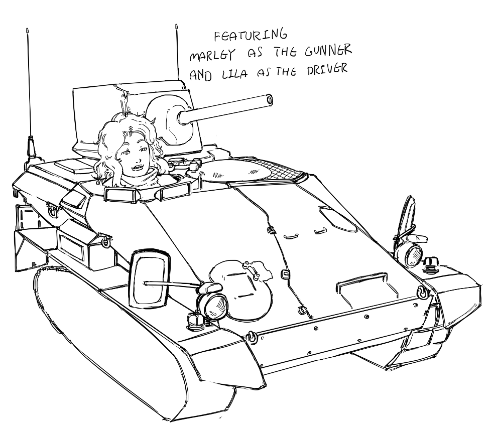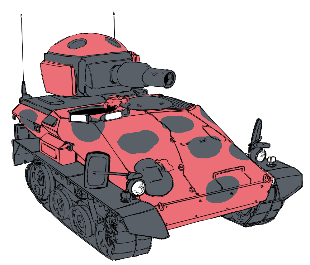 >>152917529For comparison, here's the very first iteration of the bugtank, an M3 Stuart was used as reference but the end result was heavily modified.>>152918020Haven't drawn them in a while lol.