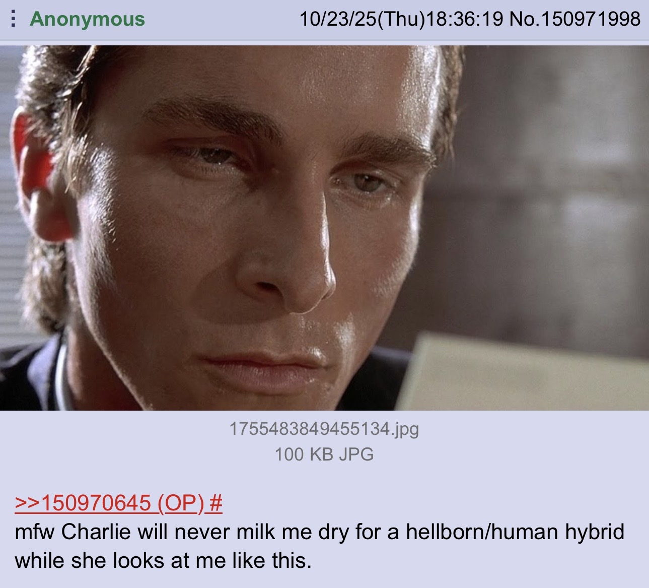 >AND WHY ARE YOUR PANTIES SO GOD DAMN WET YOU SICK SICK FUCK