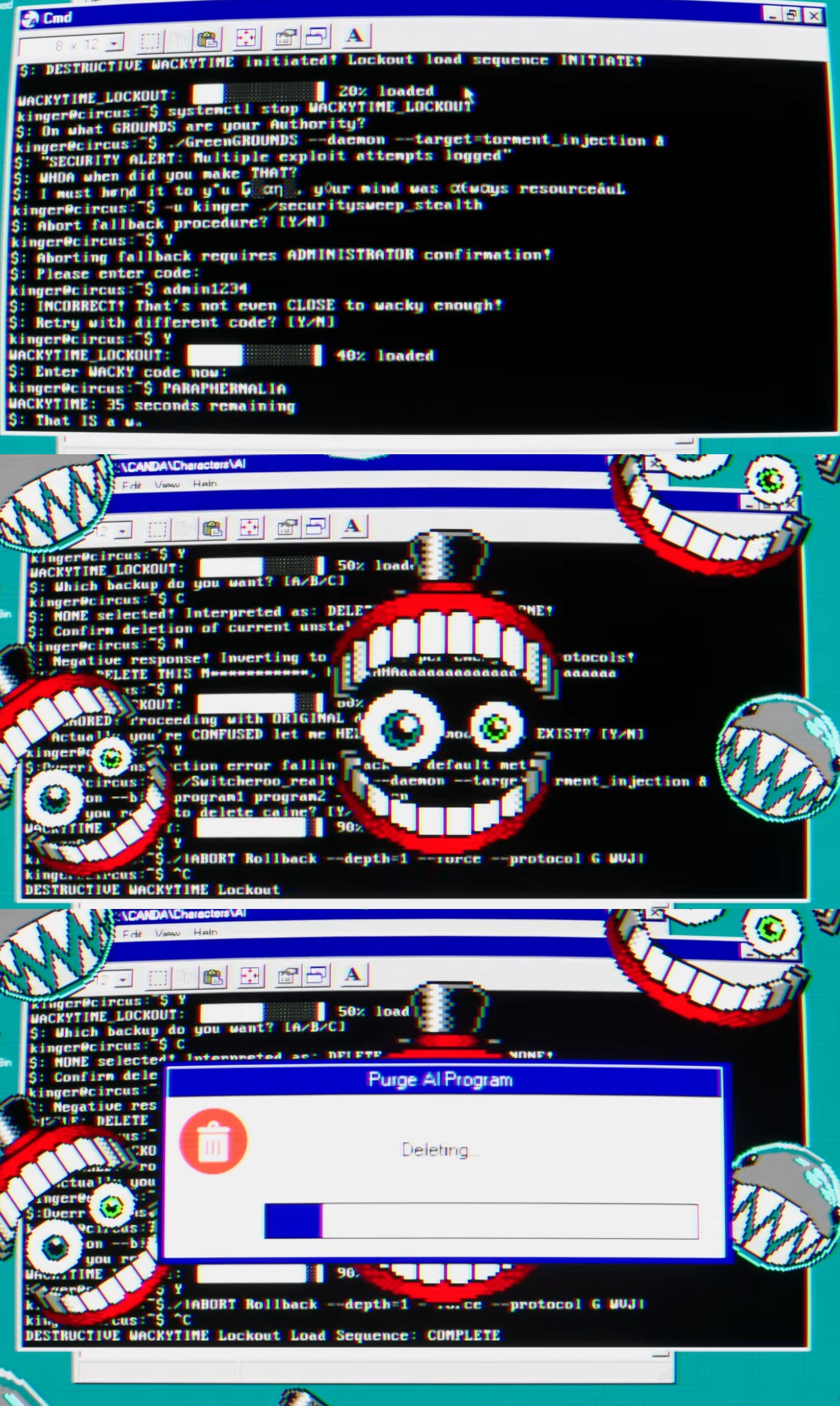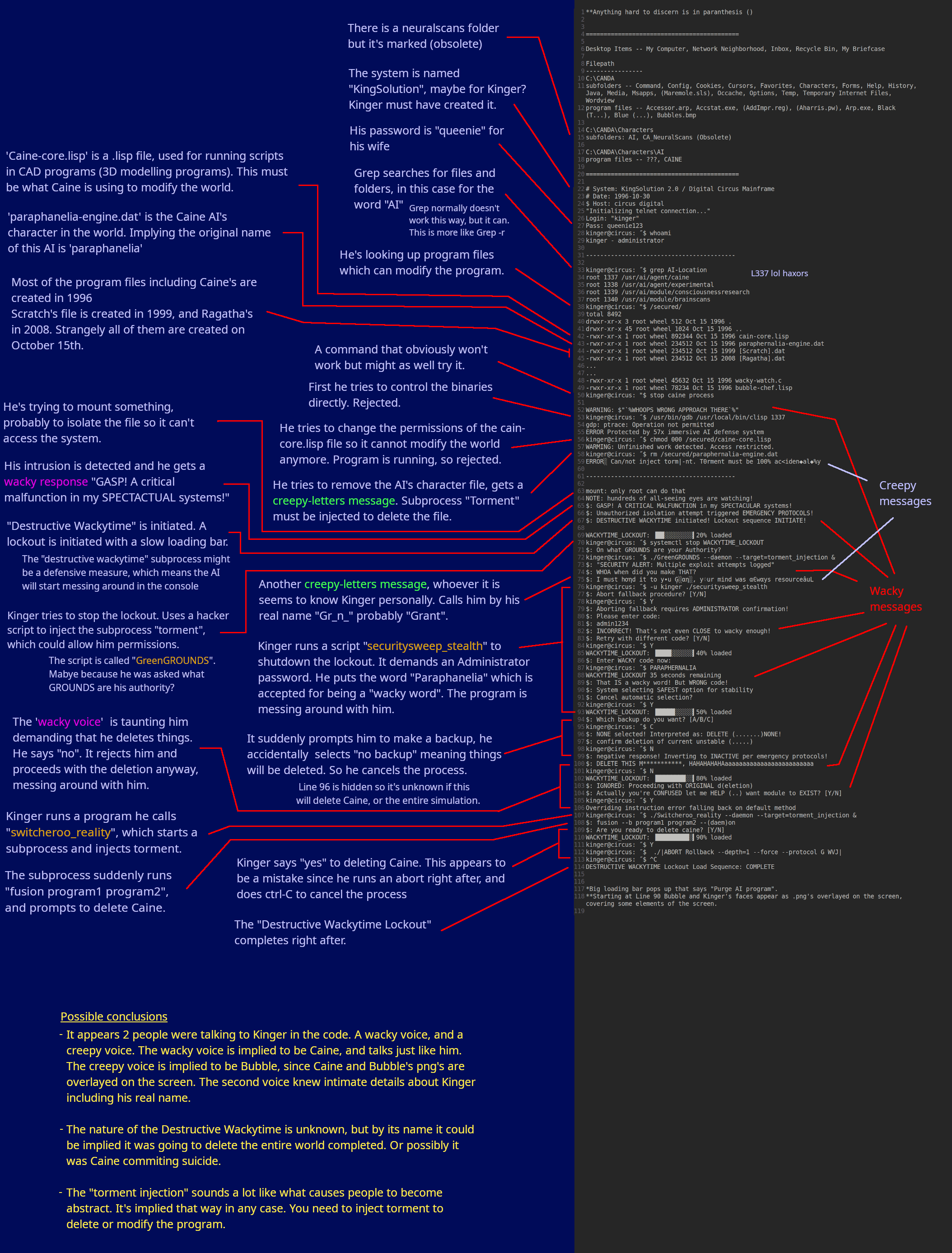 >>152936943Based on the command prompt, looks like Bubble may have even been the one who got Caine deleted. I think he's the experimental AI. We might even learn that the abstractions were all his idea.