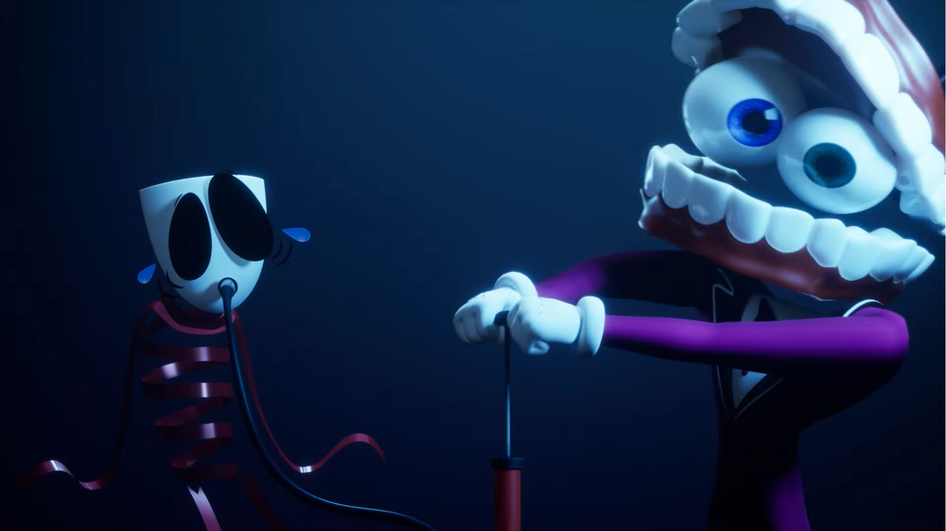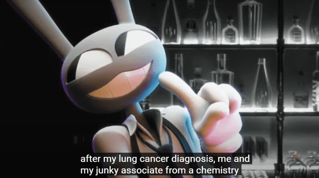 >>152955042Jax would be even worse to the humans then Cain is. I don't know why he's so popular. He's introduced breaking the face of one of his friends as he steps over Gangle's happy mask as an introduction and creatively joyfully tortures npc and human alike. Then he explained why he does it with Pomni during the gun episode (6) as he is then angry by Ragatha blaming him for their abstraction which they try to add drama as if giving him a too late character arc as his behavior is changing in this most recent episode, but seriously people should be just as mad at him as Caine.Also great Omori style of Jax guilt shadow.