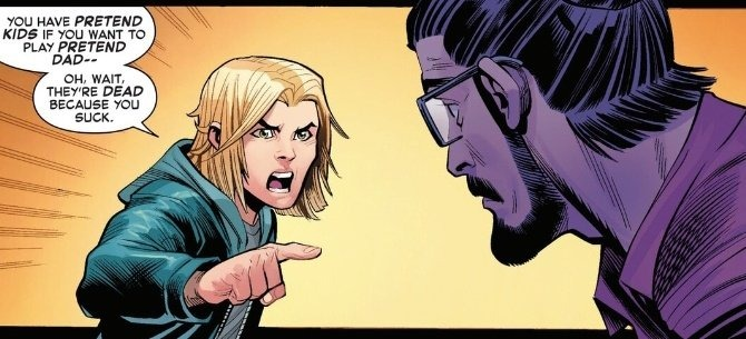 >>152950608I'll reserve judgement until the full book comes out (hopefully in a few hours), but I feel two ways about this. Kelly's probably trying to focus on how broken Peter's been about MJ leaving him and trying to manage it, just to set up her going all out to save him in a later fight......But I also hate that he's still functionally in cuck mode and trying to accept she's just hooking up with anyone else at this point that's not him.