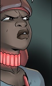 Why is she wearing a white glove in panel 6 but the same hand is clearly brown in panel 7?