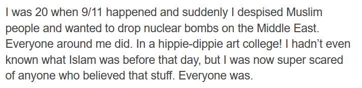 We’re not the only country with this reaction in our history— it’s a human experience, not an American one. It’s just that for most Americans born before 1995, this was the most recent event for them— Ashley Cope included among that number.