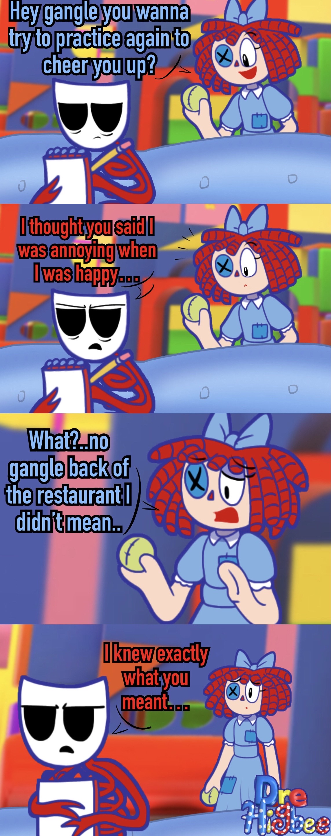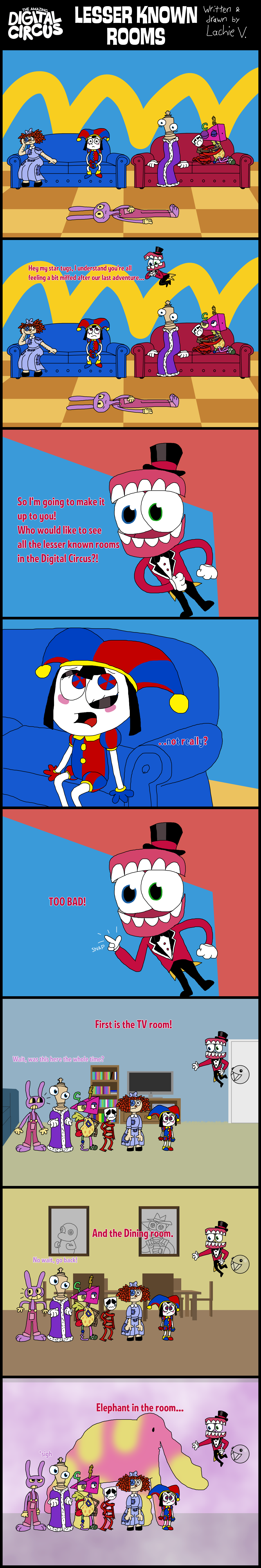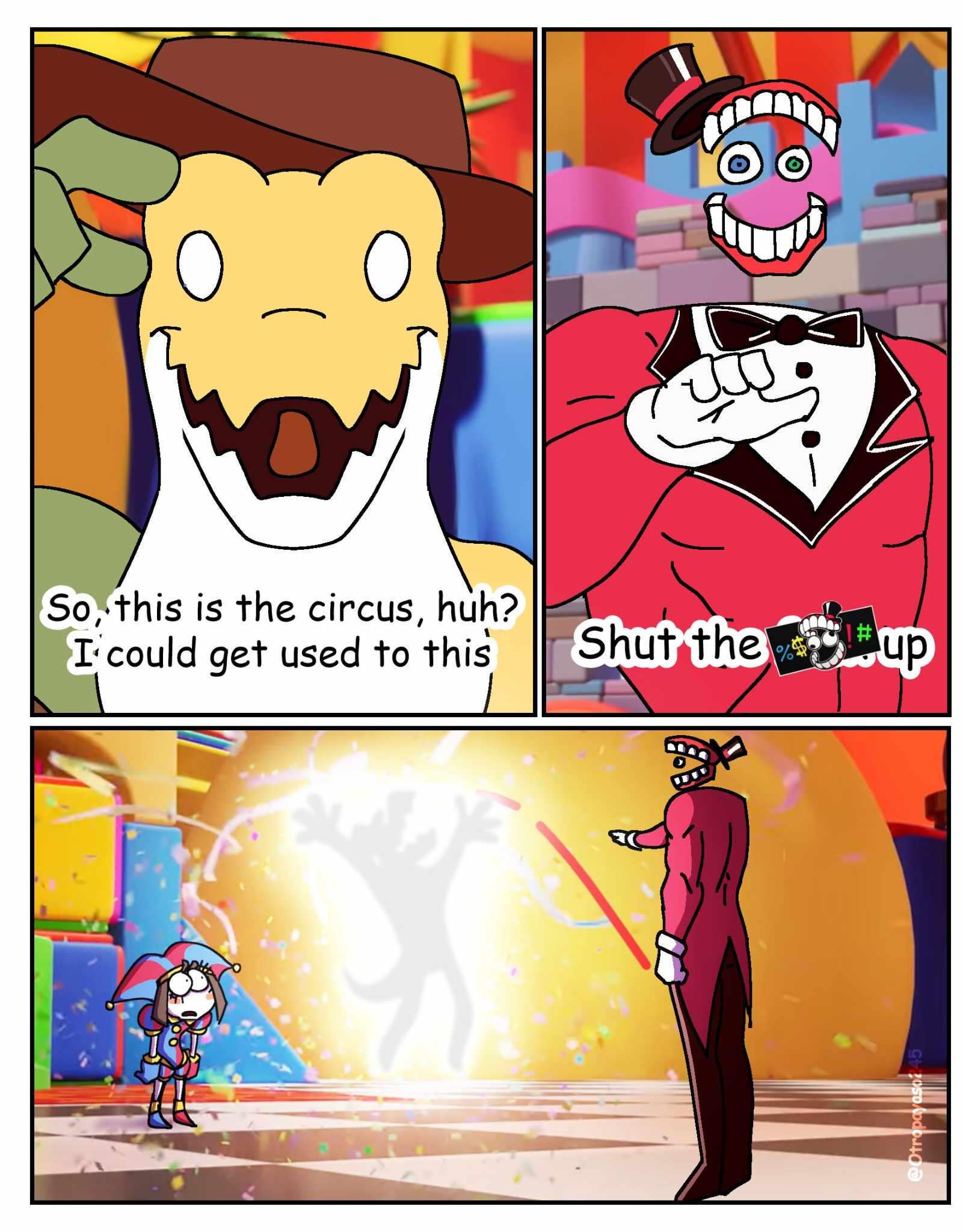 Between Caine just giving him visions of being flayed by Ribbit and Pomni (oh and Kaufmo was there too), and actual Pomni not telling him about Kinger being sane (leading to an unexpected and public shattering of his worldview) I wonder if Jax will be a bit skittish towards Pomni in episode 9He was skittish towards Caine at the beginning of 8 before he'd even done anything, just operating on the knowledge that Caine lied about his level of control over them. For someone like Jax who goes out of his way to acquire as much information about others as possible (while giving away as little as he can), Pomni letting him find out about Kinger like that might sting a little in hindsight, at least after such a brutal confrontation with his social fears.