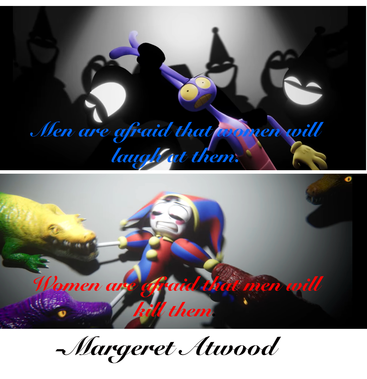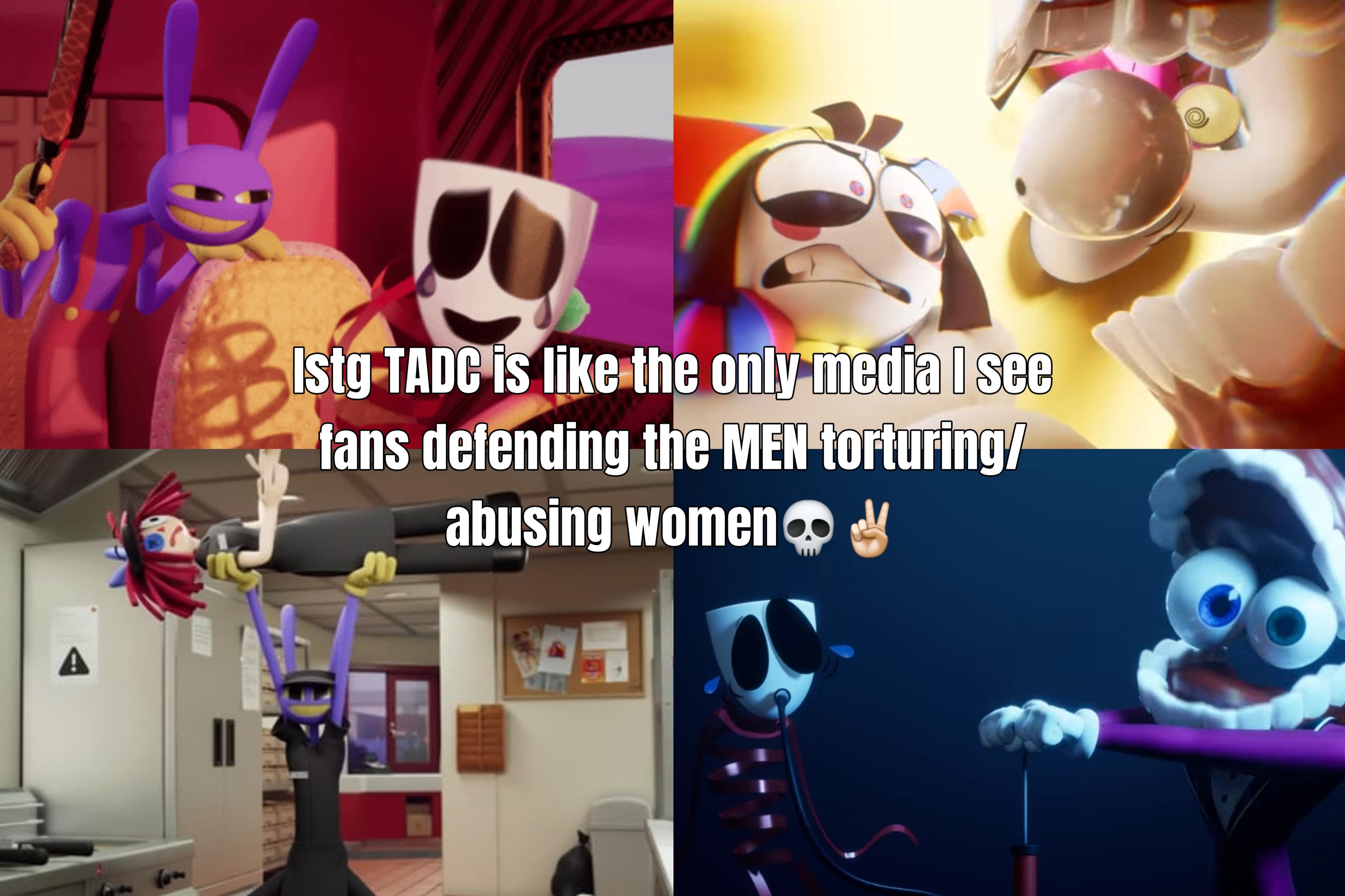The fandom's reaction to Jax being mtf would be interesting because I've pretty positive it would cause a schism in the funnybunny community lol. Everyone's an ally until they have to think about their tumblr sexyman they self-insert ship with tucking.