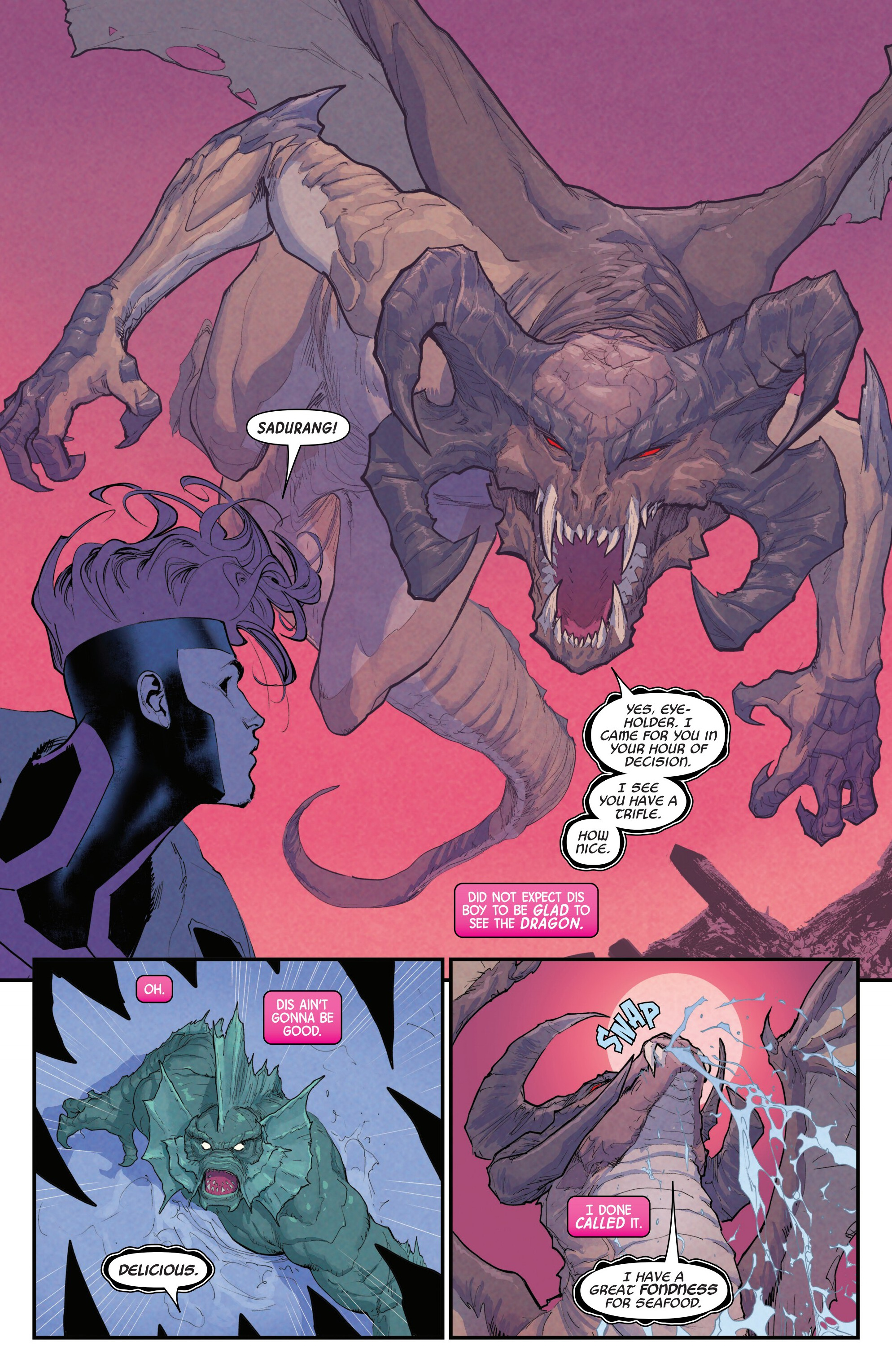 >>152954756God I want to slit Jason Aaron's throat for that Mephisto shit baggaging over the Serpent Society.