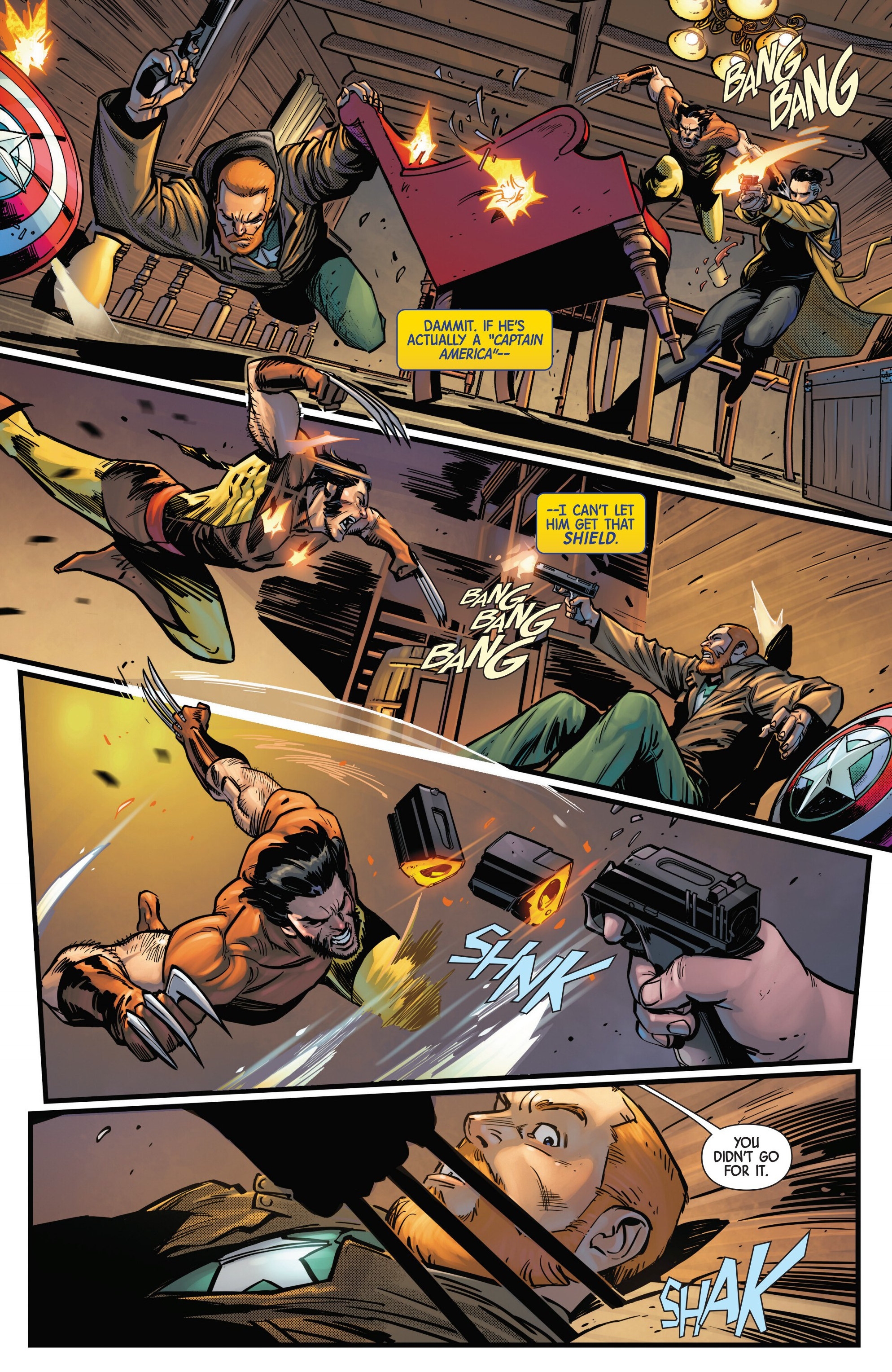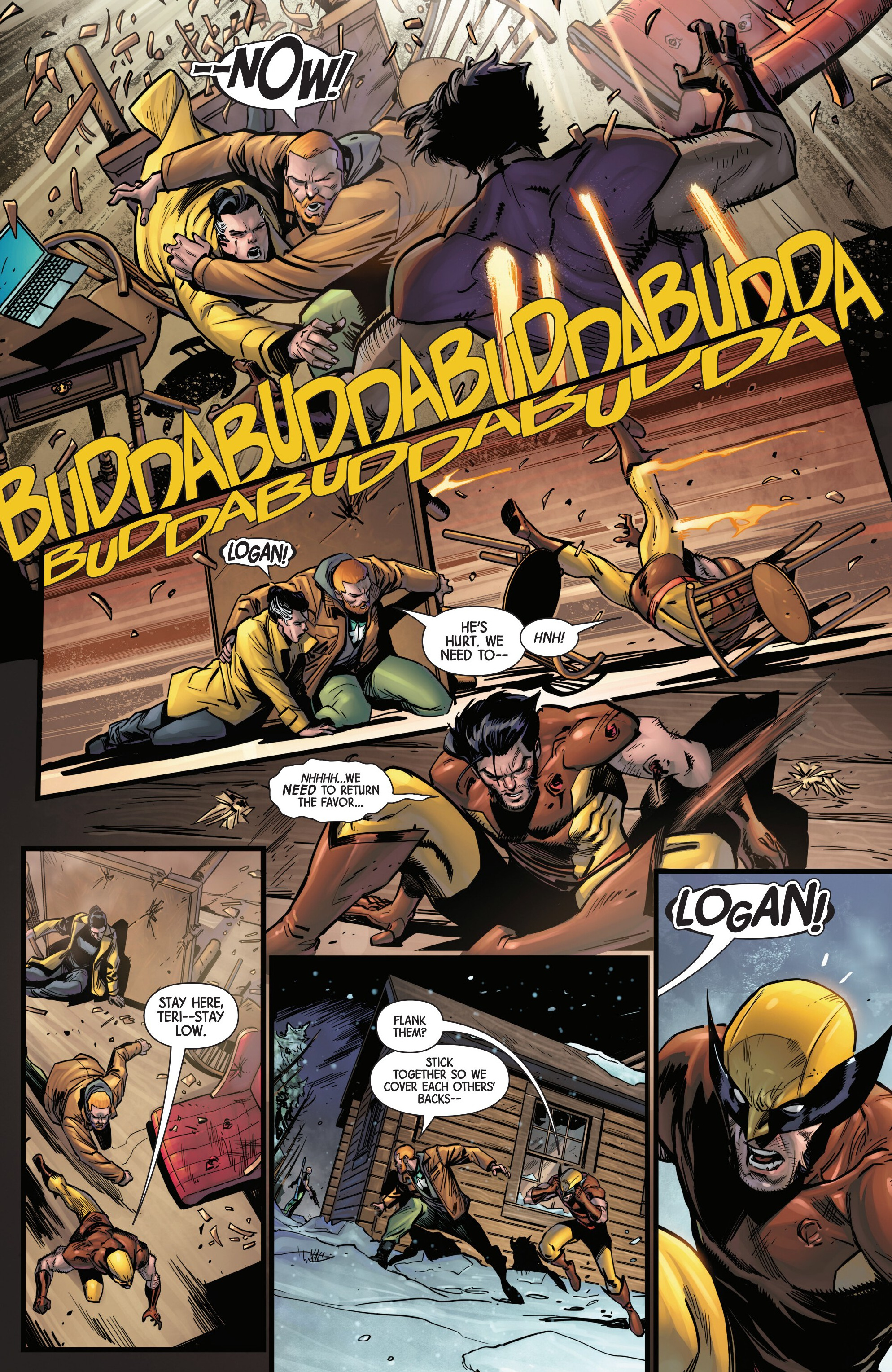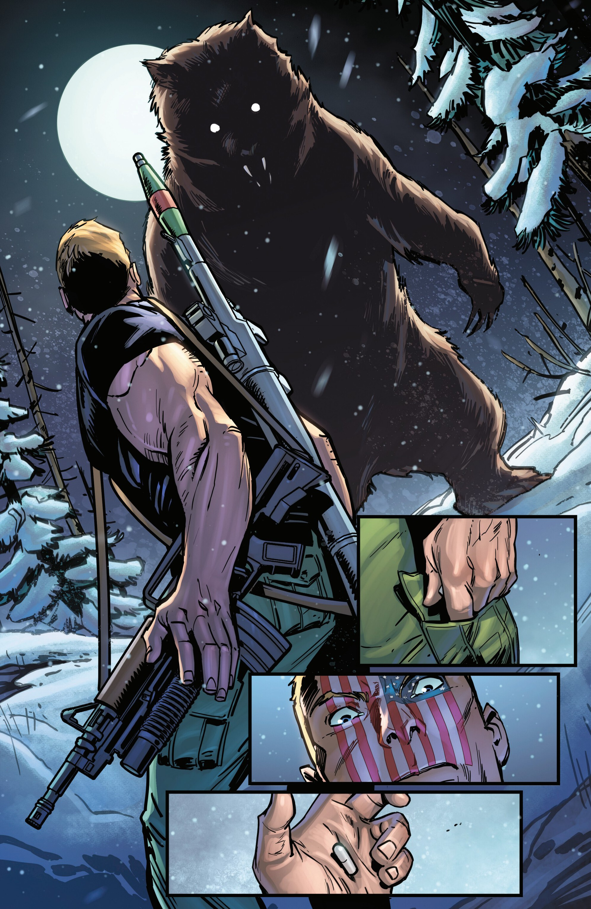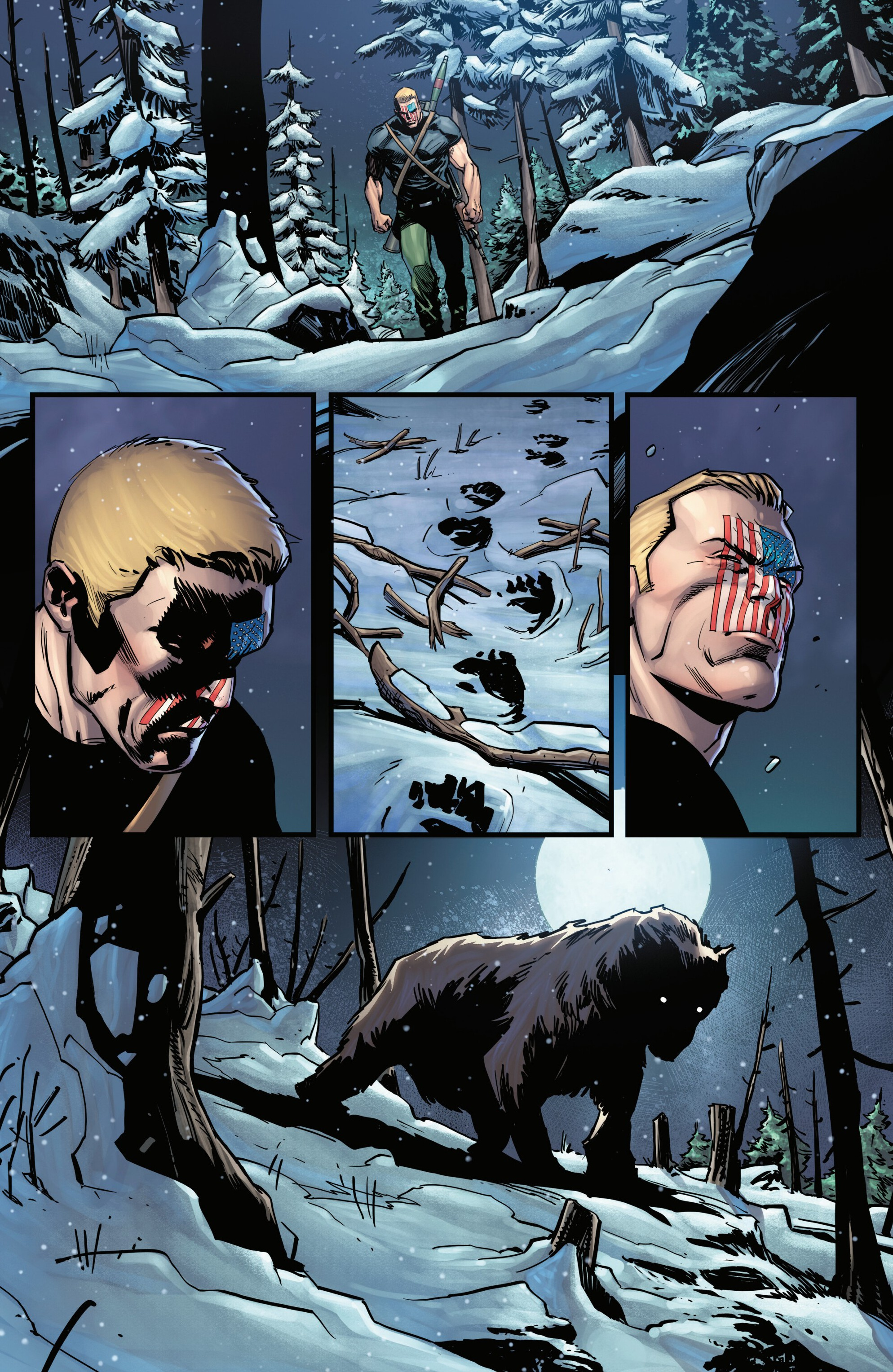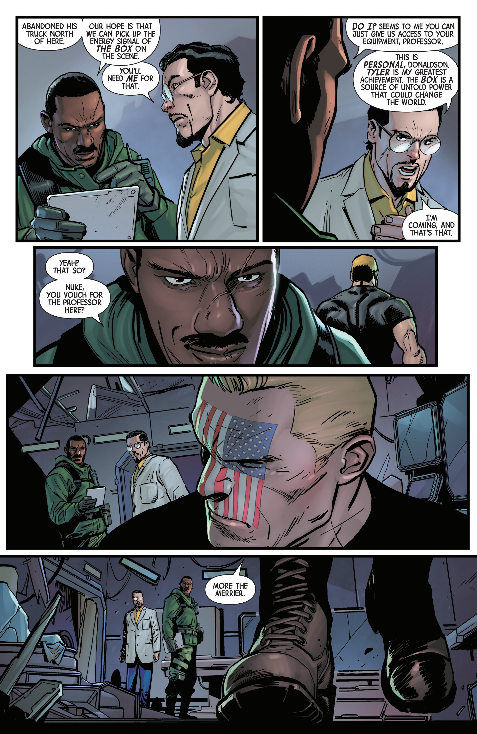 Previously on our journey towards Armageddon, Logan met up with the mutant tracker Teri O'Barnes, who was responsible for assisting the Weapon X program to kidnap him back during the original Weapon X storyline (don’t worry, she apologized for it). Teri told Logan about PrimeWarrior, a private military company that has been hosting their own super-soldier project and replicating the methods used by Weapon X: they’re kidnapping mutants with healing factors and putting them through the same experience that Logan once went through. While Teri has been able to stay a step ahead of PrimeWarrior and save many mutants by relocating them and fixing them new identities, PrimeWarrior was still able to kidnap a man named Tyler Torrens and place him in their facility in the Ozarks, and Teri needed Logan's help to save him.Traveling to the Ozarks, they were surprised to see that the facility had already been blown apart by a bomber who had been targeting PrimeWarrior facilities, with Tyler nowhere to be found and an origin box also reported to be missing. Continuing their search, Logan ends up tracking Tyler's scent to a cabin surrounded with deadly booby traps. The cabin’s owner? The bomber of PrimeWarrior's facilities and former Captain America: Dave Colton!Meanwhile, PrimeWarrior's CEO Pruet got the info that Logan had been inside the Ozarks facility, and called in Nuke to go after him…